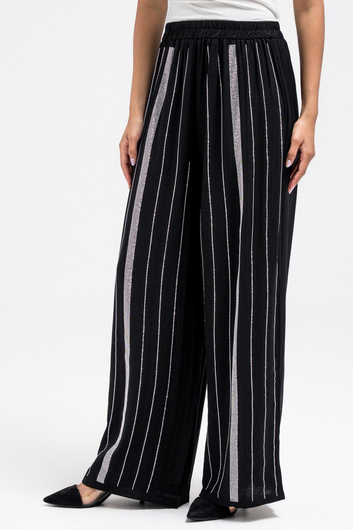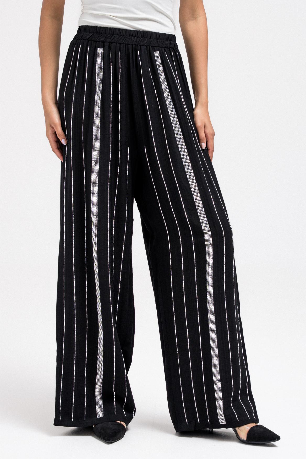 بنطال خفيف الوزن مخطط بأحجار الراين