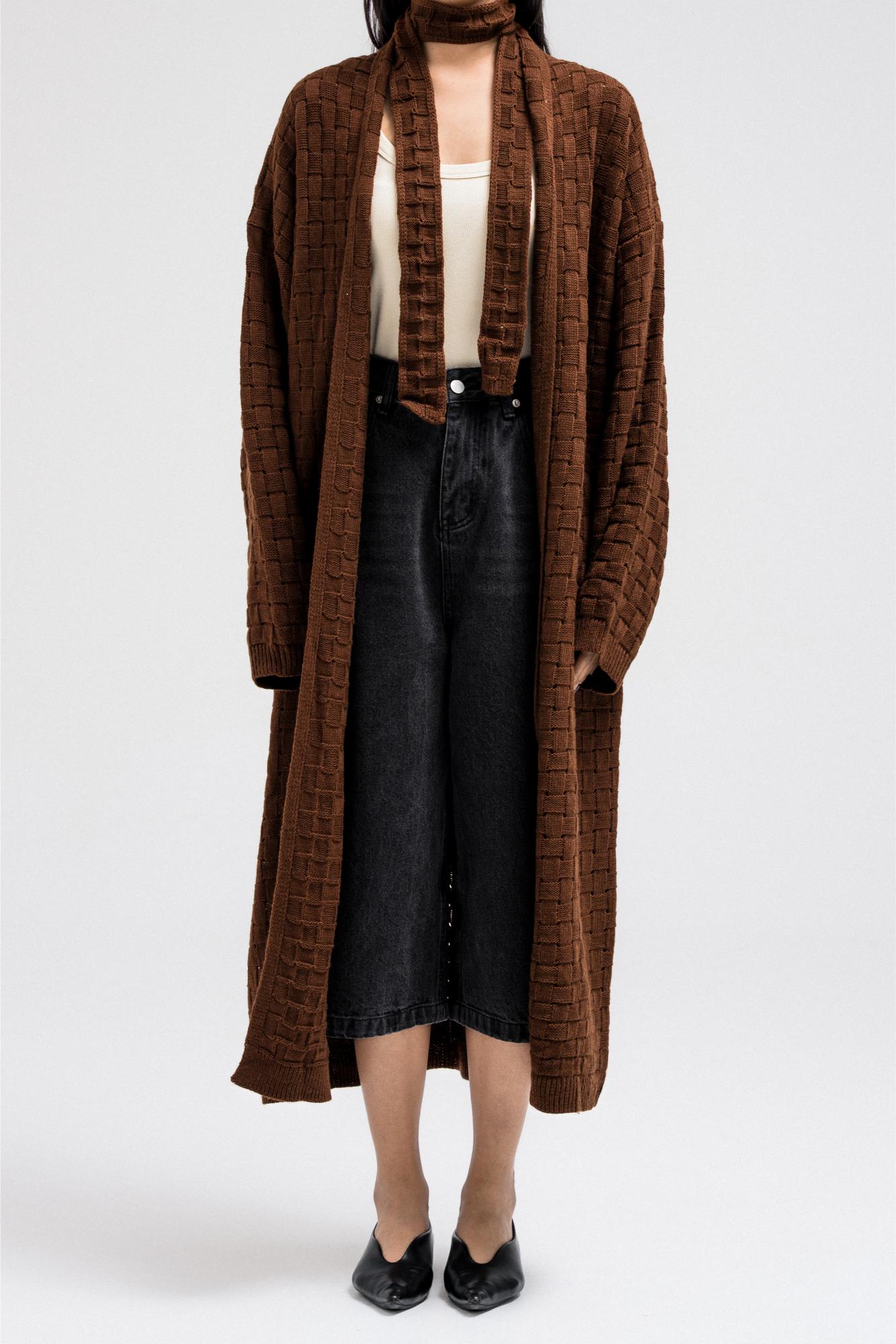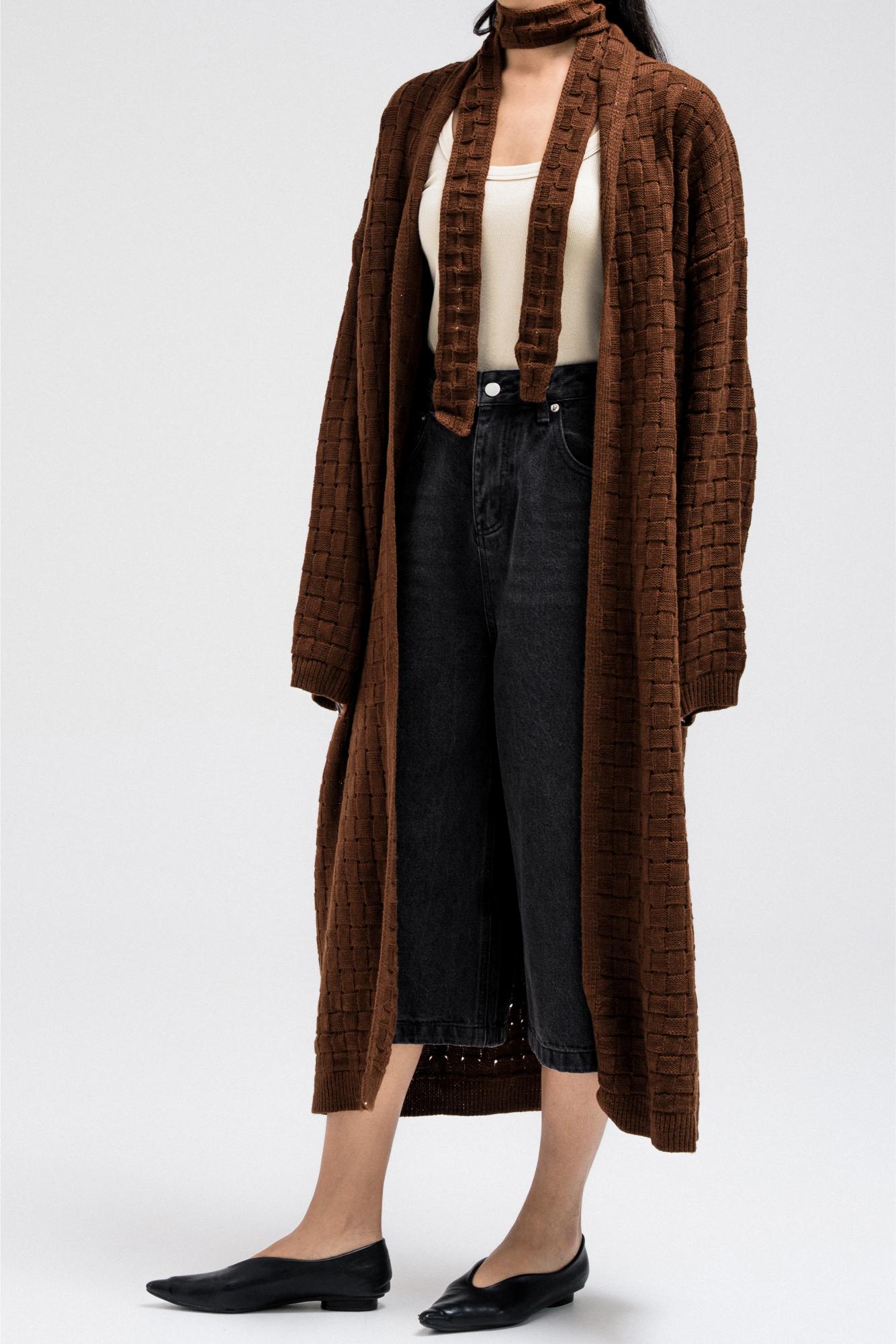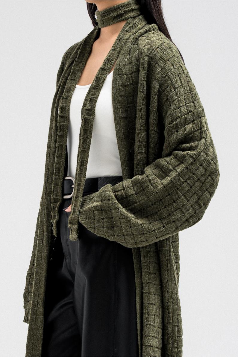 LONG TEXTURED CARDIGAN WITH MATCHING BELT