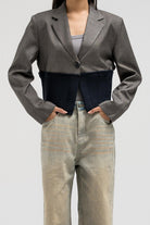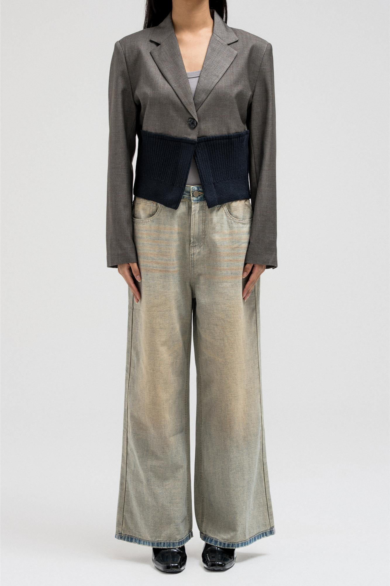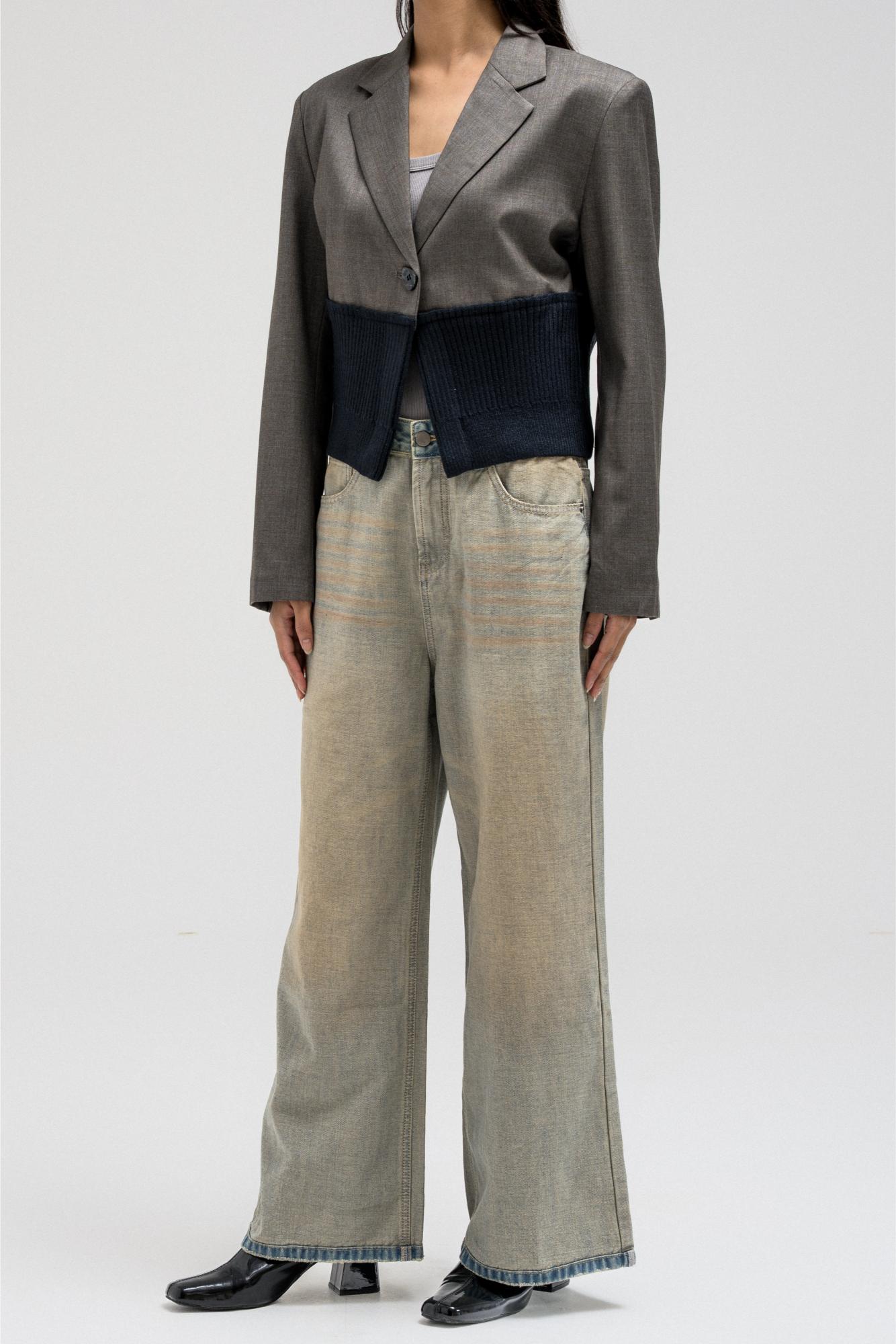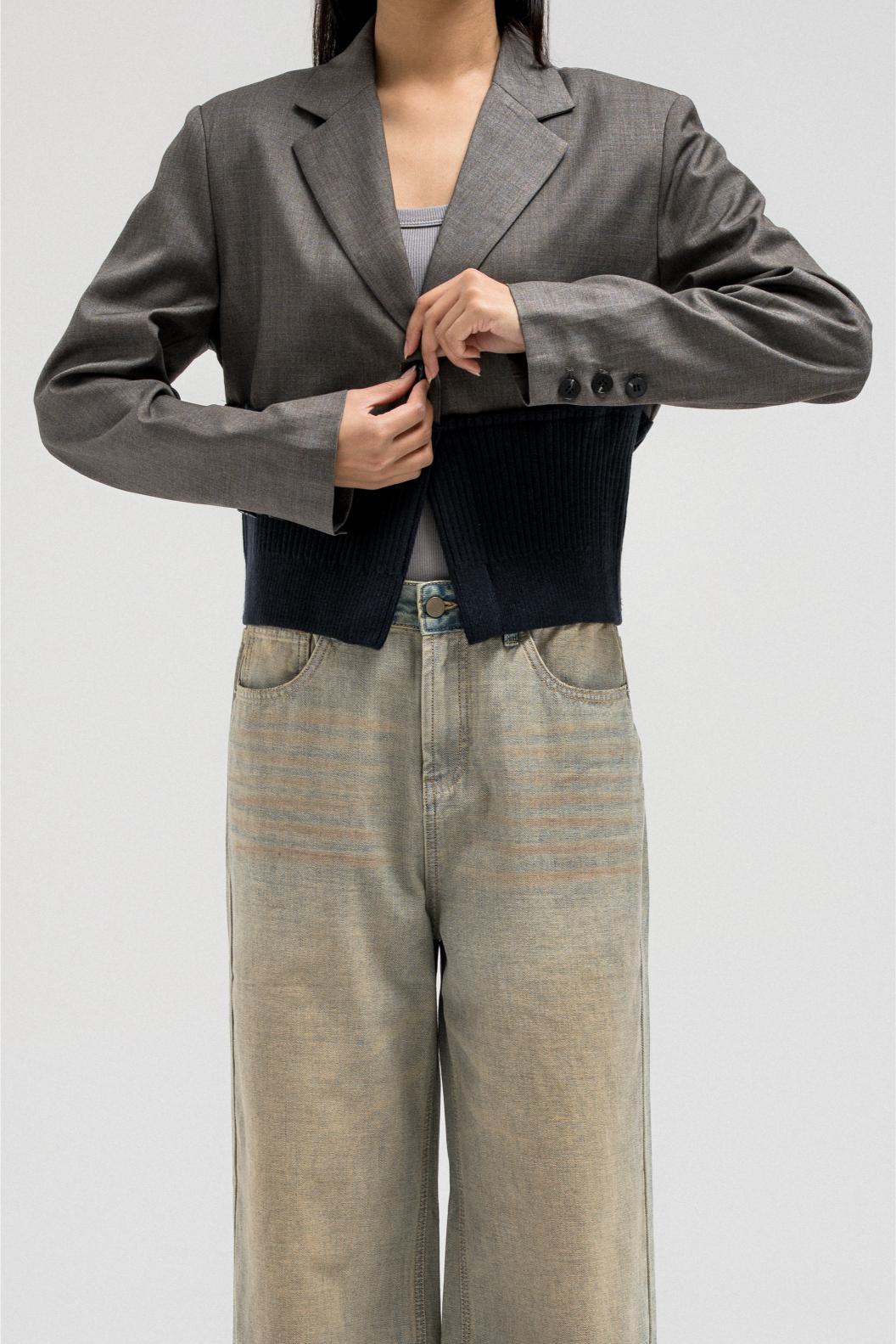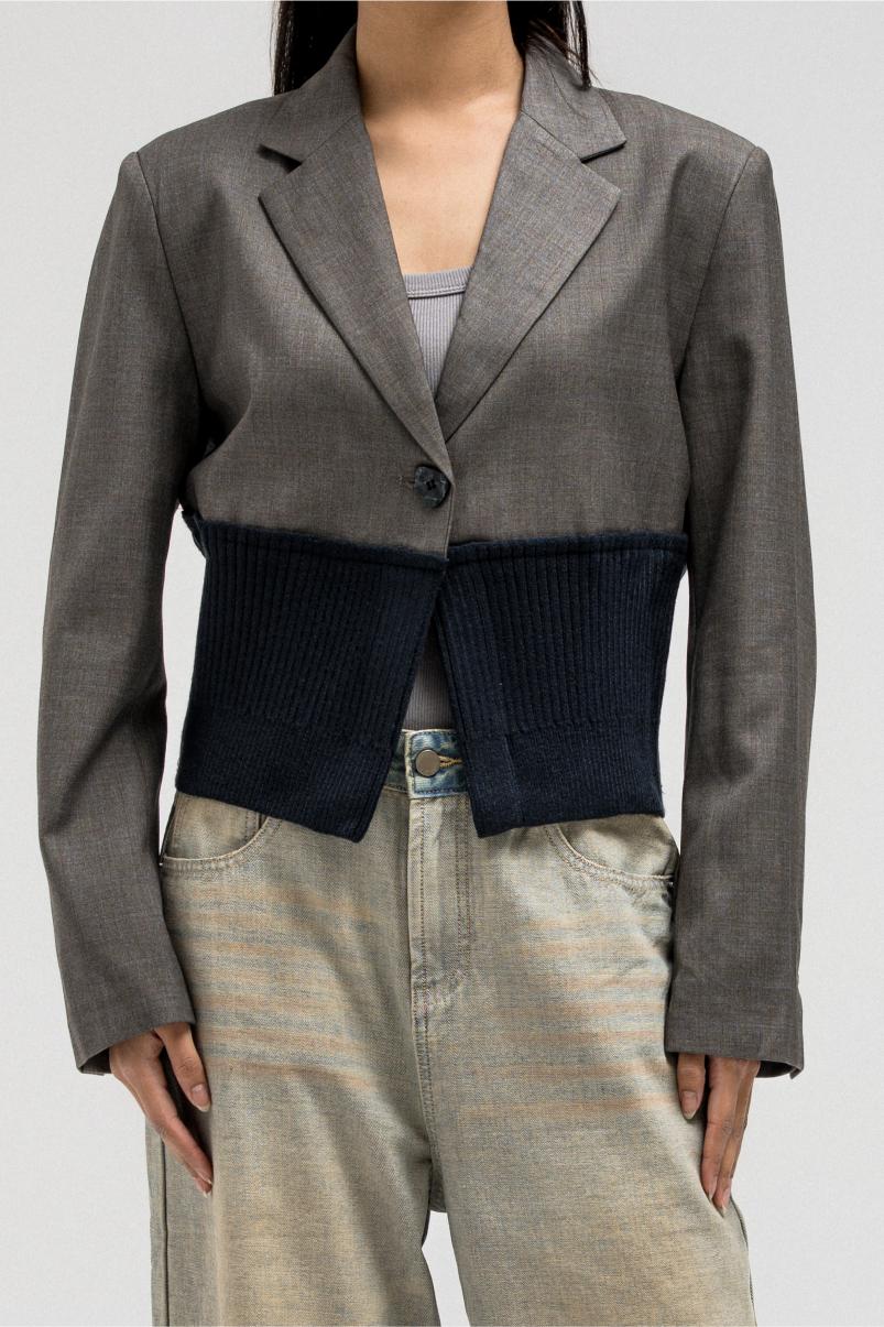 لمسة عصرية على البليزر الكلاسيكي، يتميز هذا التصميم بجزء علوي مُصمم على طراز البليزر، مع ياقة حادة، وجزء سفلي محبوك مرن لراحة فائقة. مزود بزر إغلاق واحد، مما يمنحه مظهرًا أنيقًا ومريحًا، يجمع بين الأناقة والبساطة.