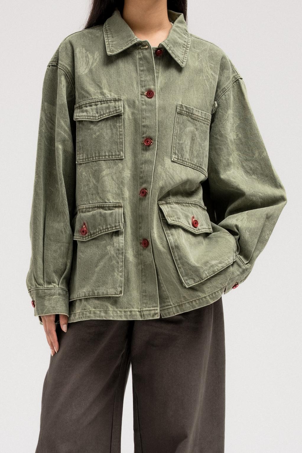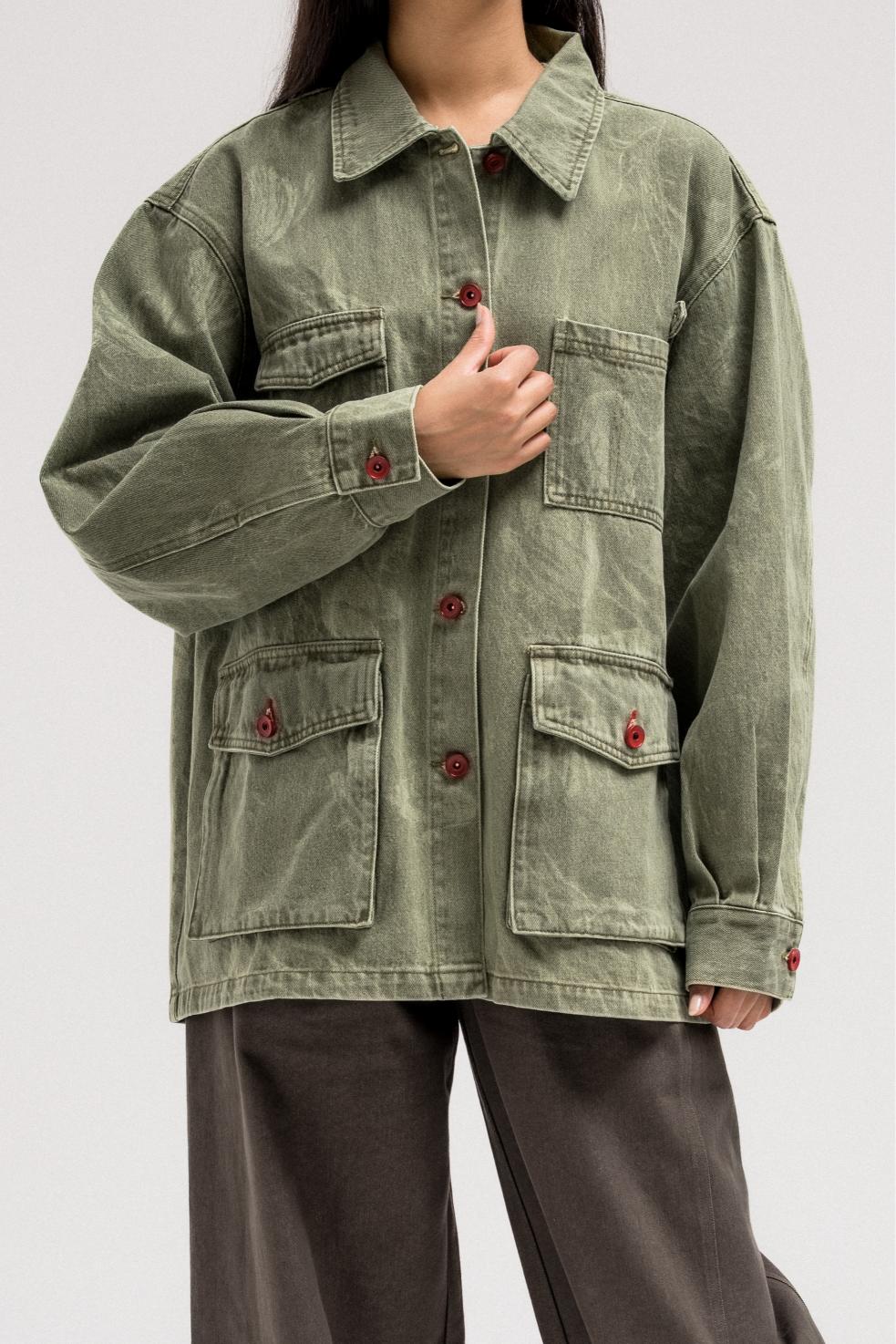 جاكيت جينز بأزرار حمراء