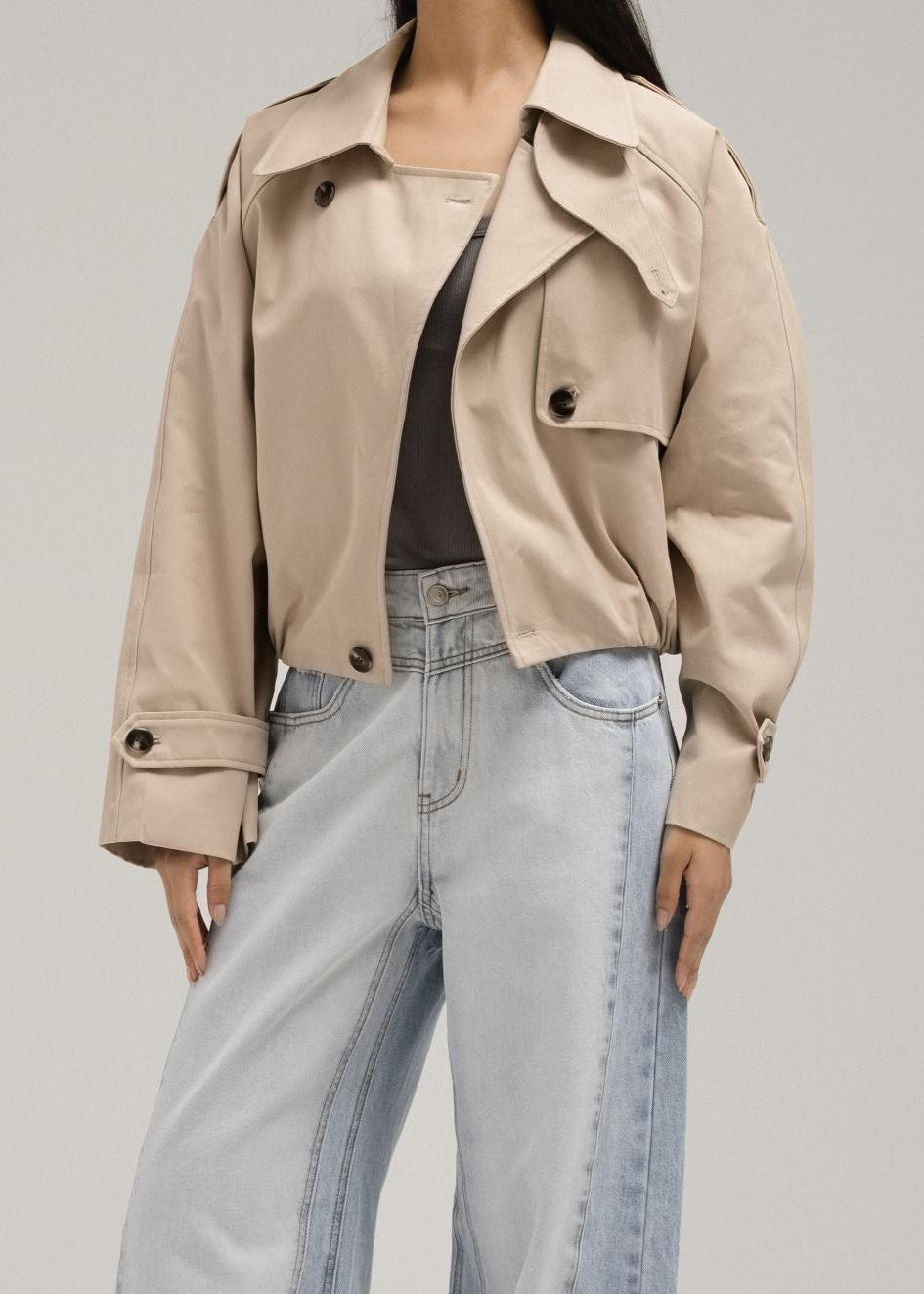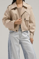 يُعيد هذا الجاكيت القصير تعريف الملابس الخارجية اليومية بقصته العصرية والواسعة. يتميز بياقة حادة، وأزرار للإغلاق، وحاشية مطاطية مميزة تُضفي عليه شكلاً عصرياً محكماً. خفيف الوزن ولكنه مُصمم بشكل أنيق، وهو قطعة مثالية للارتداء على طبقات متعددة وتنسيق أنيق دون عناء.