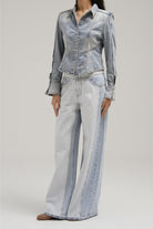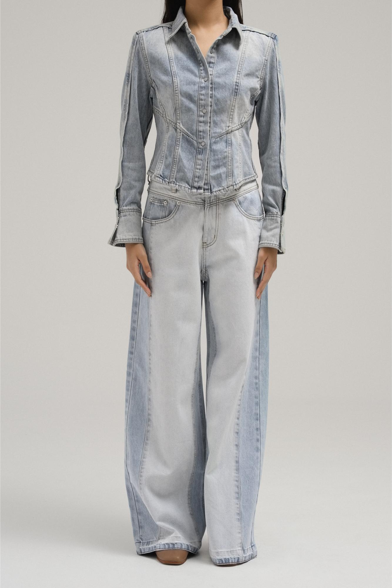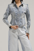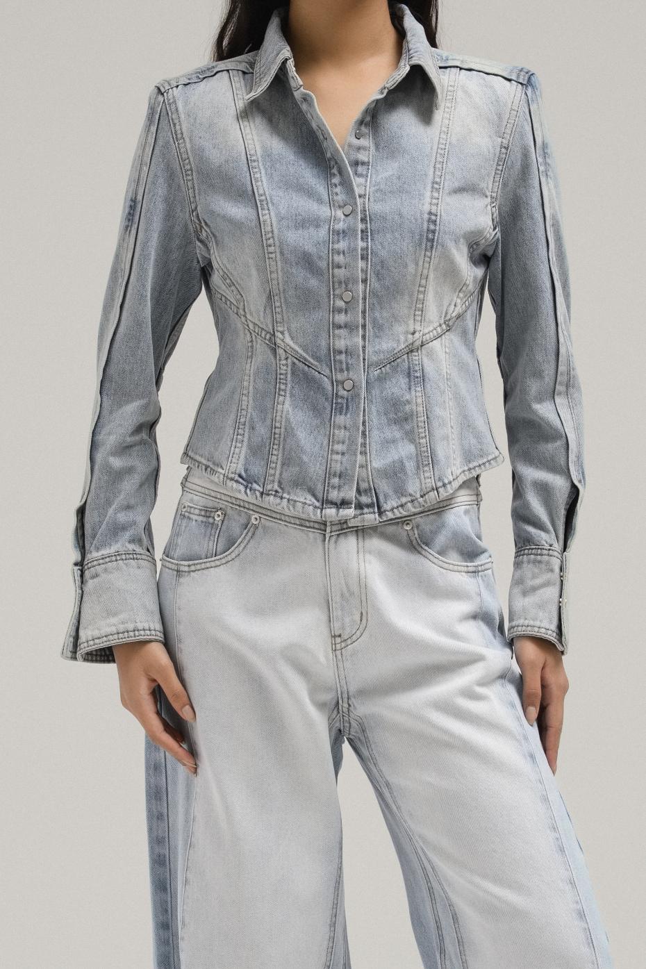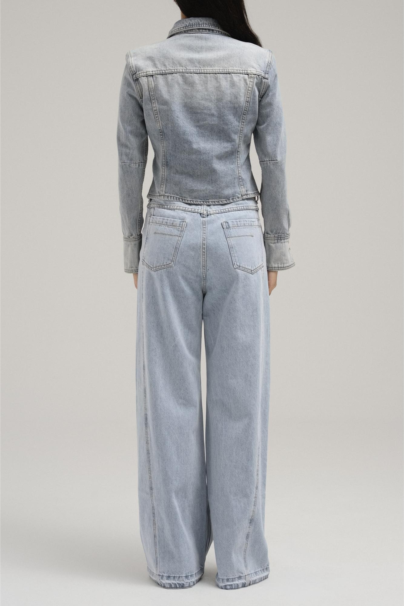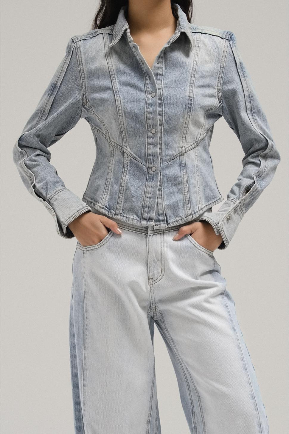 جاكيت الدنيم هذا يمنحكِ إطلالة أنيقة وعصرية بقصّة أنيقة وضيّقة. صُمّم بياقة كلاسيكية وأزرار أمامية للإغلاق، ويتميز بتفاصيل درزات دقيقة تُبرز شكله. قطعة متعددة الاستخدامات، يُمكن ارتداؤها بأزرار أو مفتوحة فوق الملابس اليومية.