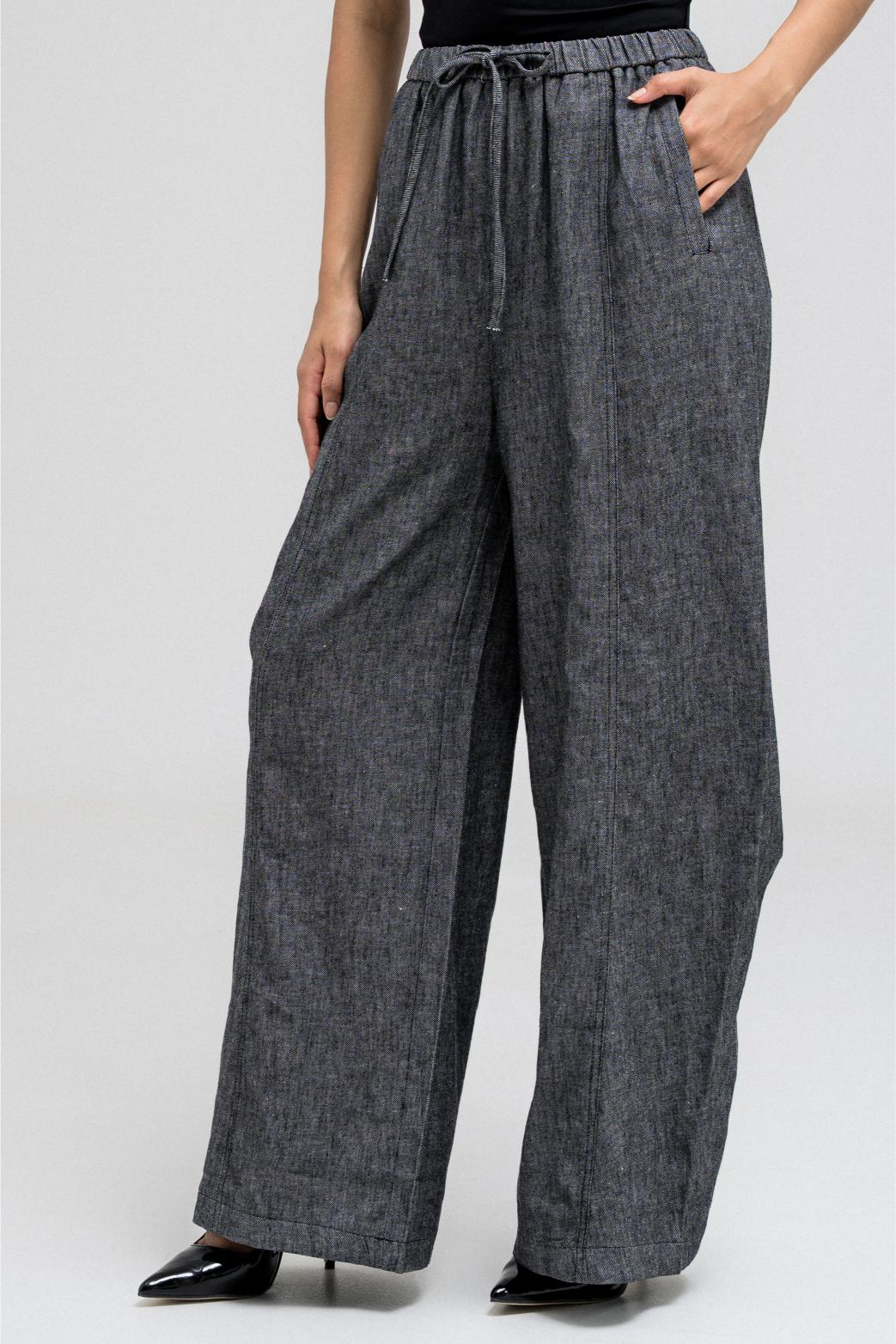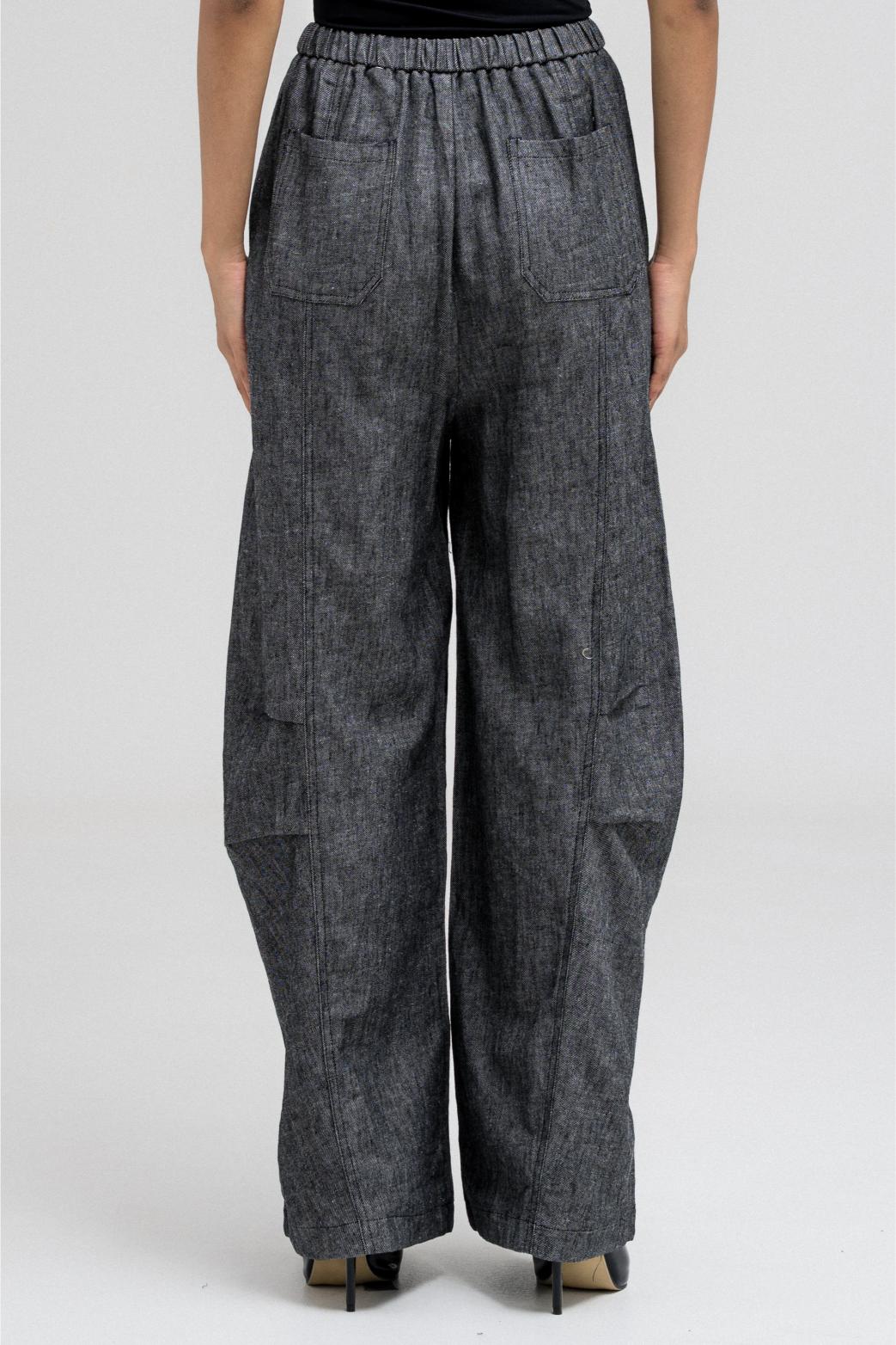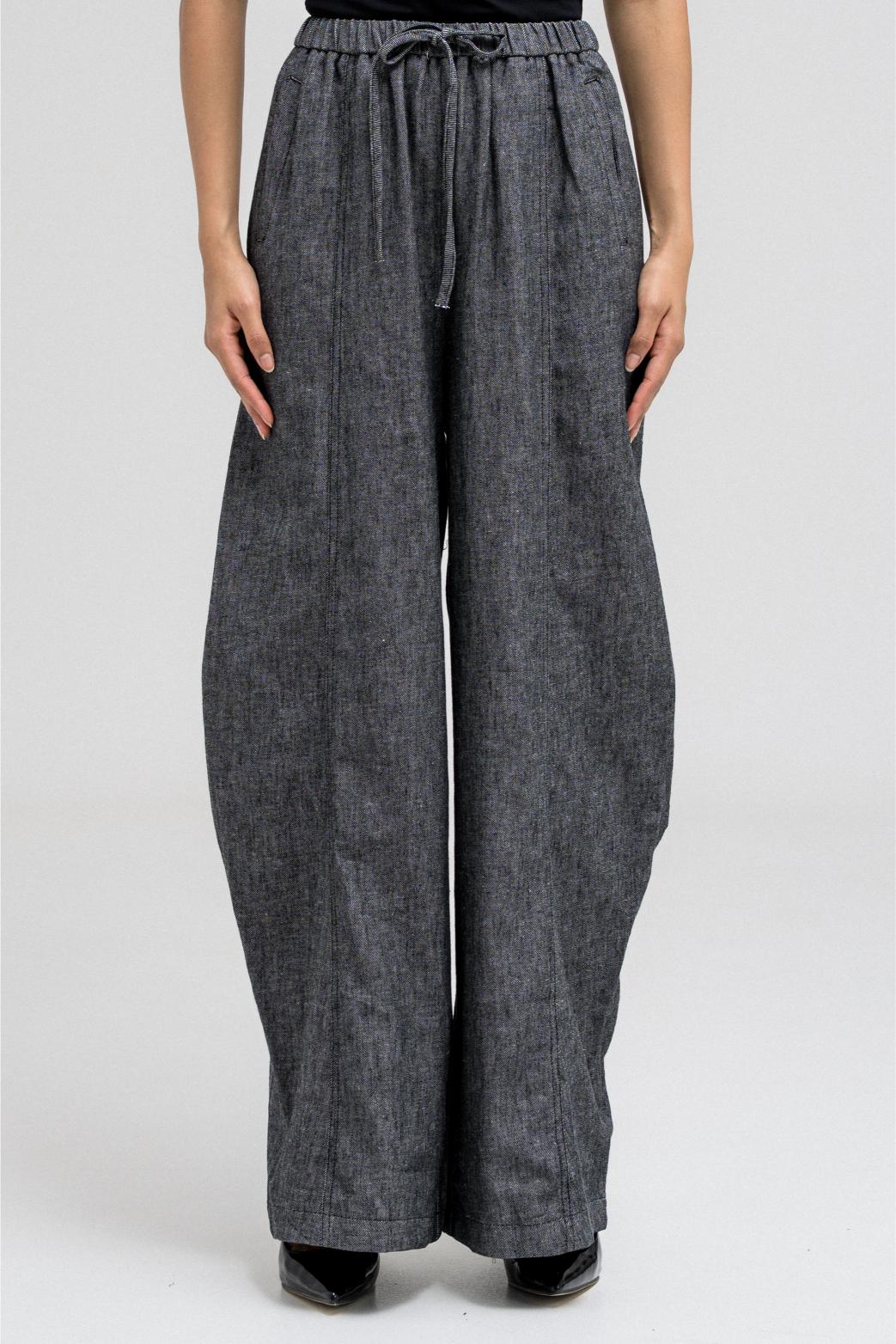 بنطال واسع الساق يتميز بقصّة مريحة وفضفاضة. يأتي بحزام خصر مطاطي وأربطة أمامية قابلة للتعديل لملاءمة مرنة. يحتوي على جيبين جانبيين، ويتناسب تمامًا مع قميص القميص المطابق لإطلالة مريحة وكاملة.