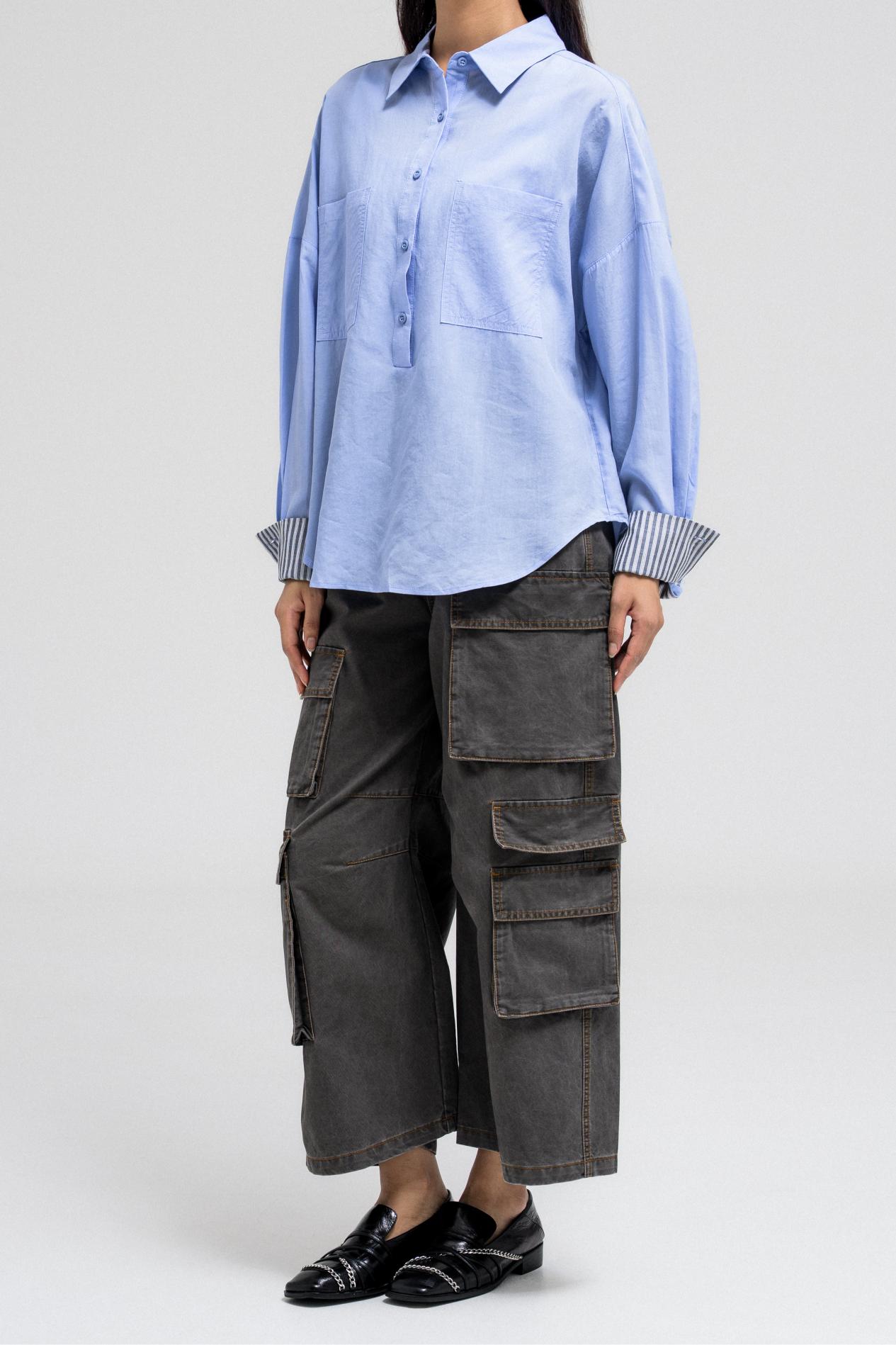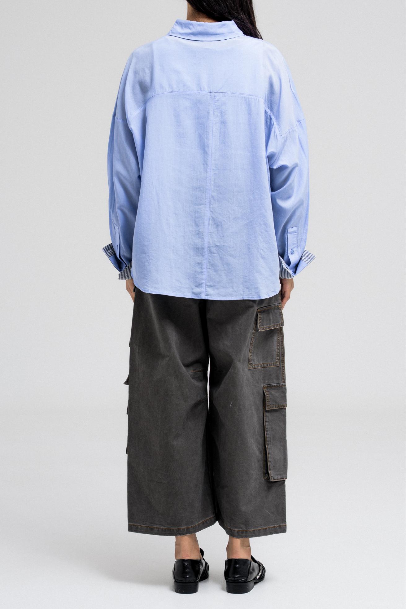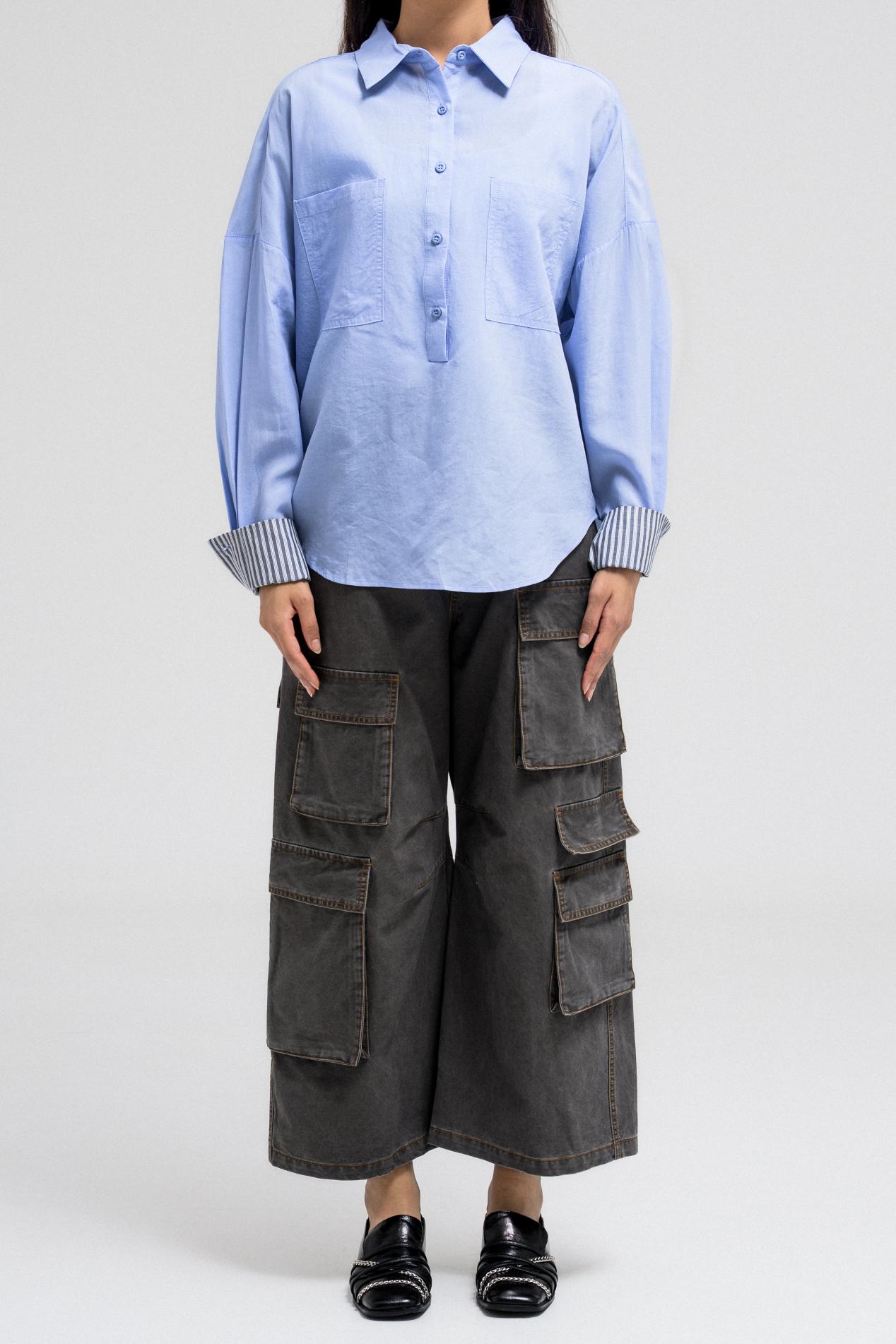 يتميز هذا القميص الخفيف بتصميم أنيق وبسيط بلمسة عصرية. يحتوي على جيبين على الصدر وأزرار أمامية جزئية تُضفي عليه مظهرًا مريحًا وبسيطًا. ياقة القميص الكلاسيكية تُحافظ على أناقته، بينما تُضفي أطراف الأكمام المخططة المتباينة لمسةً من التفاصيل المرحة وغير المتوقعة. أطراف الأكمام مُزينة بأزرار لإضفاء لمسة راقية.