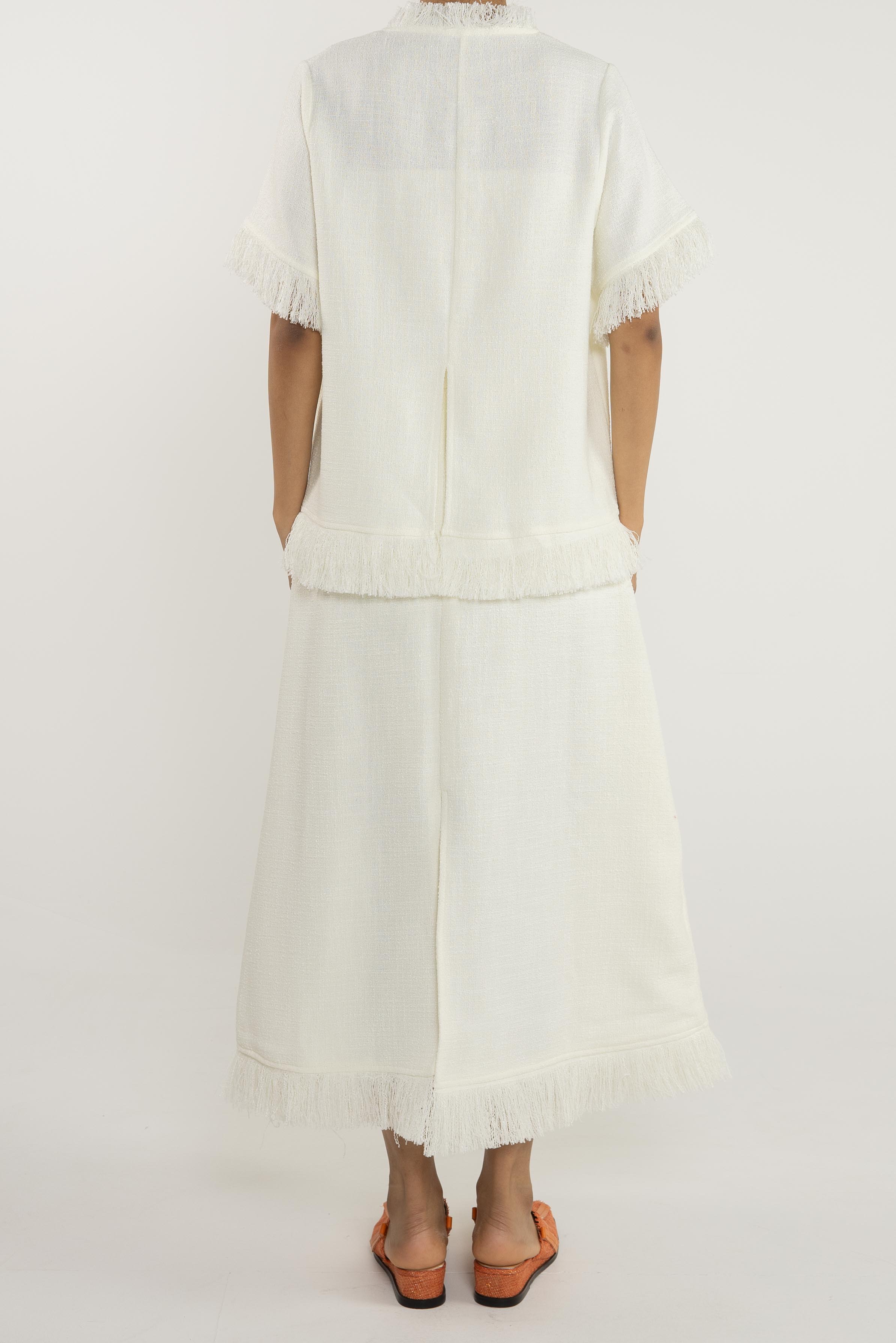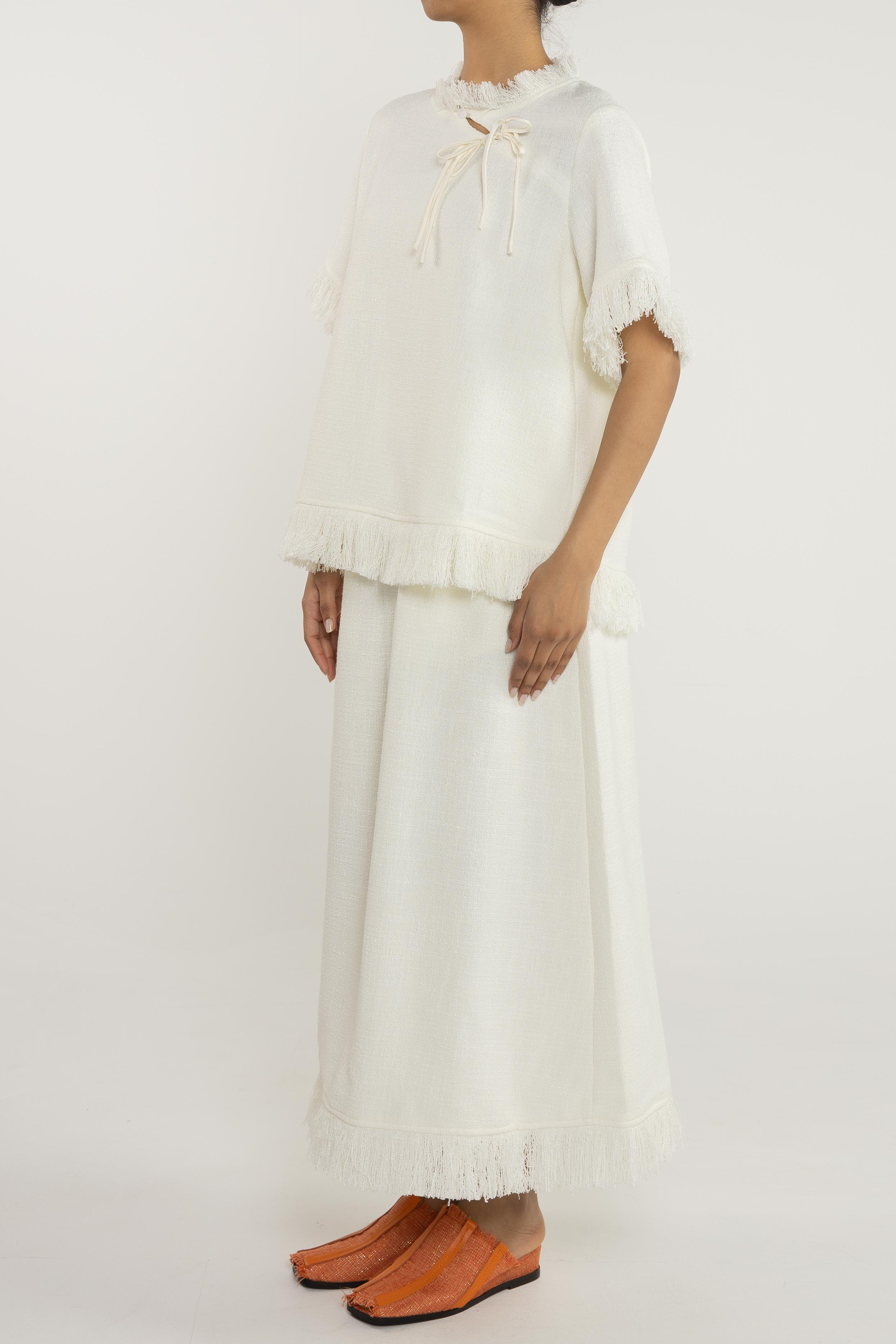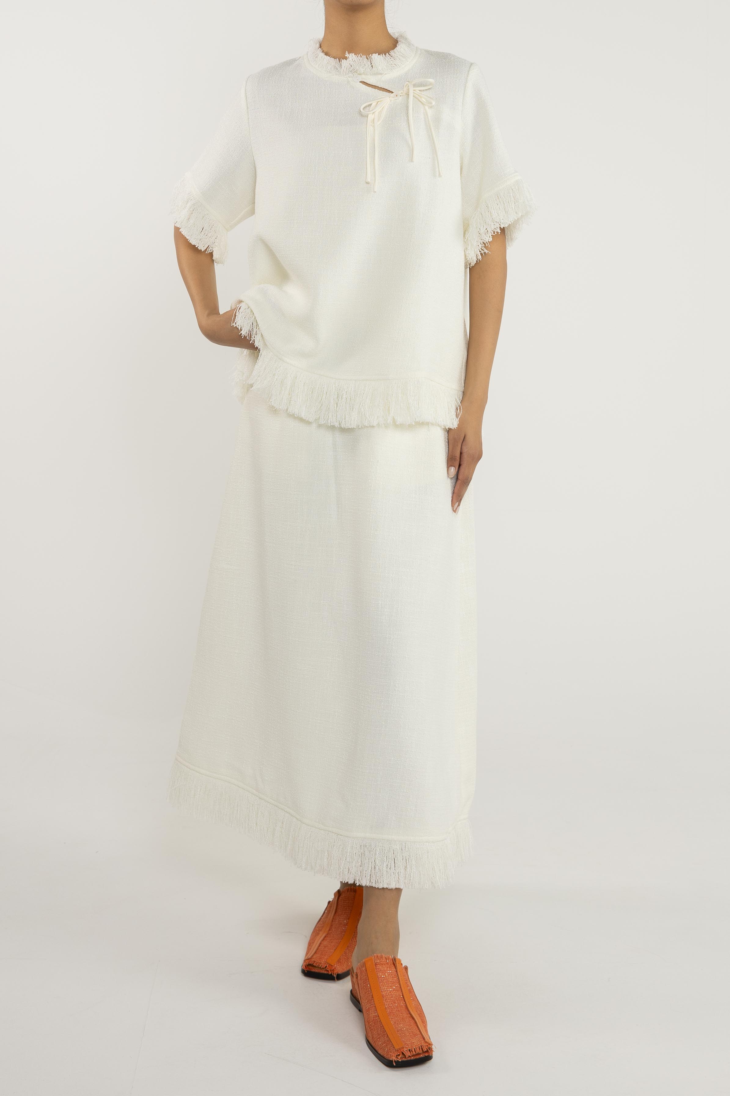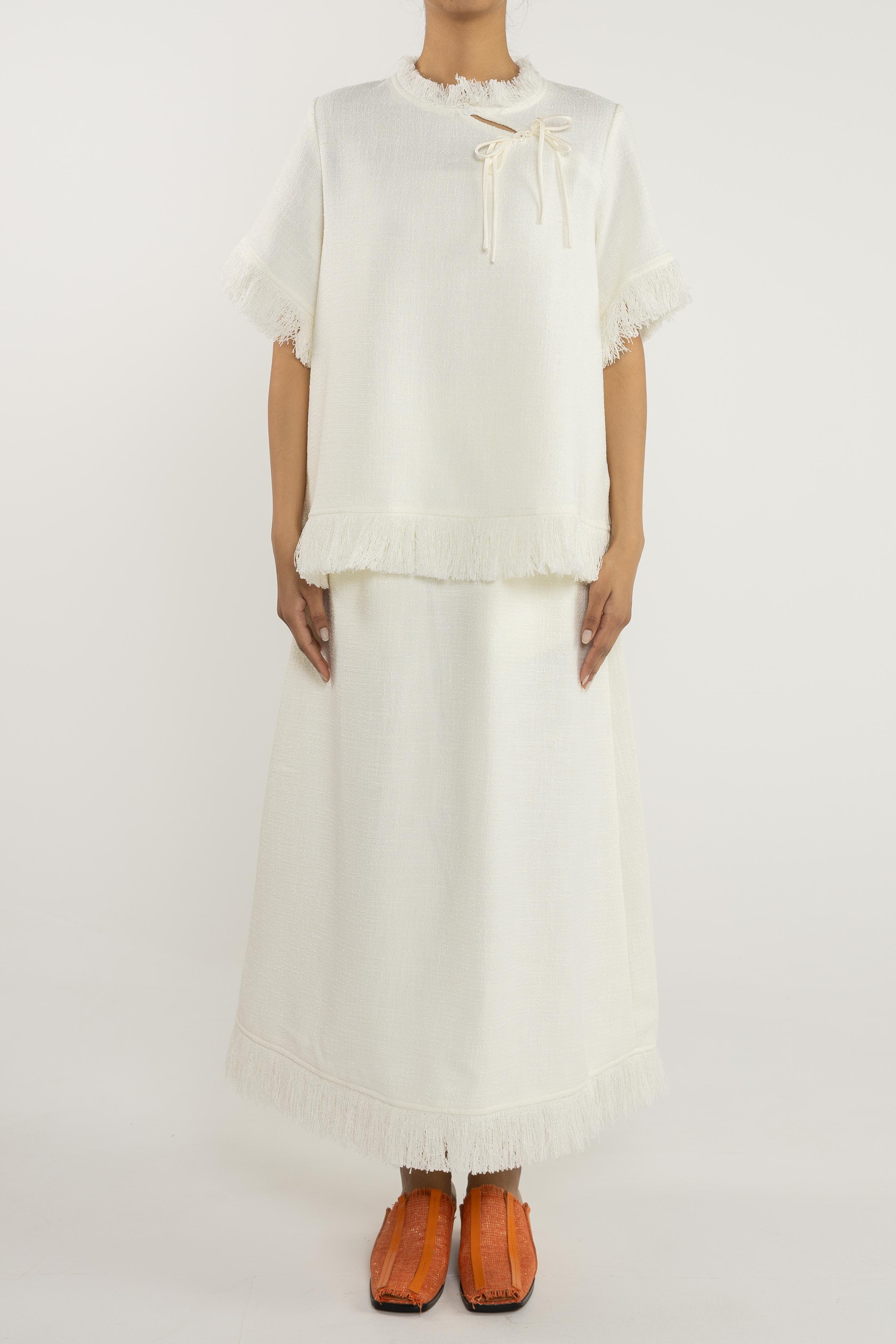 رقبة عالية مع زر مُرفق. تصميم على شكل فيونكة.