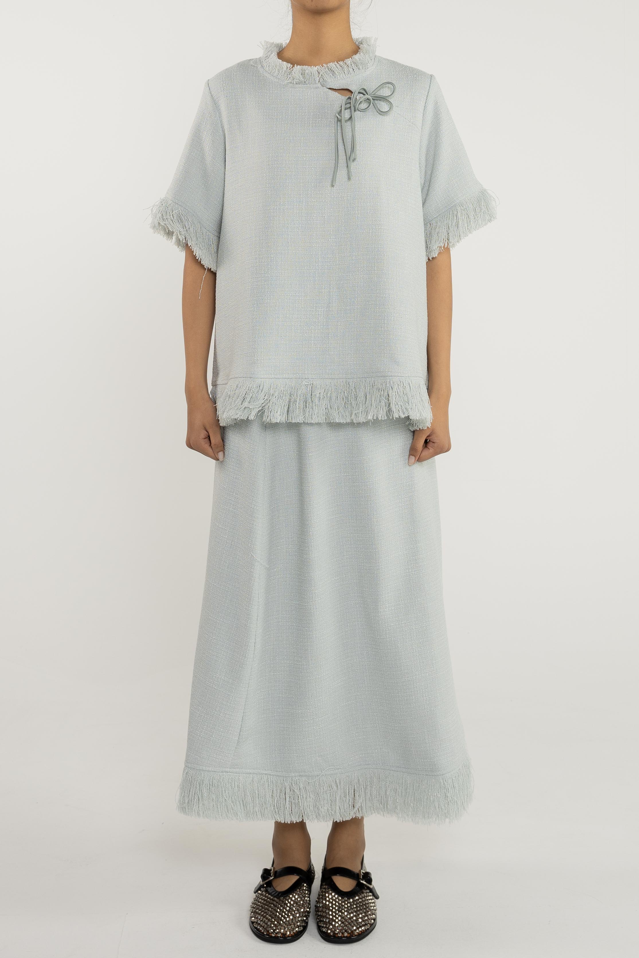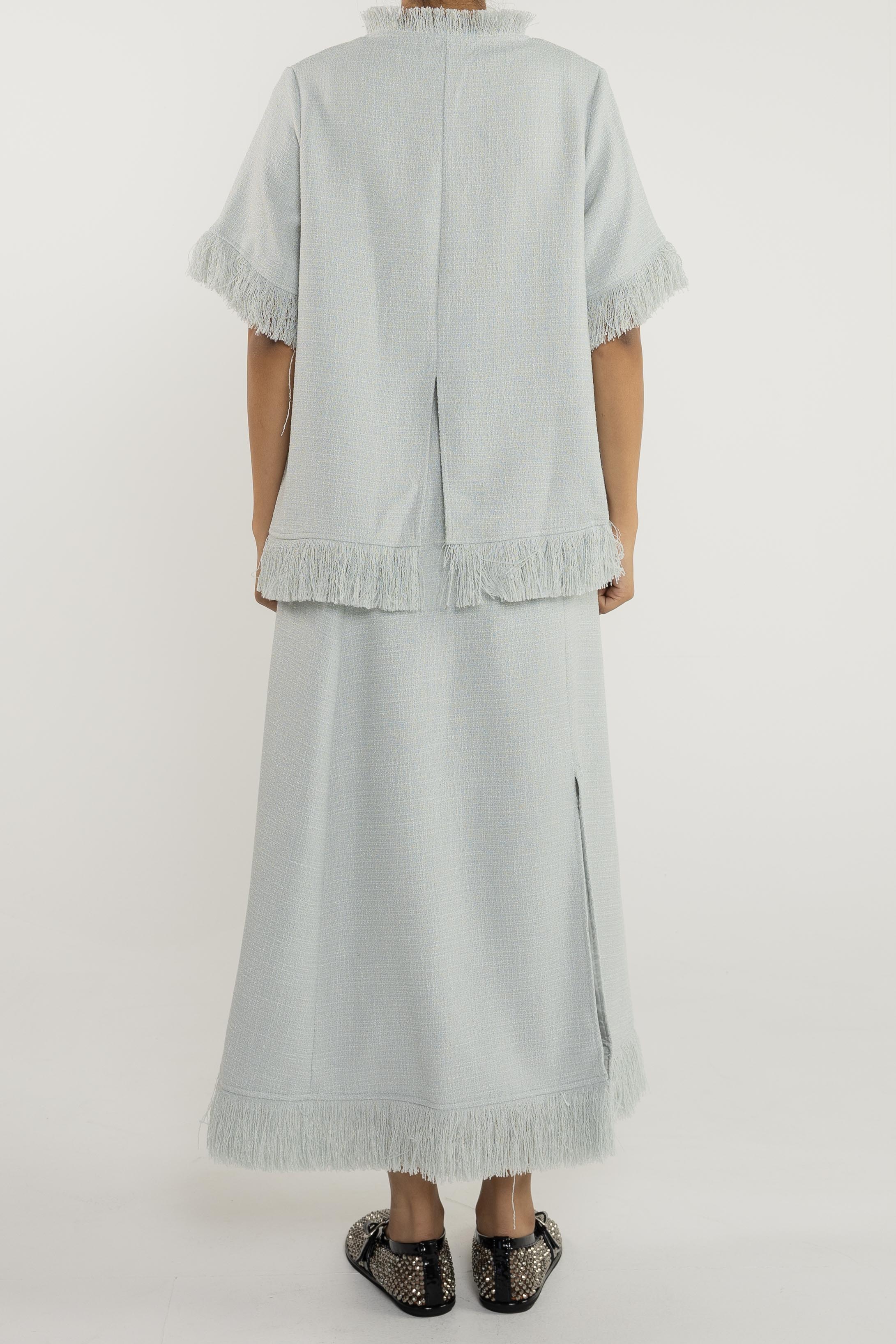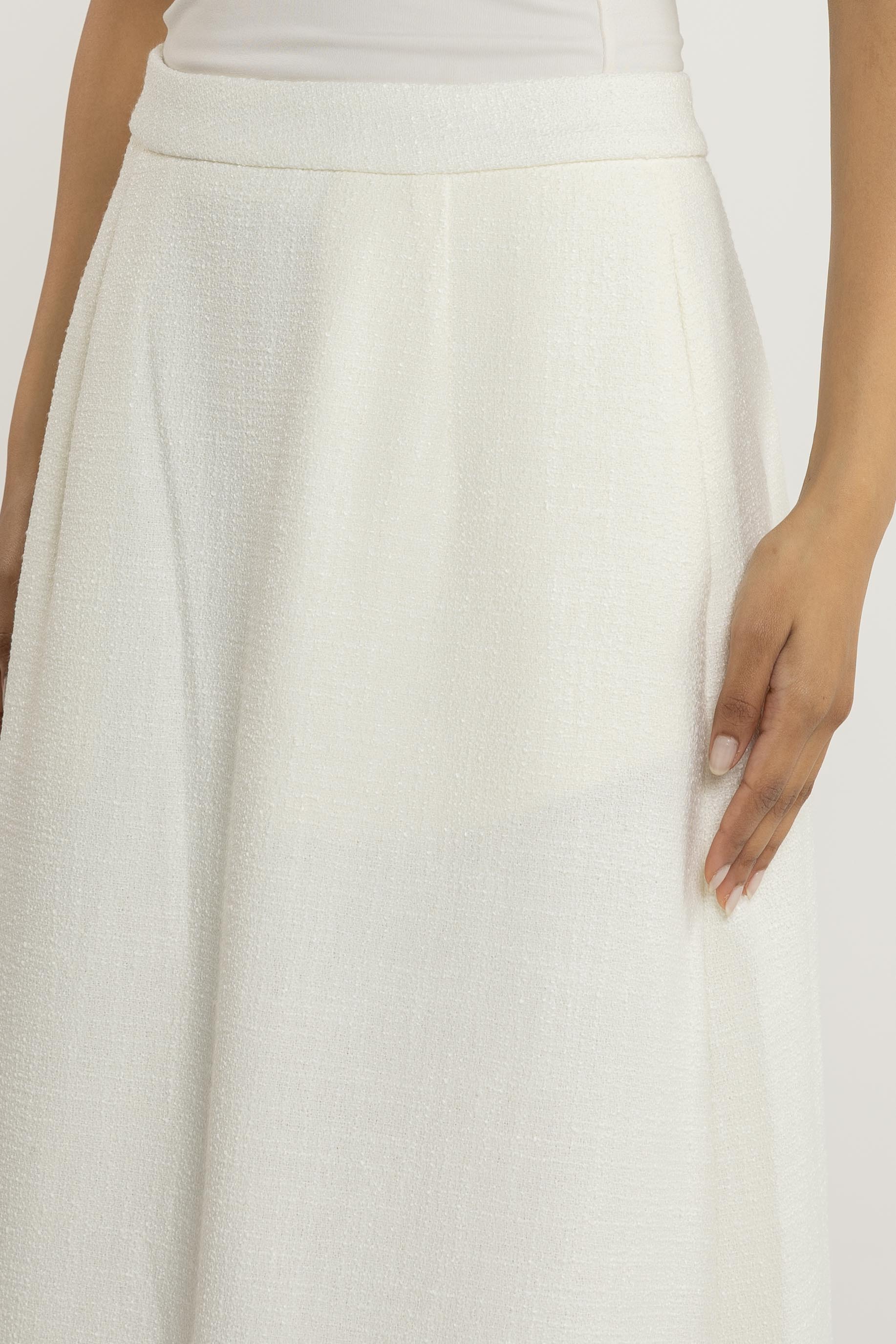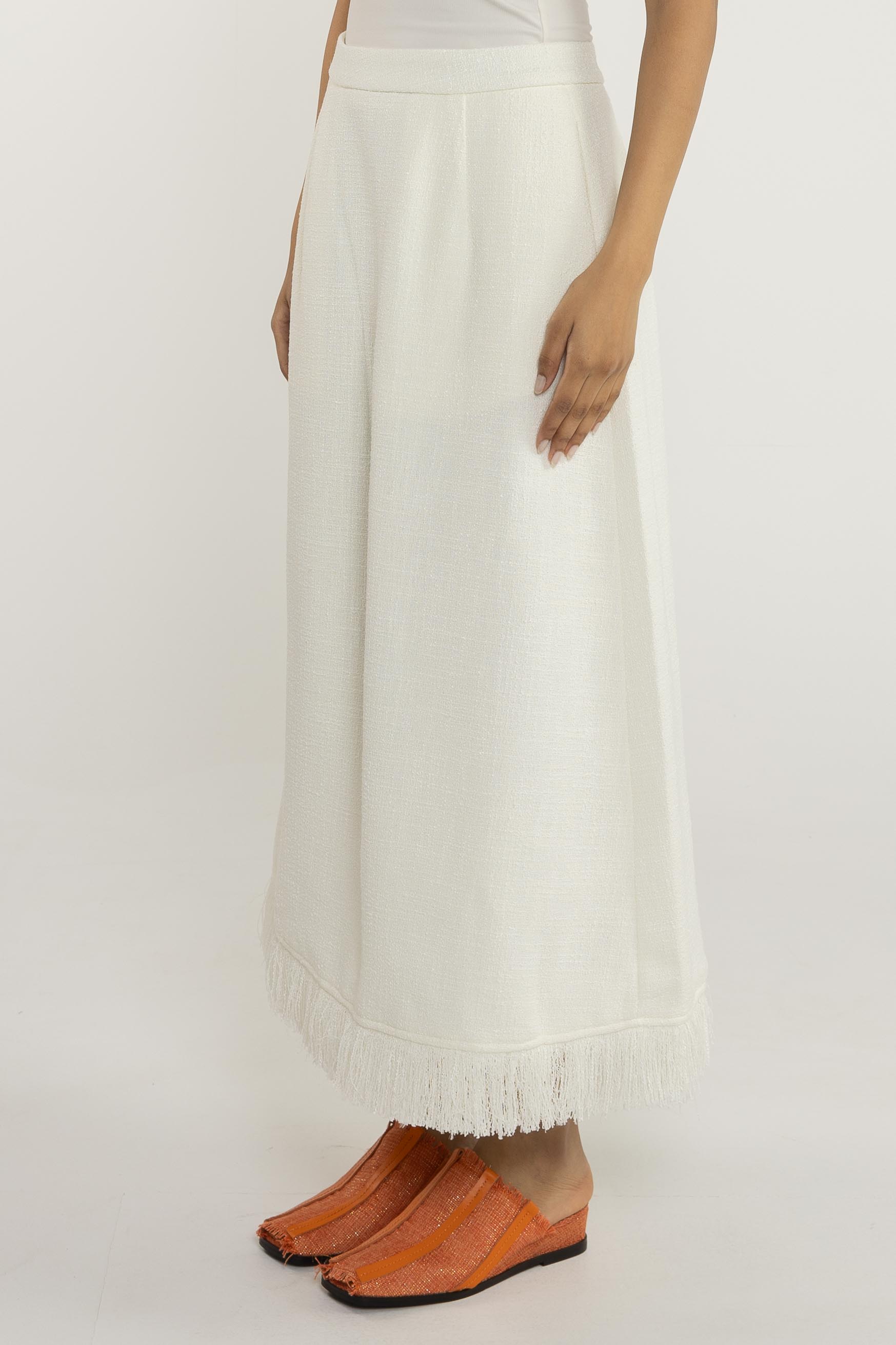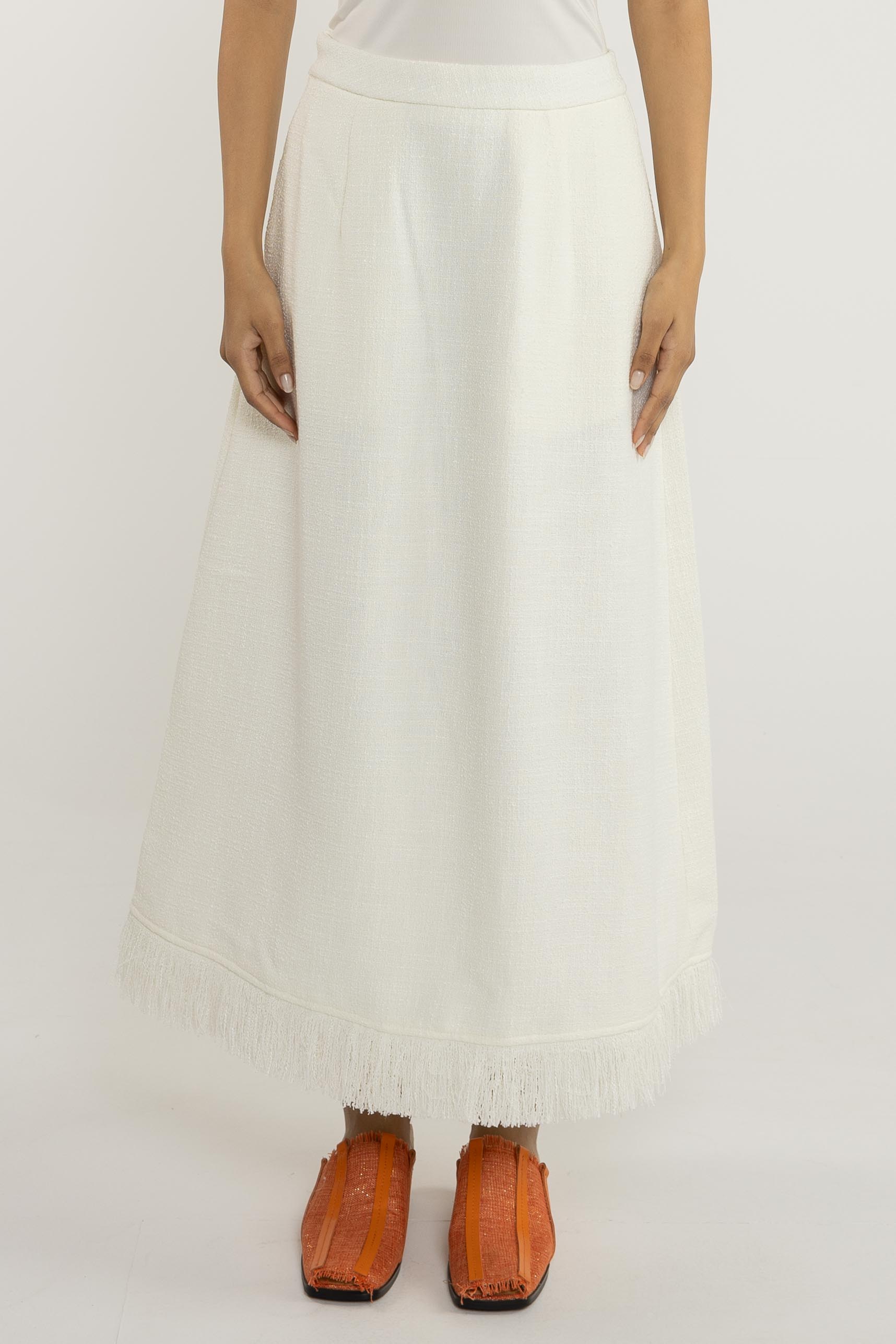 تنورة ماكسي. سحاب جانبي. حاشية واسعة.