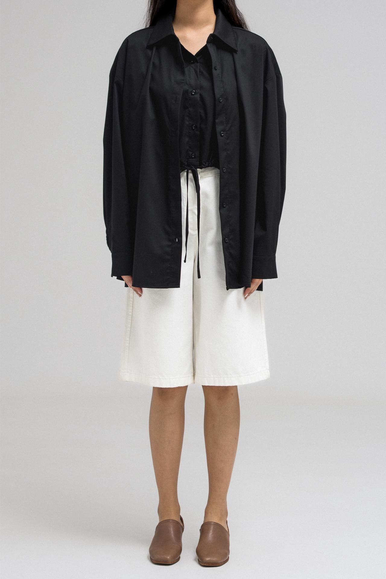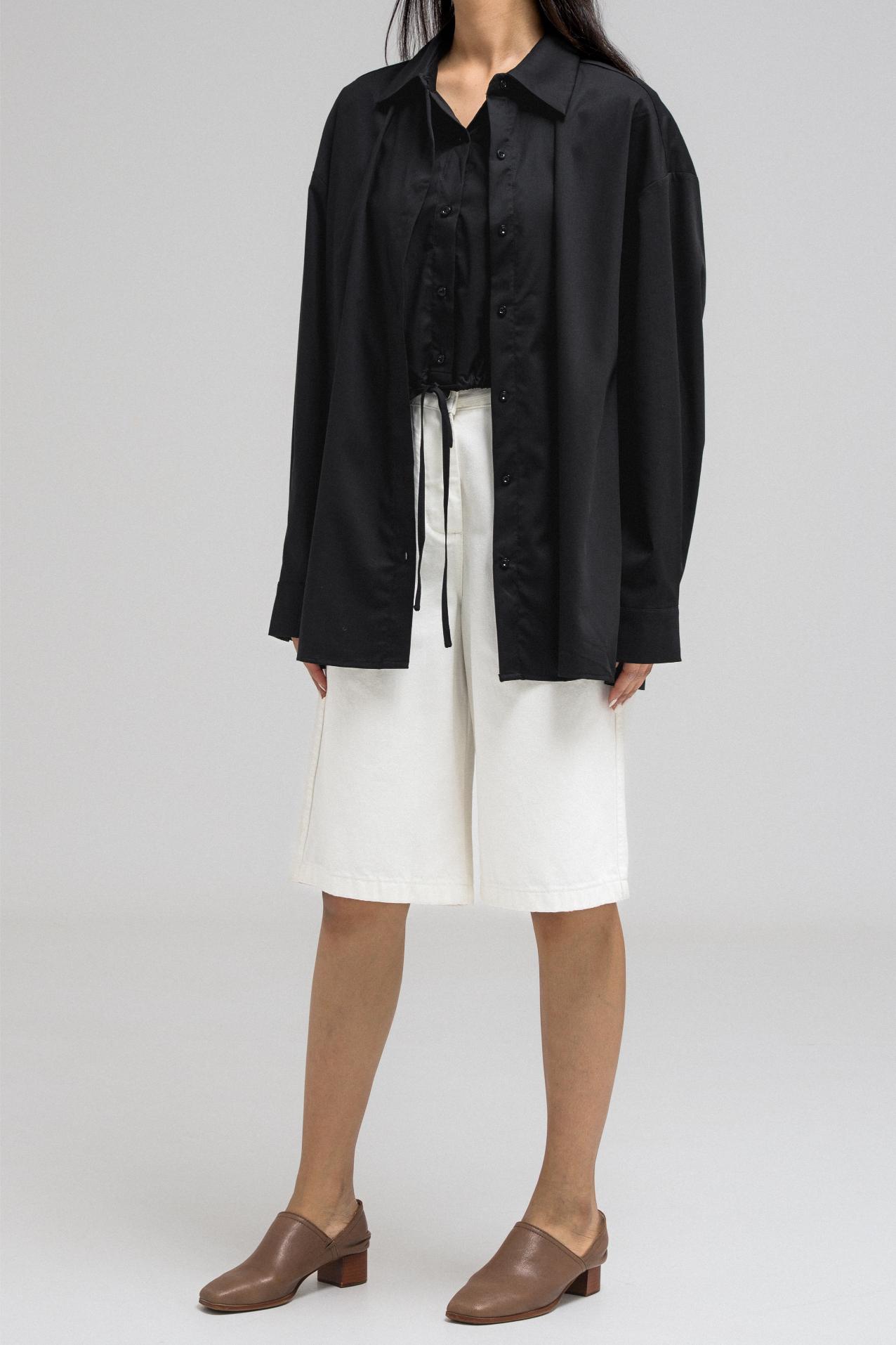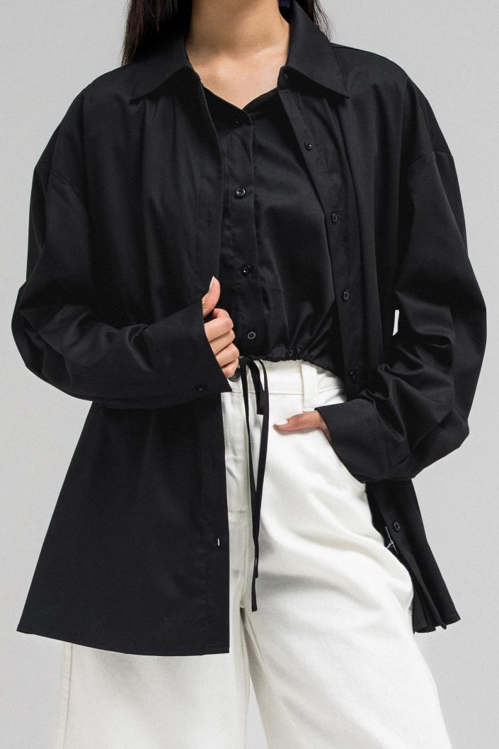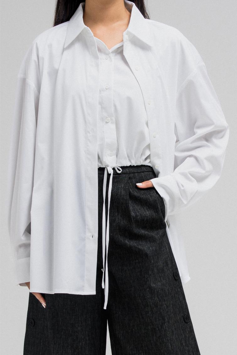 يتميز هذا القميص الفريد بتصميم أنيق يجمع بين الفخامة والأناقة - قميص كلاسيكي بياقة وأزرار أمامية للإغلاق، متصل بسلاسة بقميص داخلي قصير. تتضمن الطبقة الداخلية القصيرة أربطة قابلة للتعديل عند الحافة، مما يتيح لك تعديل المقاس وإضافة لمسة أنيقة. على الرغم من أنه يوحي بأنه قطعتان منفصلتان، إلا أن المظهر متعدد الطبقات متصل بالكامل، مما يجعله سهل الارتداء ويضفي لمسة عصرية أنيقة.