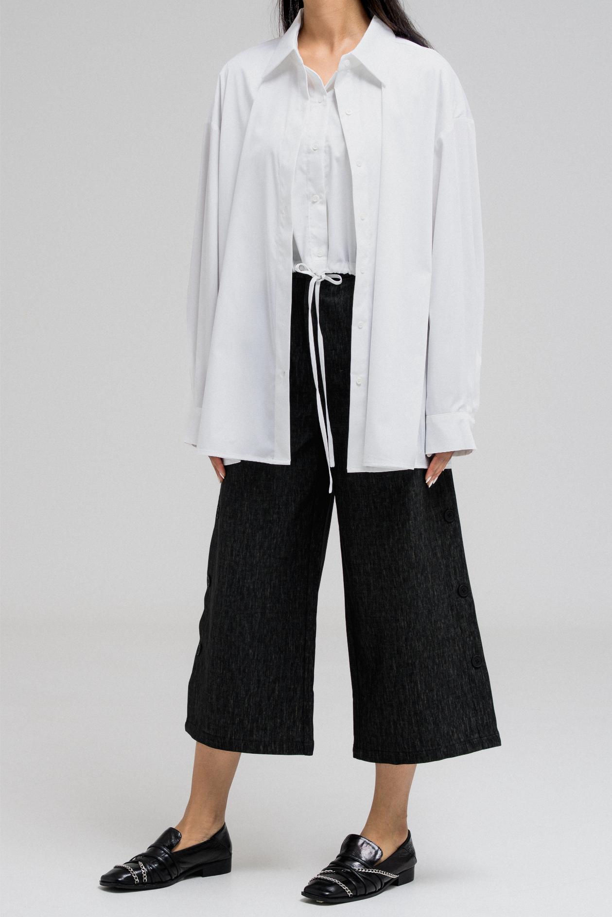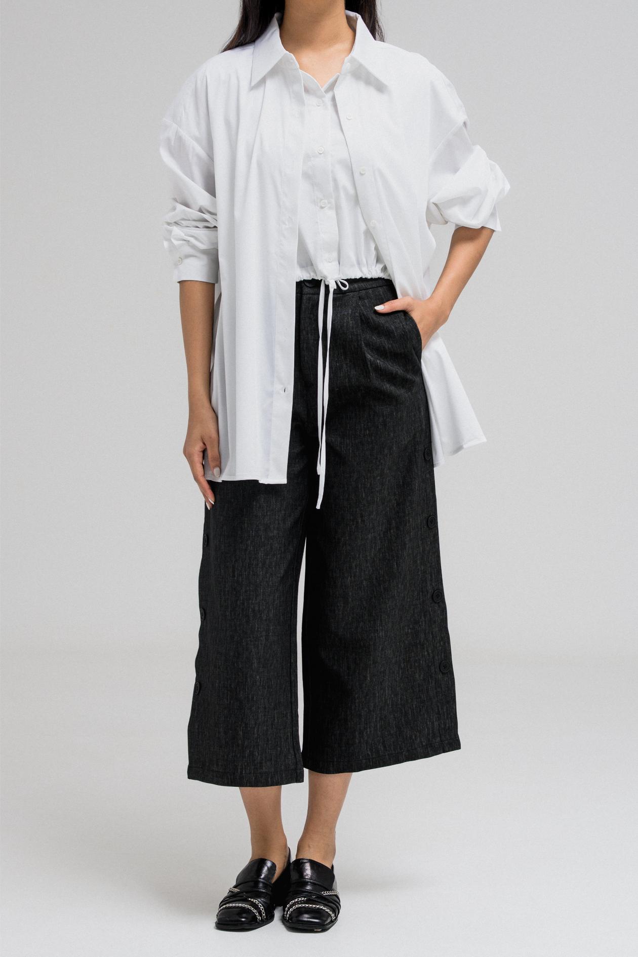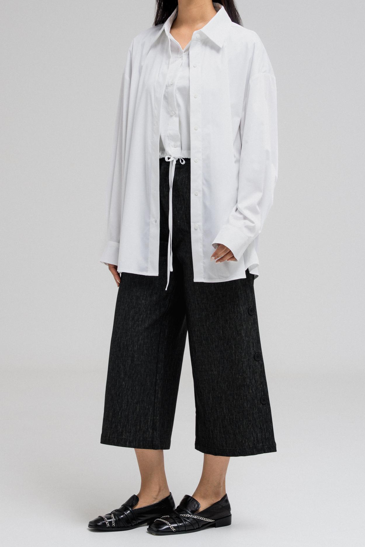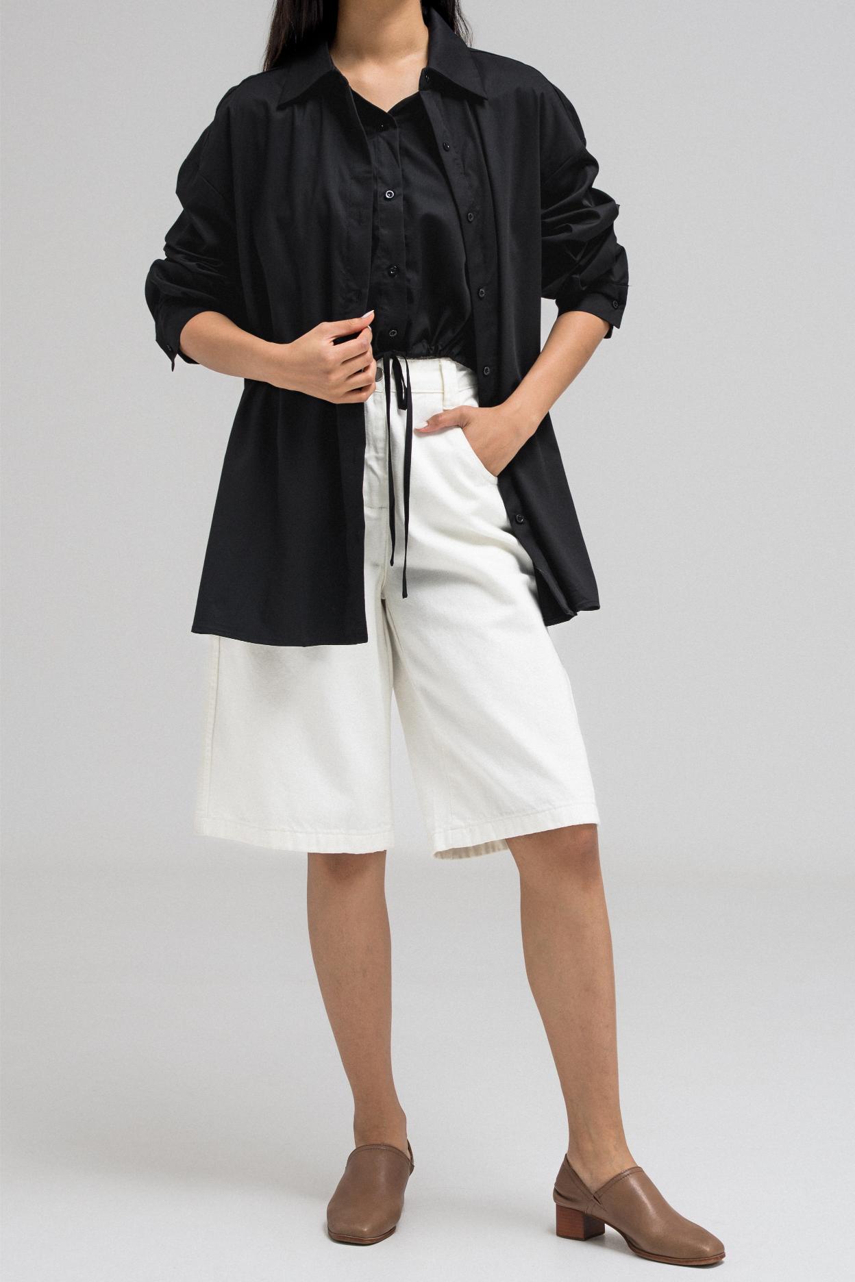 يتميز هذا القميص الفريد بتصميم أنيق يجمع بين الفخامة والأناقة - قميص كلاسيكي بياقة وأزرار أمامية للإغلاق، متصل بسلاسة بقميص داخلي قصير. تتضمن الطبقة الداخلية القصيرة أربطة قابلة للتعديل عند الحافة، مما يتيح لك تعديل المقاس وإضافة لمسة أنيقة. على الرغم من أنه يوحي بأنه قطعتان منفصلتان، إلا أن المظهر متعدد الطبقات متصل بالكامل، مما يجعله سهل الارتداء ويضفي لمسة عصرية أنيقة.