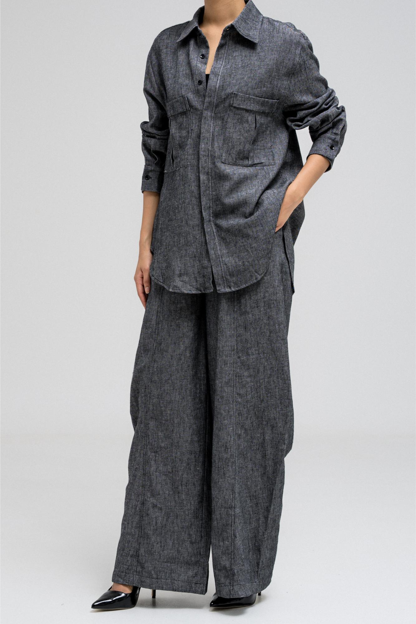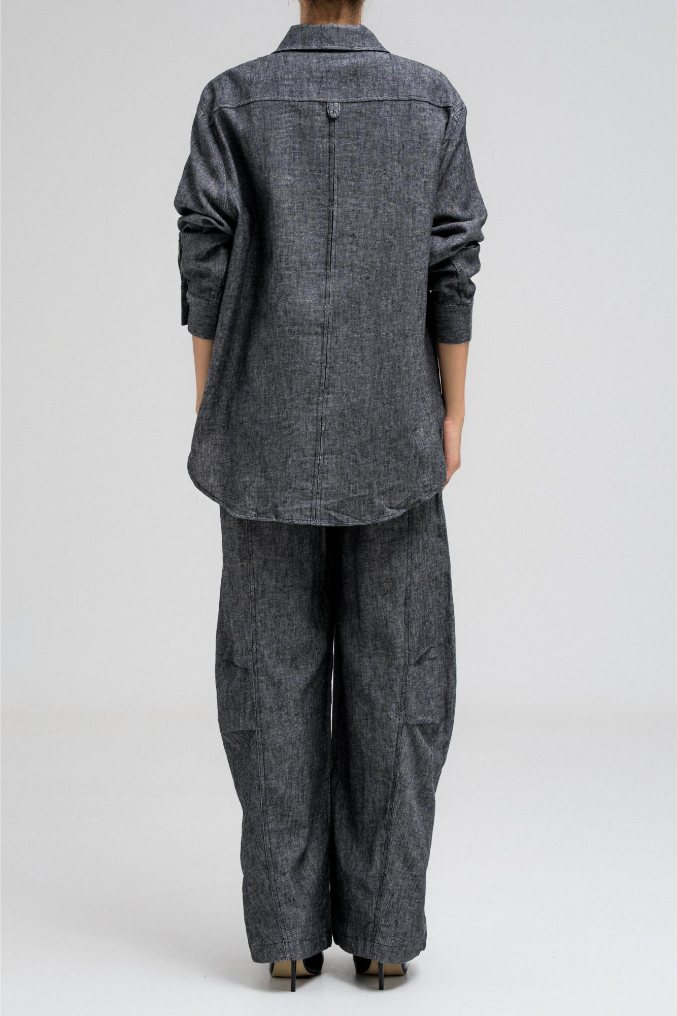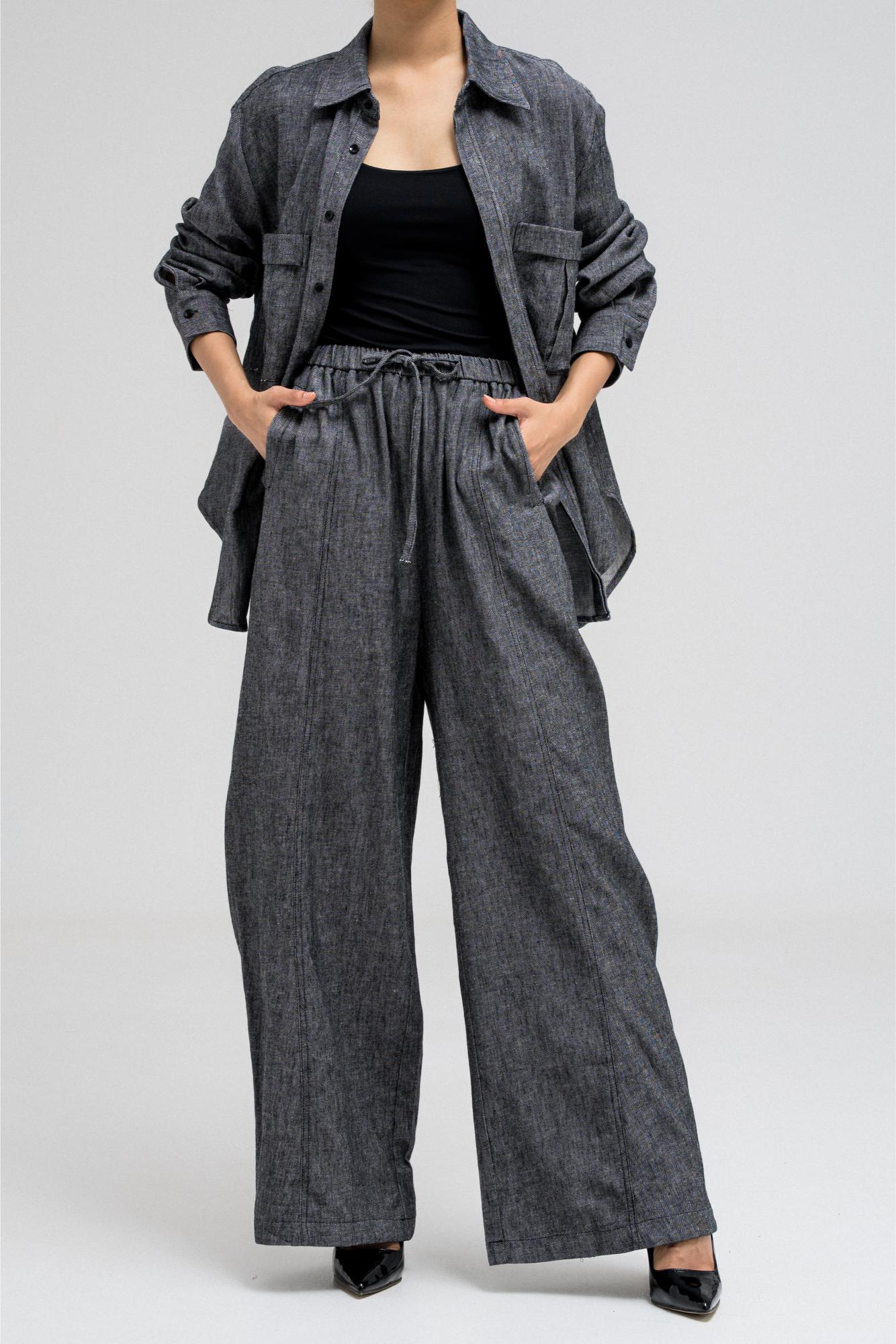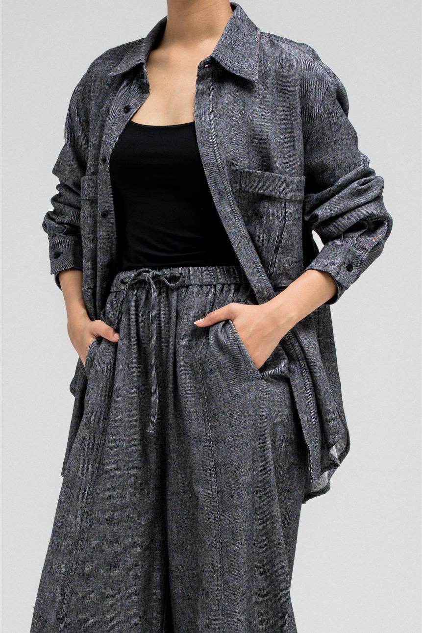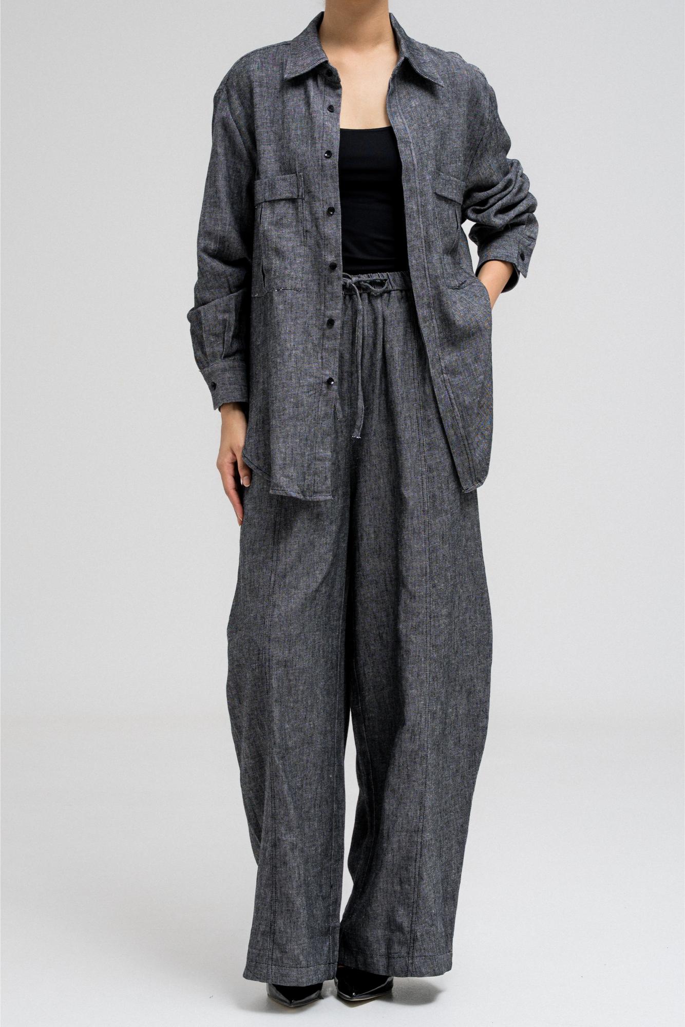 هذه البلوزة مصنوعة من قماش ناعم وخفيف الوزن بتصميم انسيابي مريح. تتميز بزر إغلاق أمامي وياقة قميص كلاسيكية، مما يمنحها مظهرًا أنيقًا وعصريًا. تتناسب تمامًا مع البنطال المطابق لإطلالة مريحة ومتناسقة.