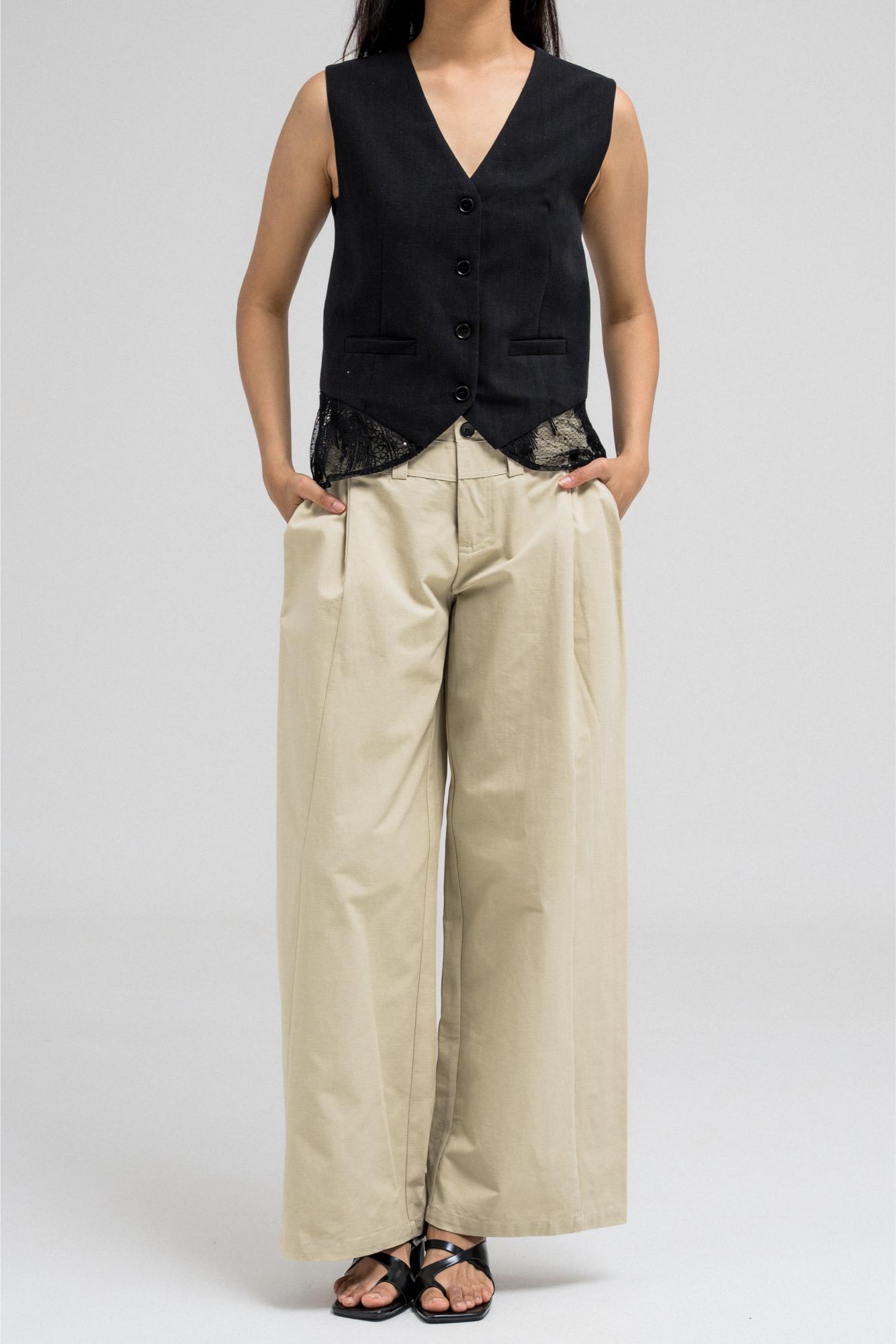 تجمع هذه السترة بين واجهة من الكتان الخفيف وظهر شفاف من الدانتيل الرقيق بتفاصيل لامعة رقيقة. تتميز بزر إغلاق أمامي. وفي الخلف، مُزينة بأربطة قابلة للتعديل تُضفي لمسة أنيقة. مثالية للارتداء على طبقات لتُضفي لمسةً من الأناقة على أي إطلالة.