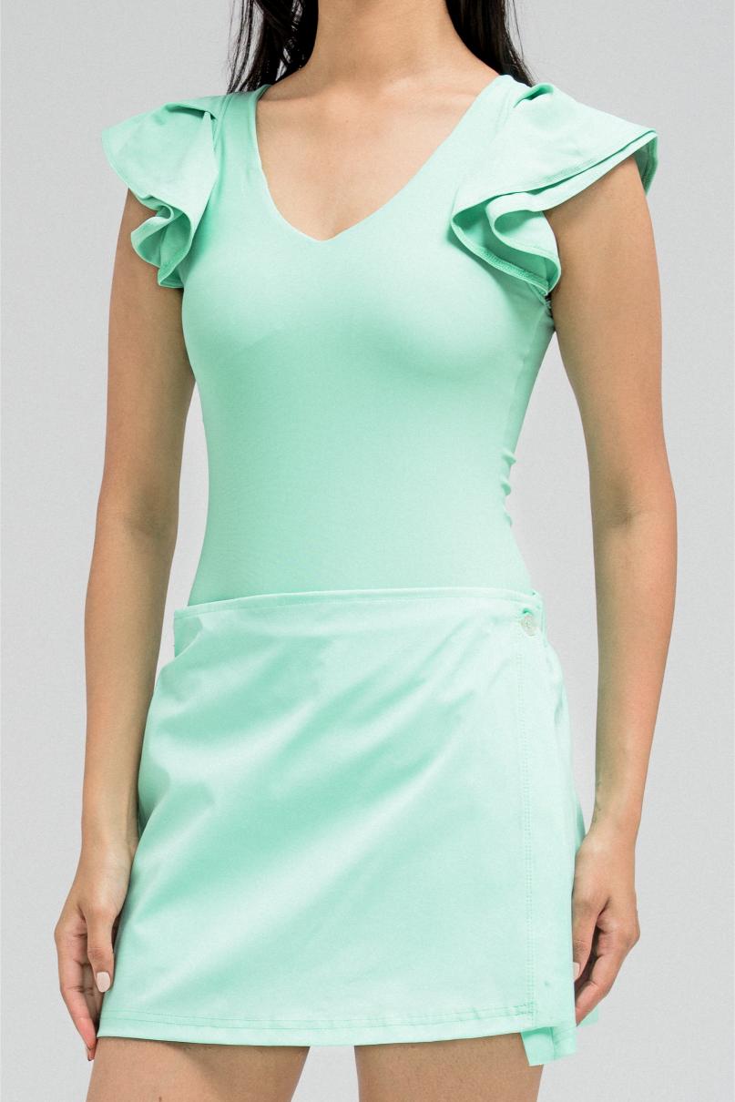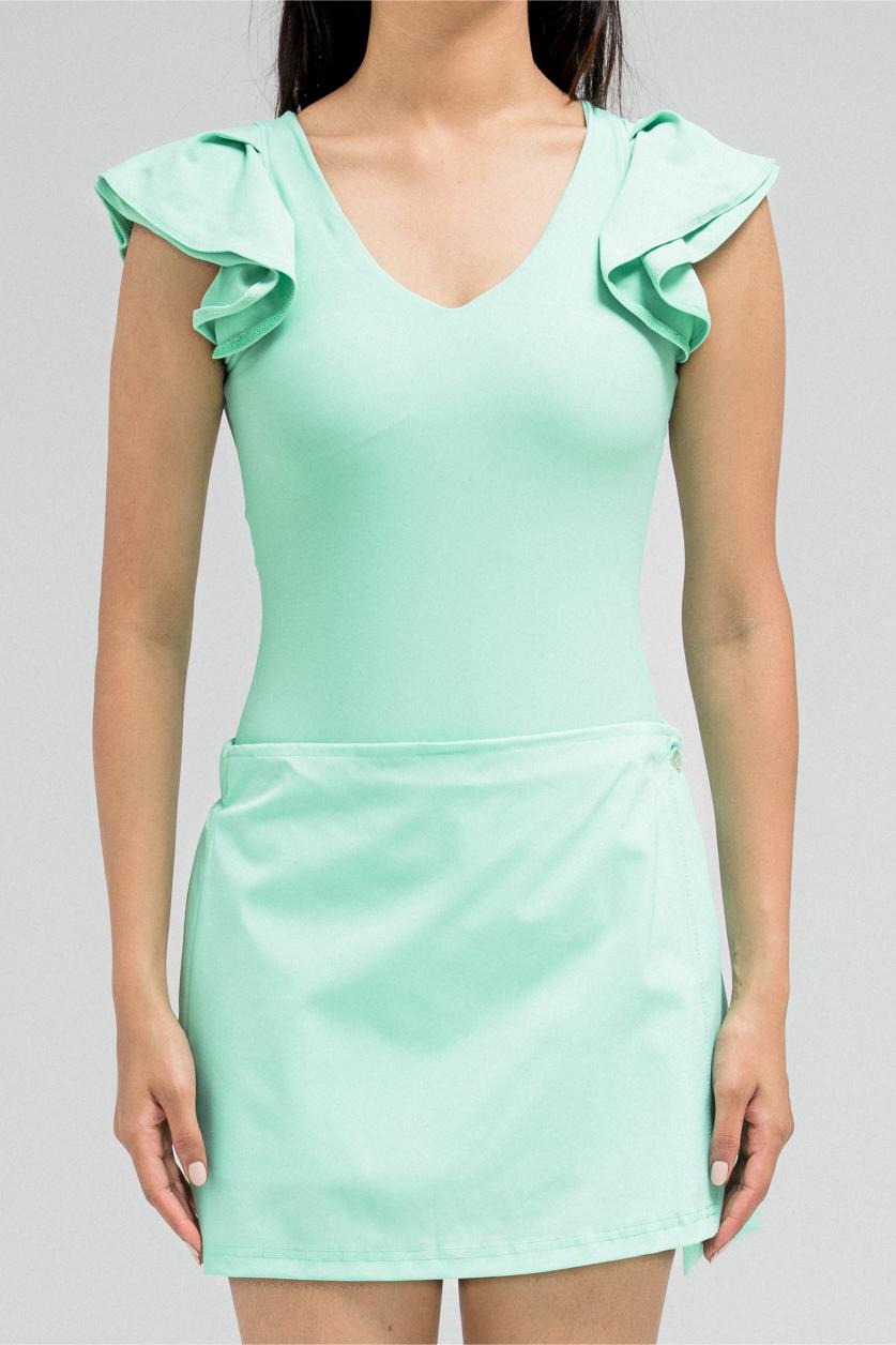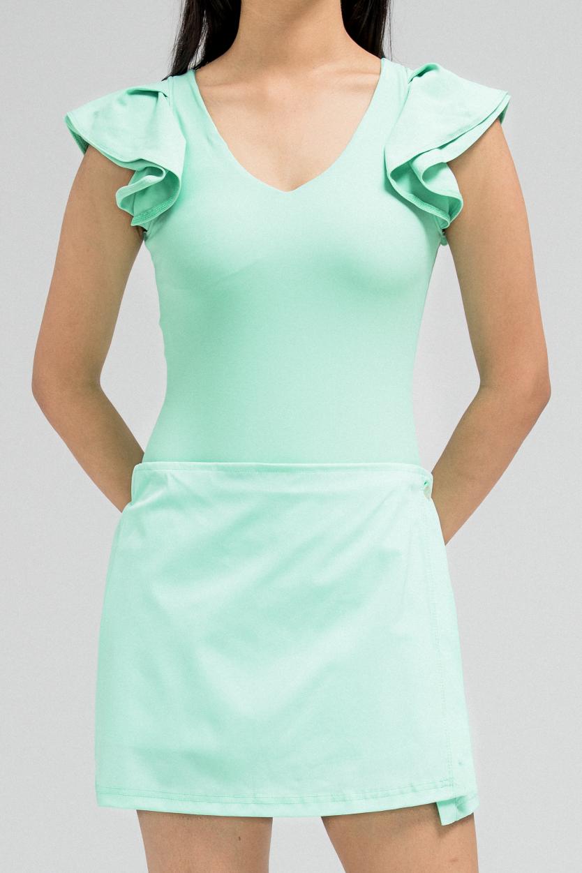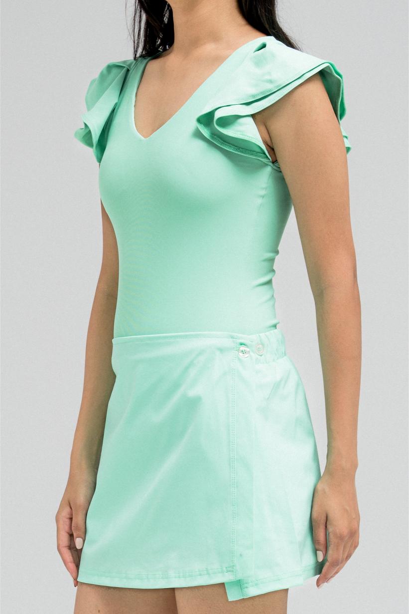 طقم سباحة بكشكشة مع تنورة قصيرة ملفوفة