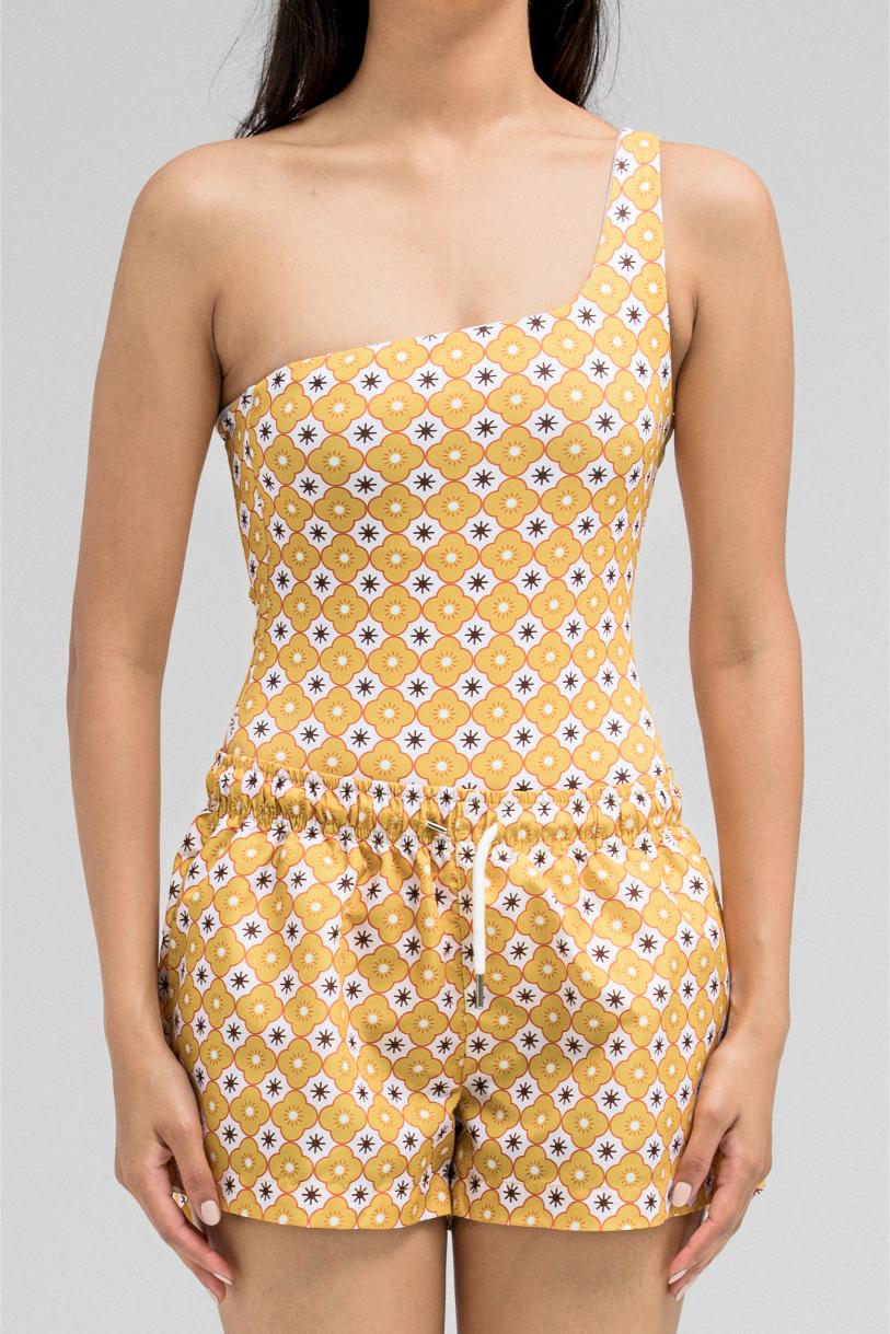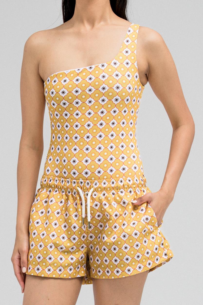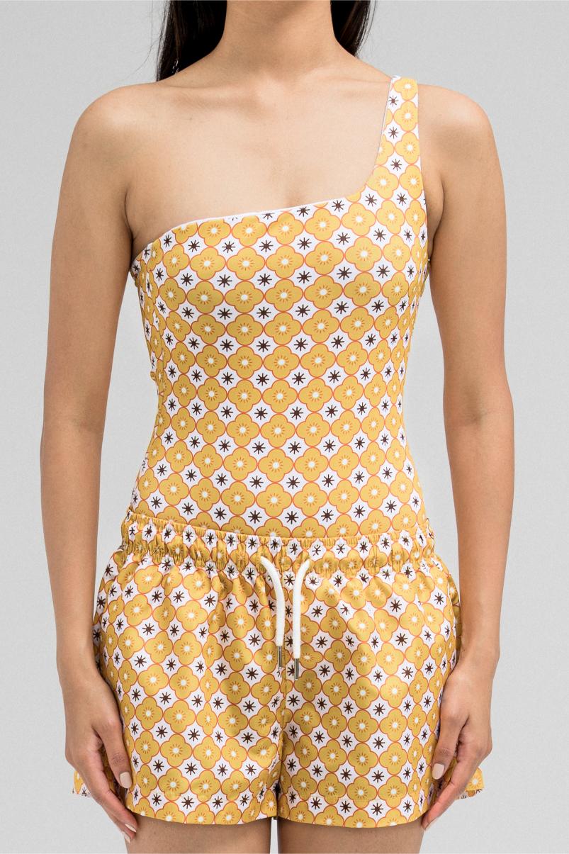 طقم سباحة أنيق من قطعة واحدة، بتصميم أنيق بفتحة رقبة مكشوفة الكتف، يمنحه مظهرًا عصريًا غير متماثل. مزود ببطانة داخلية لمزيد من الراحة والدعم. يمكن تنسيقه مع شورت مطابق بحزام خصر مطاطي ورباط قابل للتعديل، مما يجعله سهل الارتداء.