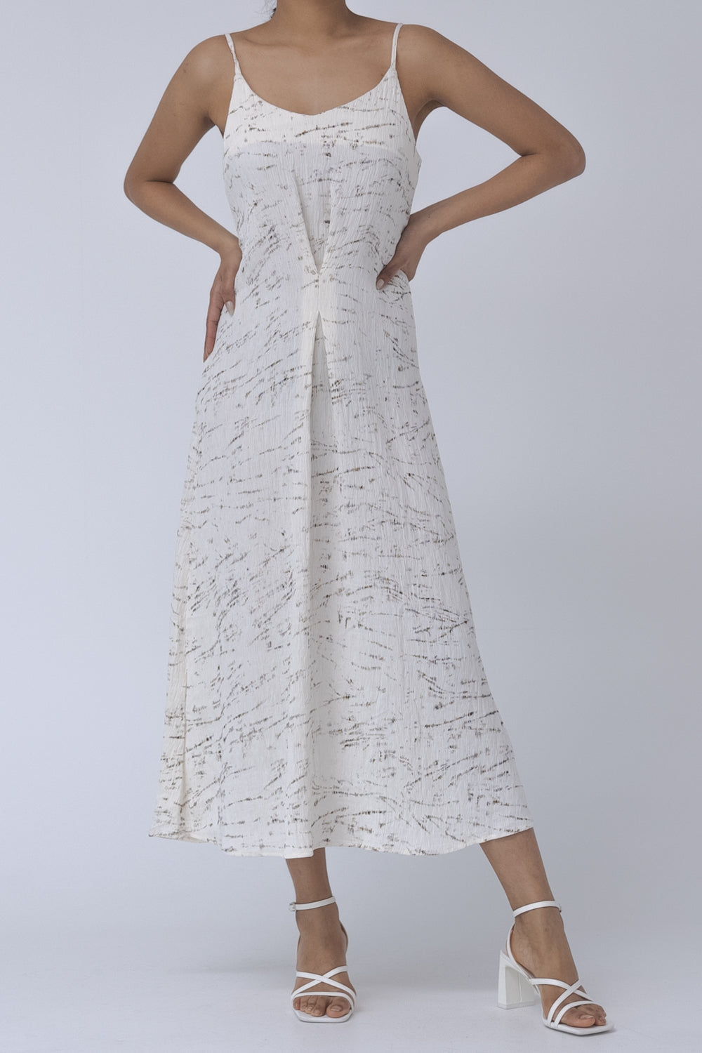 فستان خفيف الوزن وفضفاض بقماش منسوج. مصمم بأشرطة قابلة للتعديل لمقاس مناسب، وسحاب خلفي لسهولة الارتداء. مثالي للتنسيق مع جاكيت منسوج مطابق لإطلالة متناسقة.