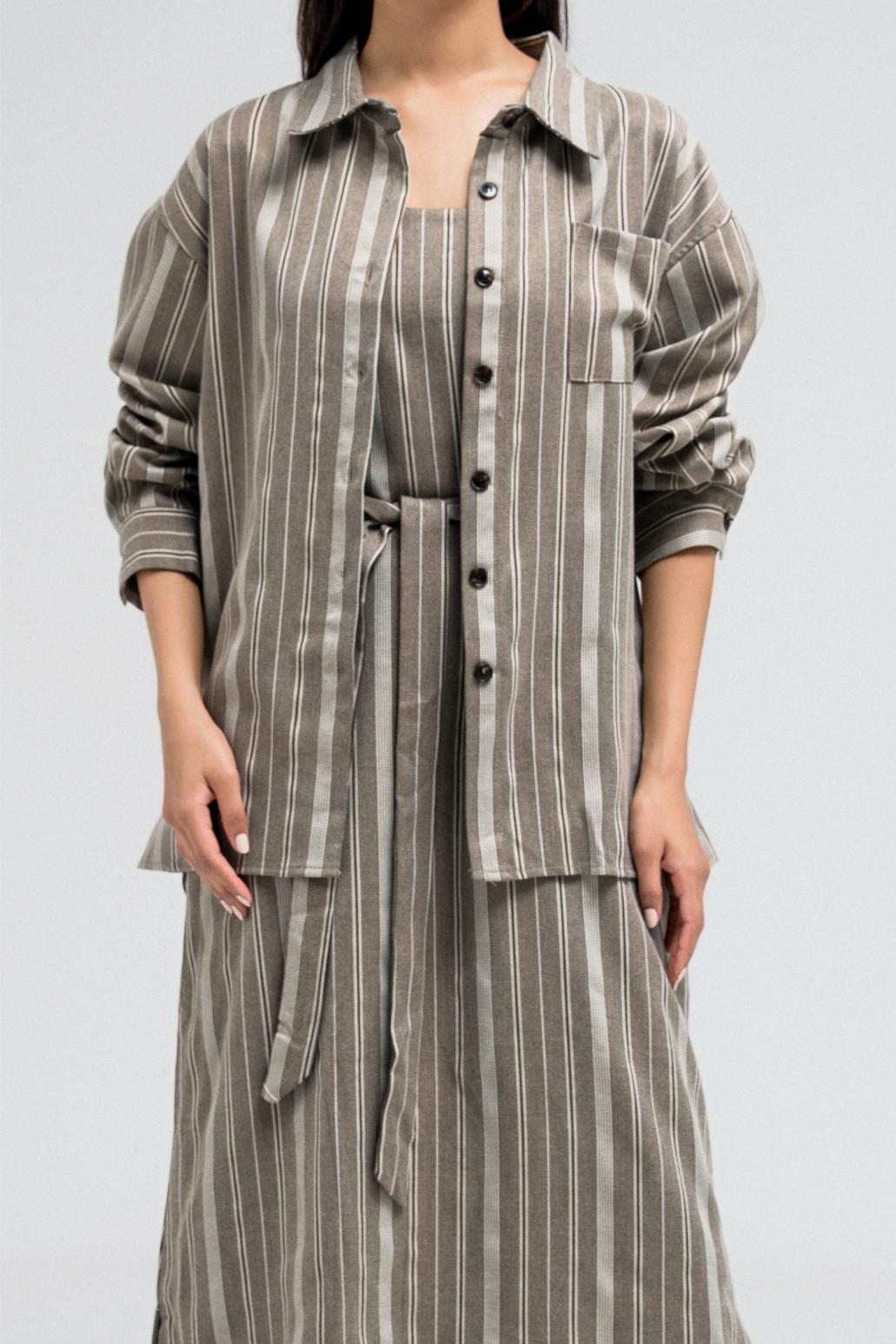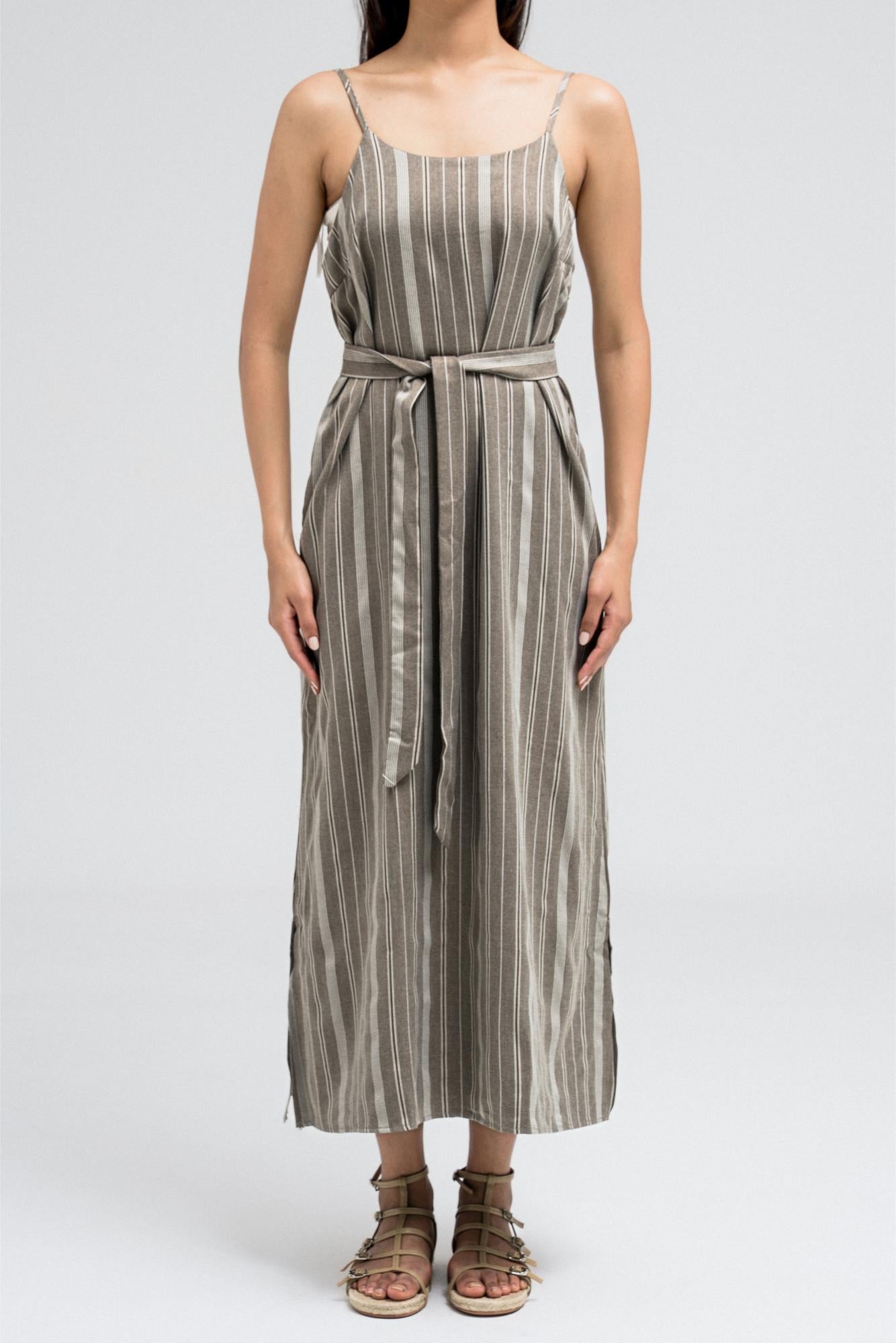 فستان مخطط انسيابي يتميز بأشرطة رفيعة قابلة للتعديل، ويأتي مع حزام مطابق قابل للفصل لتضييق الخصر حسب الرغبة. خفيف الوزن وسهل التصفيف، ويتناسب تمامًا مع القميص المطابق لإطلالة متناسقة.