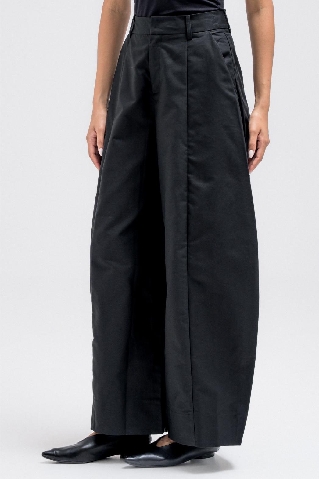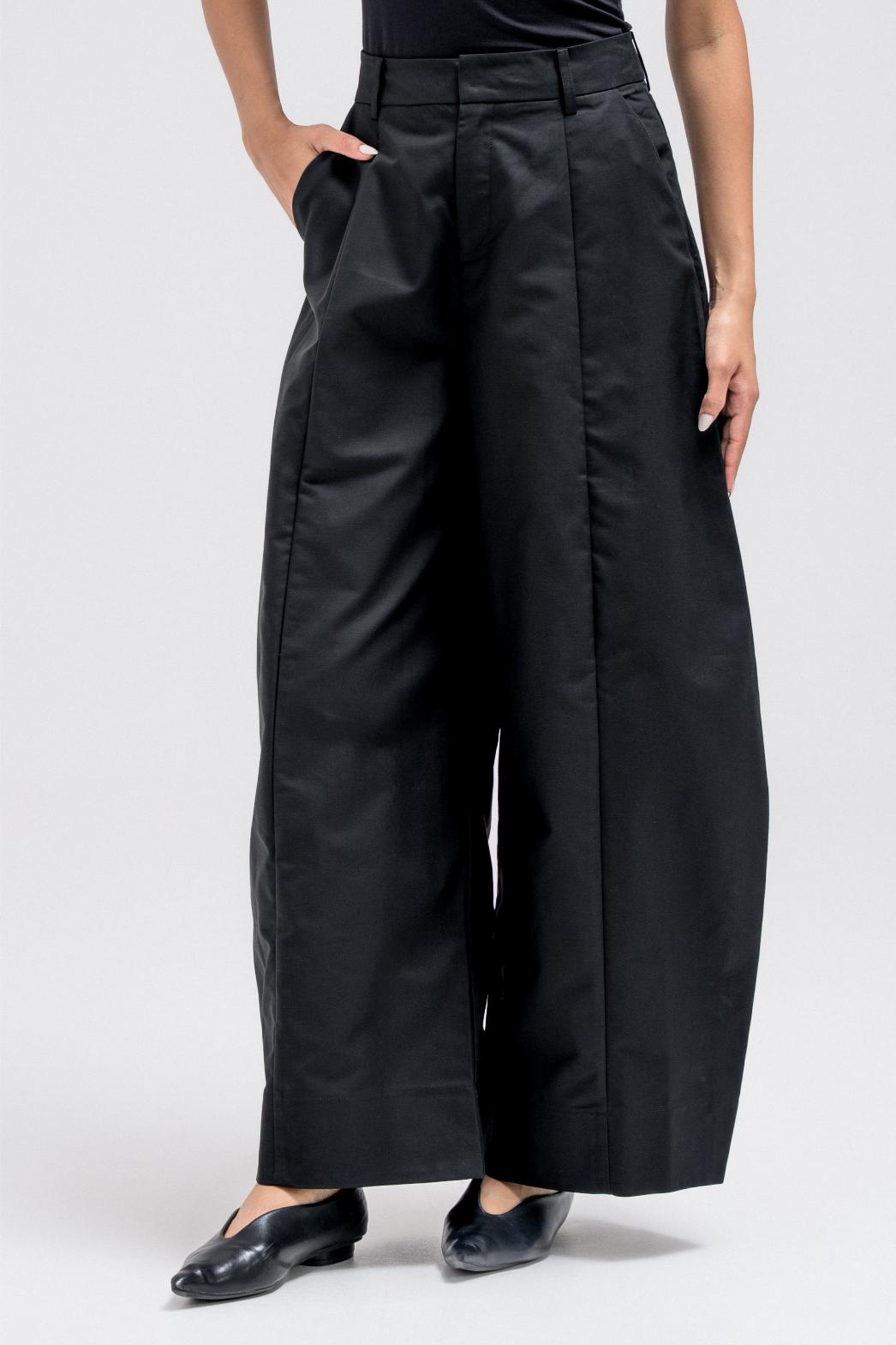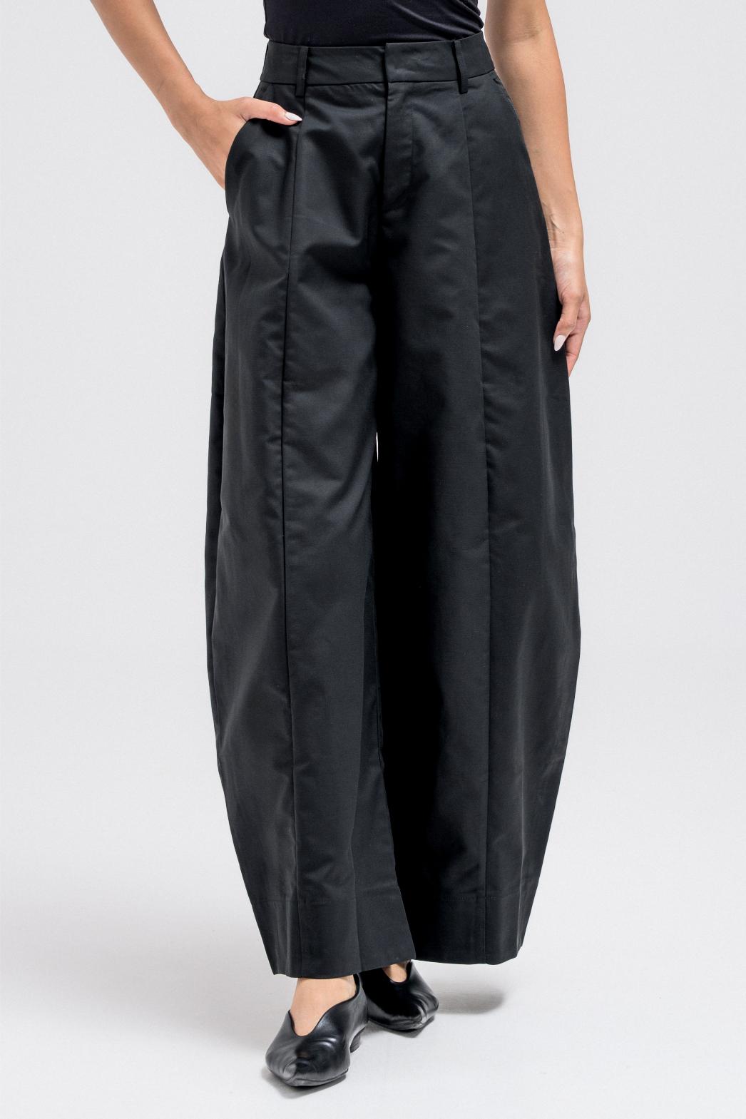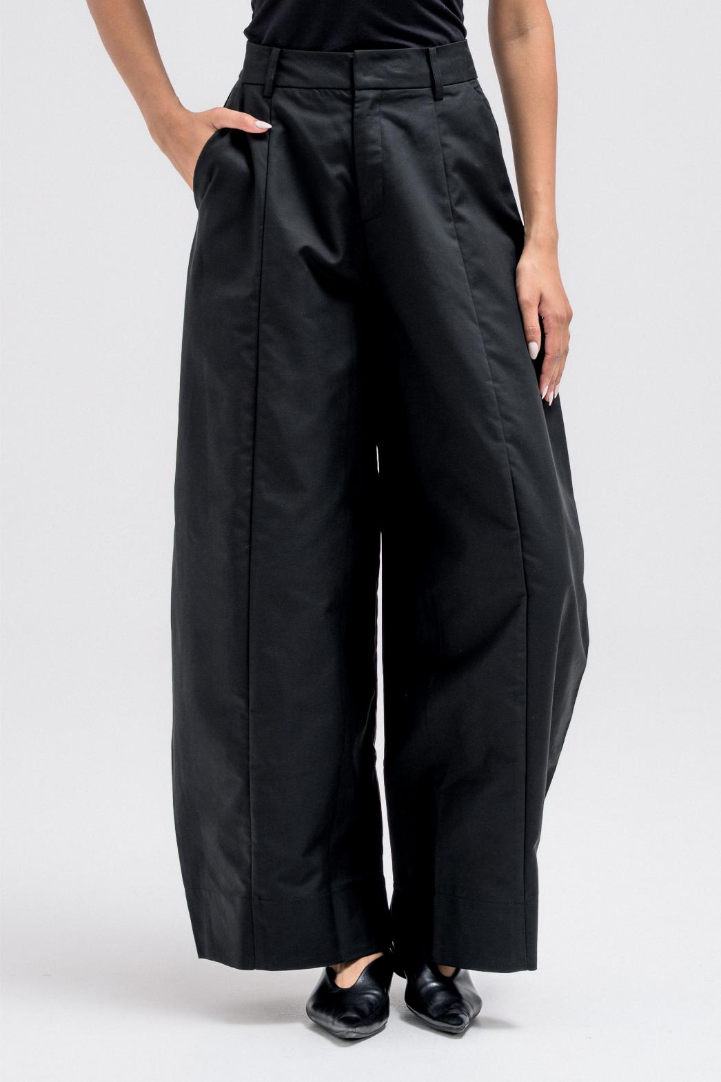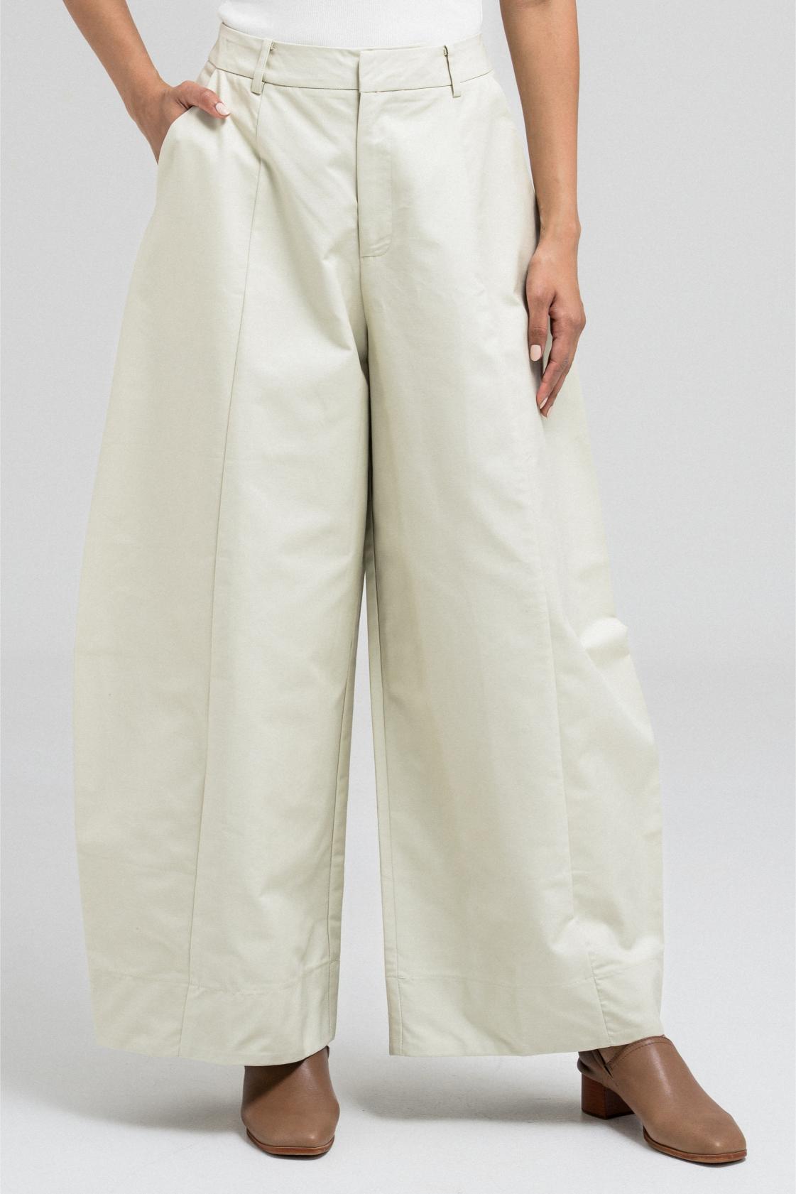 بنطال بتصميم برميلي، يتميز بمشبك أمامي معدني مخفي، وسحاب، وجيوب جانبية عملية. مثالي للتنسيق مع سترة رسمية مطابقة لإطلالة بسيطة.