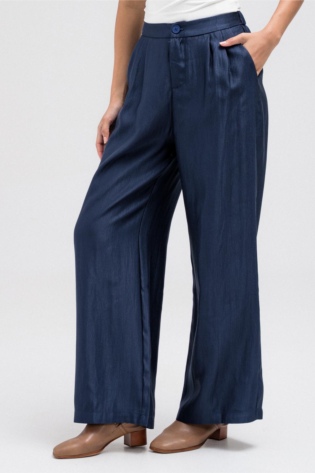 These matching pants are made from the same smooth, lightly shiny fabric for a seamless full-look style. Designed with a comfortable elastic waistband and front button closure, they offer ease of wear while maintaining a clean, tailored appearance. The relaxed wide-leg cut adds flow and movement, making them ideal to wear with the matching jacket for an effortlessly chic, put-together outfit.