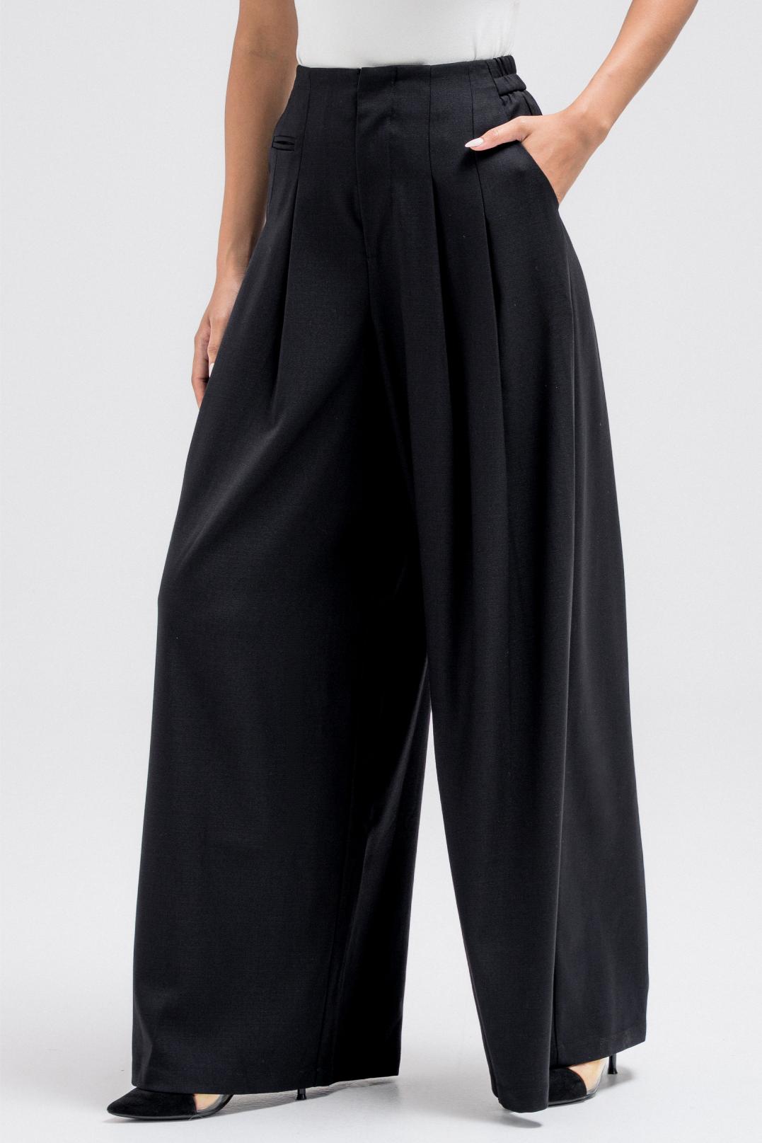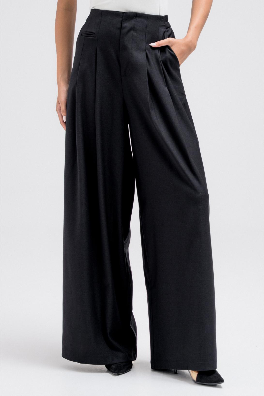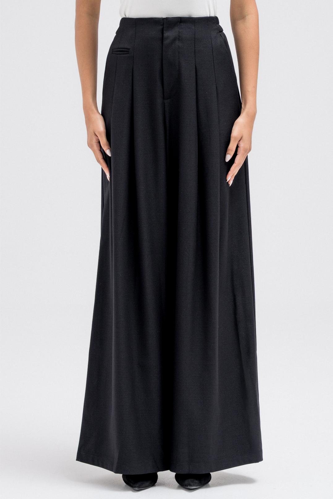 These pants combine structure and comfort with a clean, tailored look in the front and ease at the back. Designed with a pleated front for a polished silhouette, they feature a zipper closure finished with a button and metal clasp for a secure fit. The back is completed with an elastic waistband, allowing comfortable movement while maintaining a sleek appearance. A versatile piece that balances tailored style with everyday wearability.