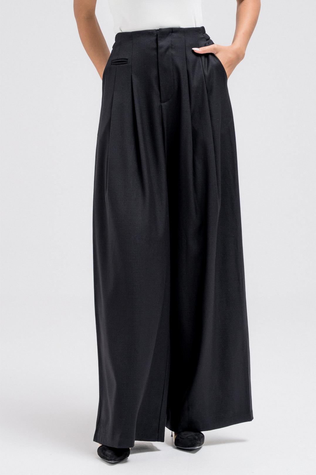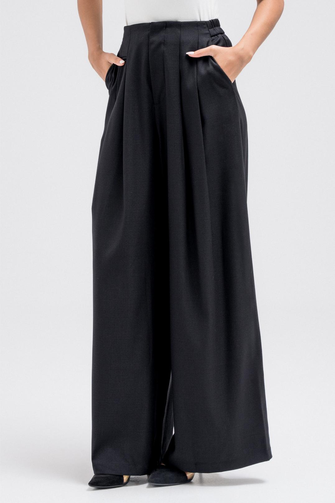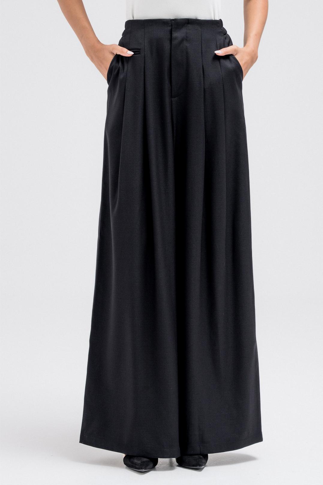 These pants combine structure and comfort with a clean, tailored look in the front and ease at the back. Designed with a pleated front for a polished silhouette, they feature a zipper closure finished with a button and metal clasp for a secure fit. The back is completed with an elastic waistband, allowing comfortable movement while maintaining a sleek appearance. A versatile piece that balances tailored style with everyday wearability.