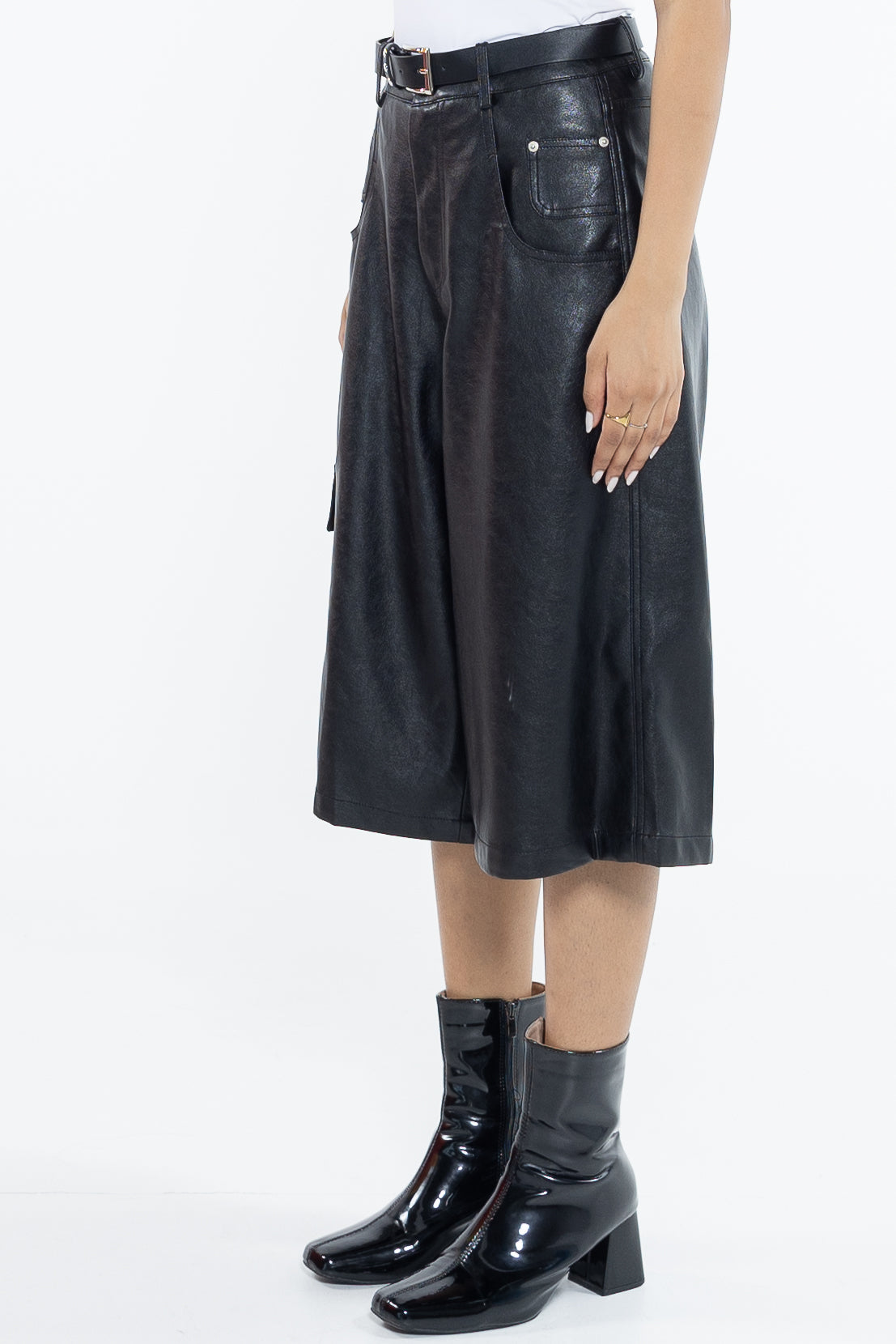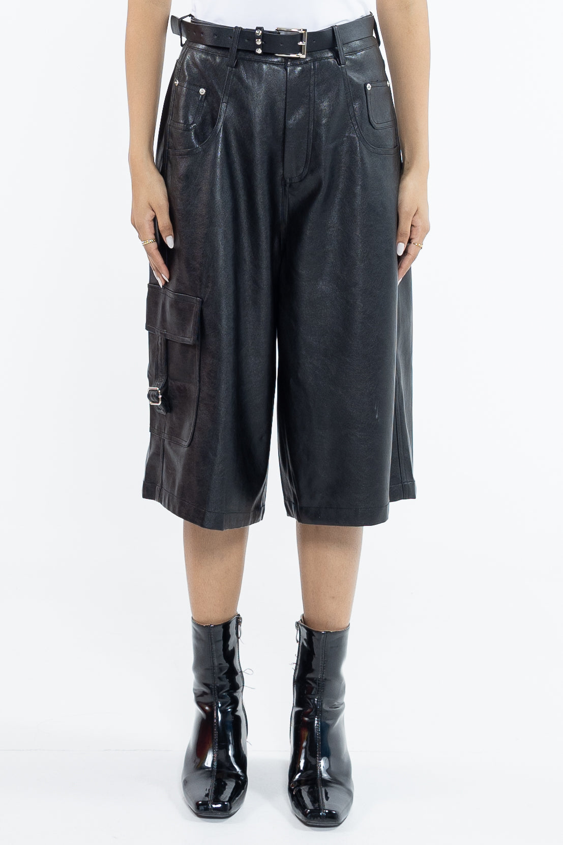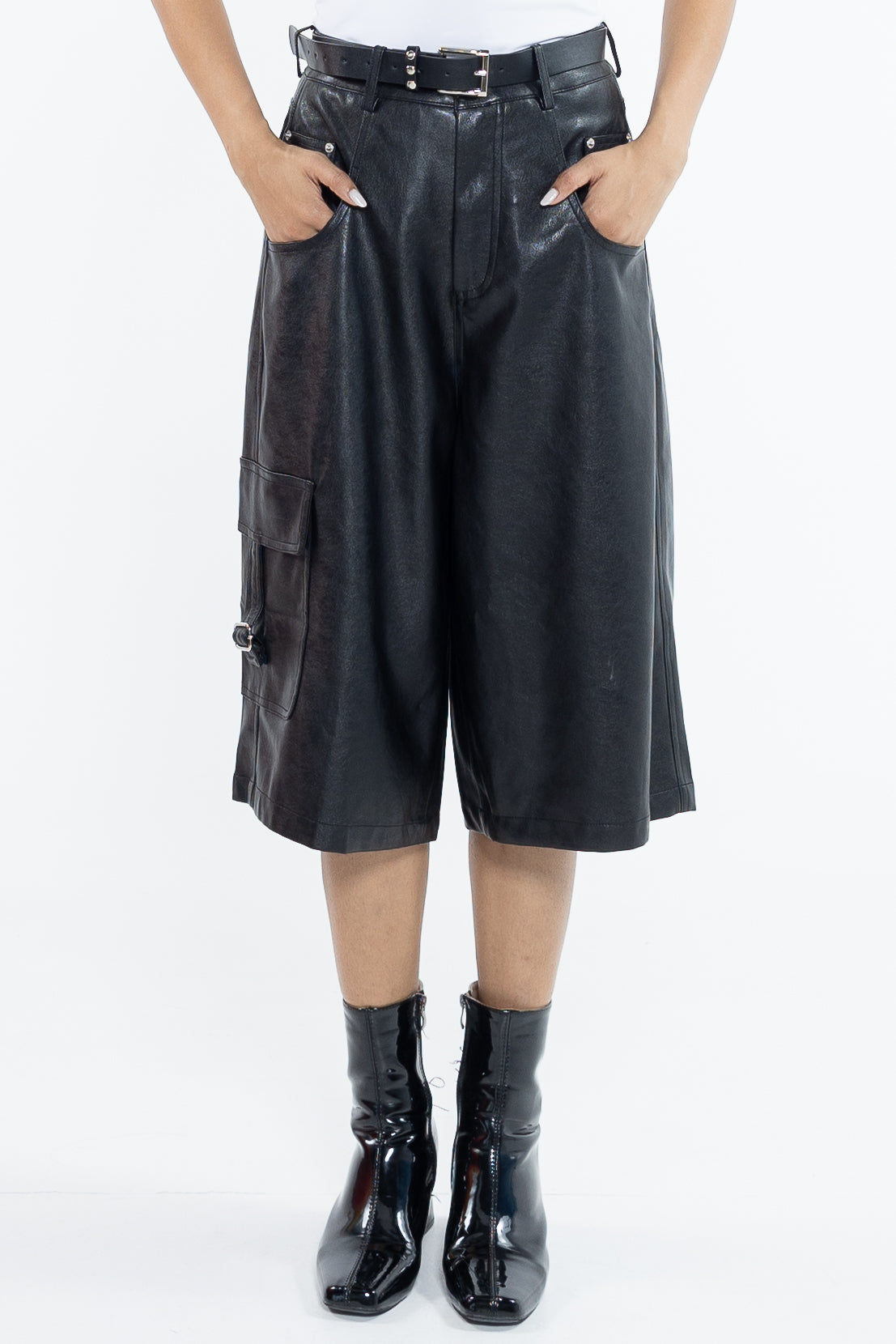 شورت برمودا من الجلد الصناعي