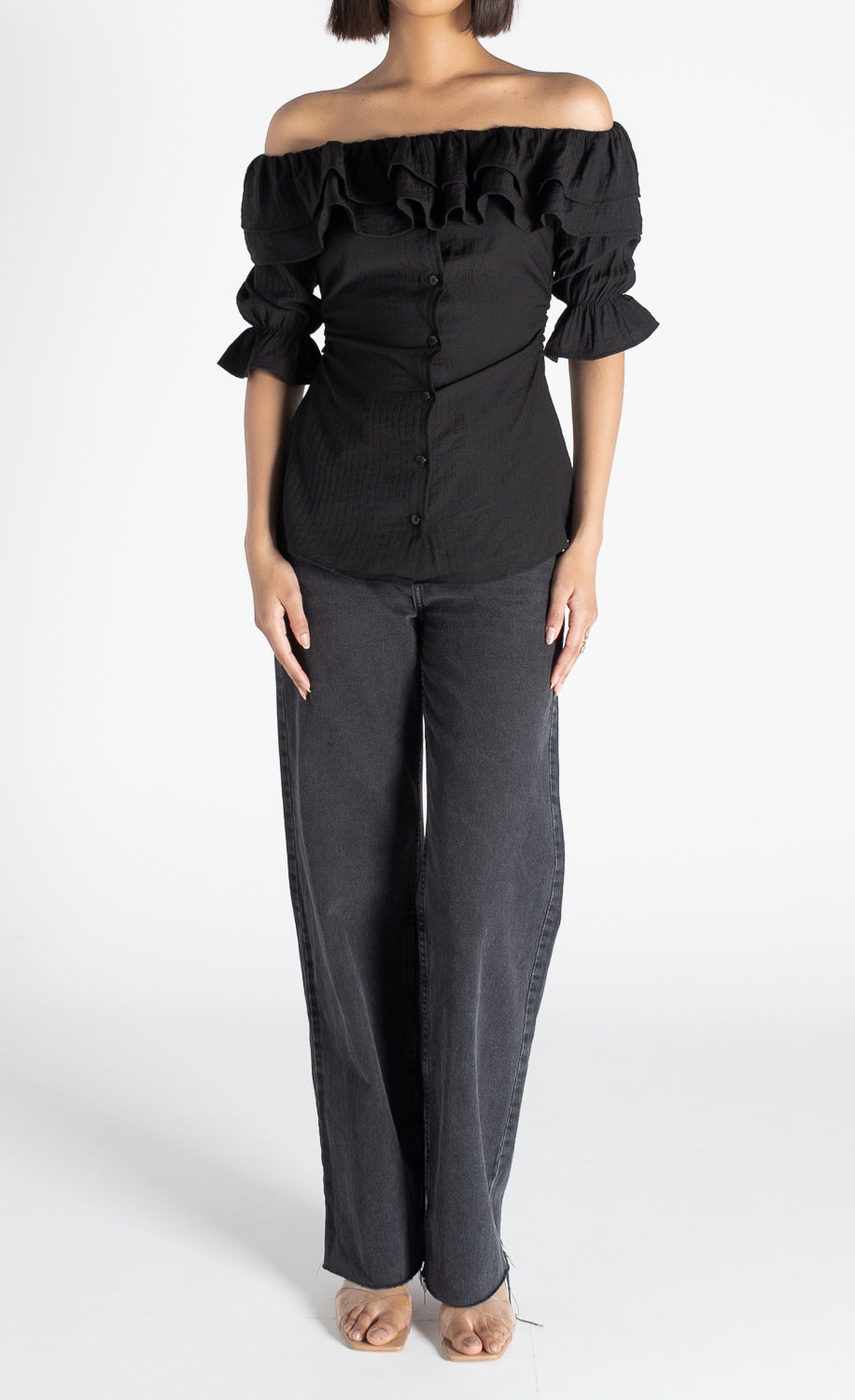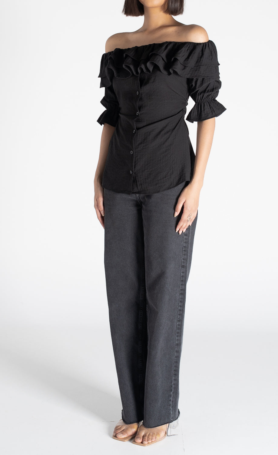 بلوزة مكشوفة الأكتاف ذات طبقات