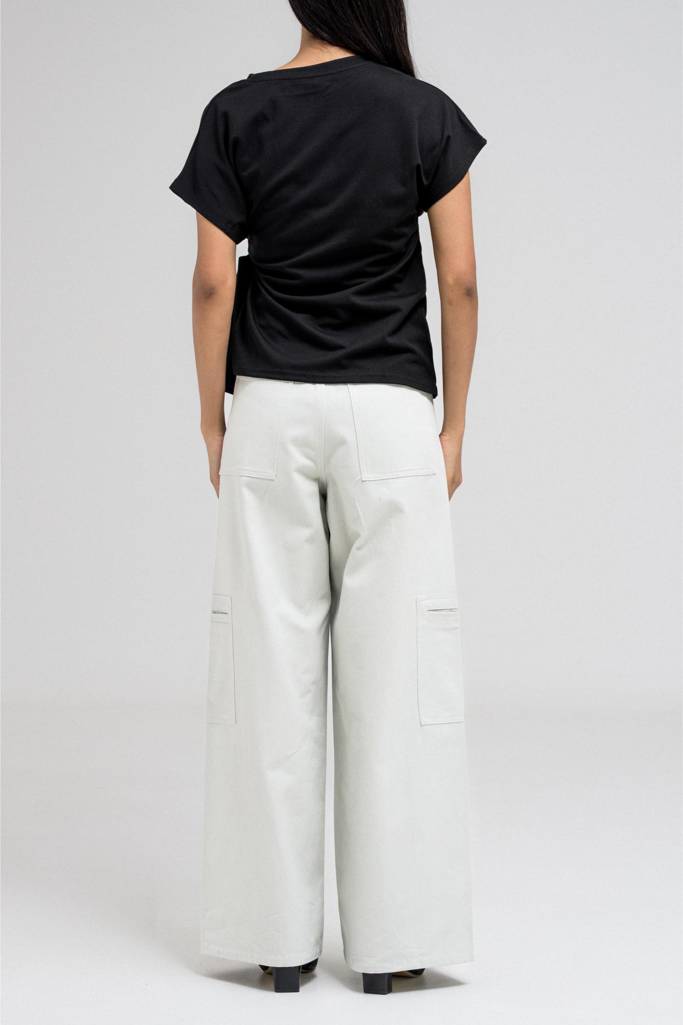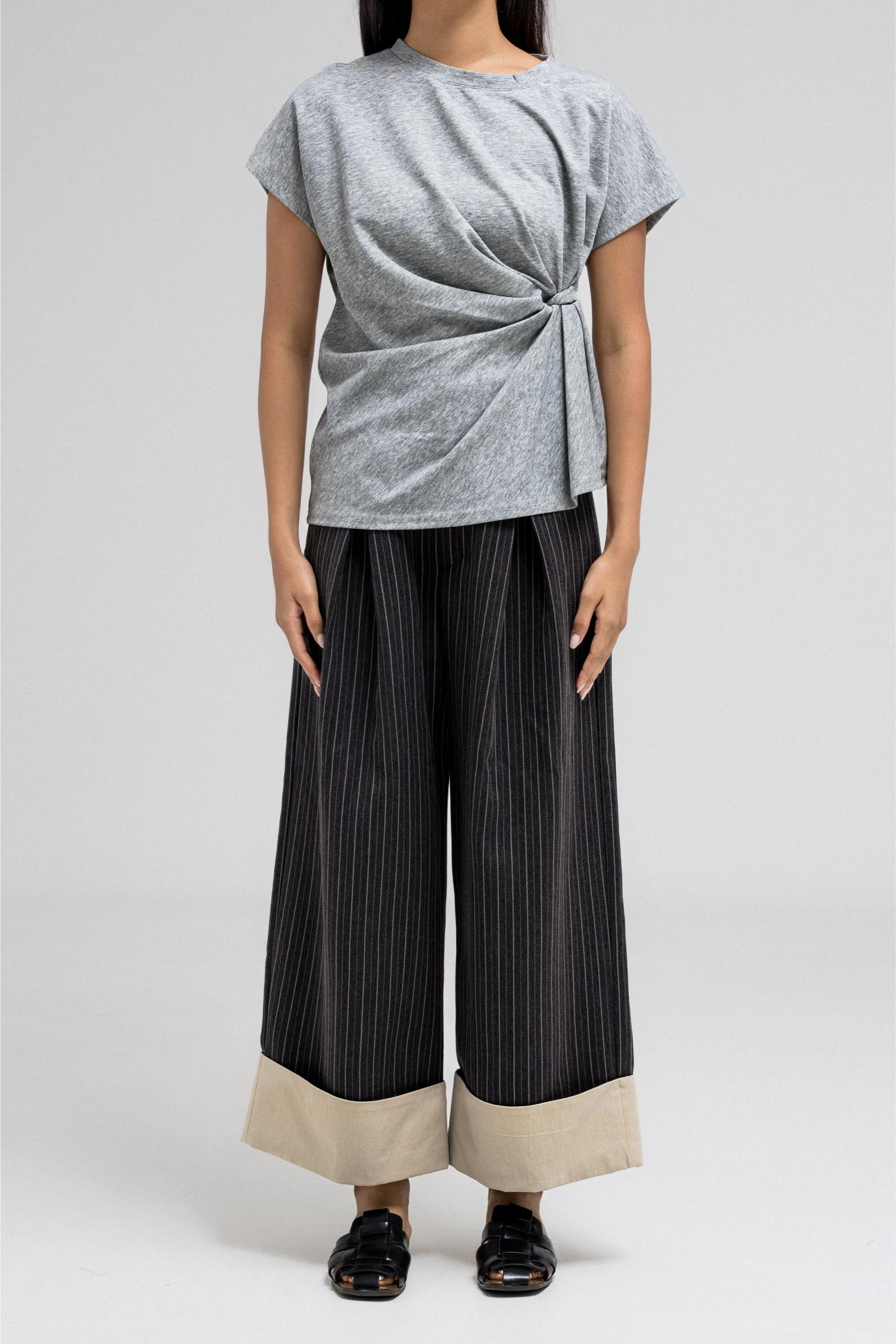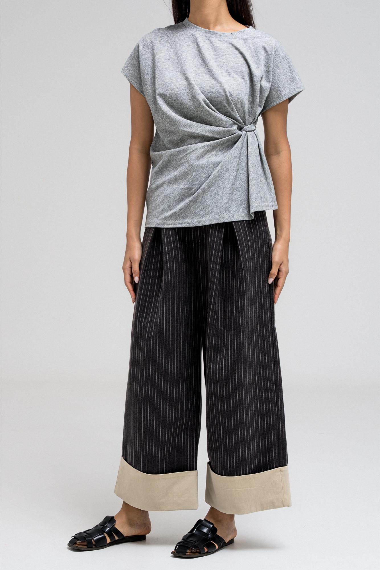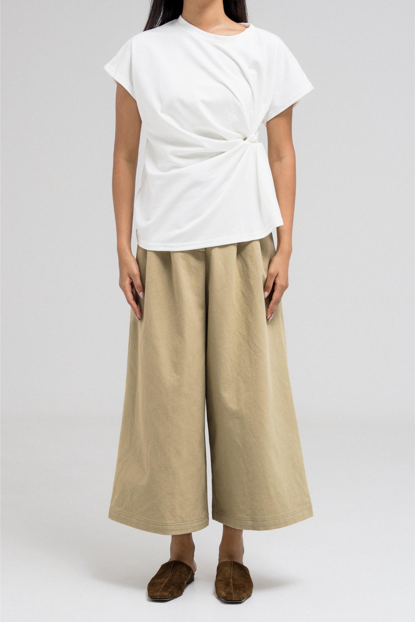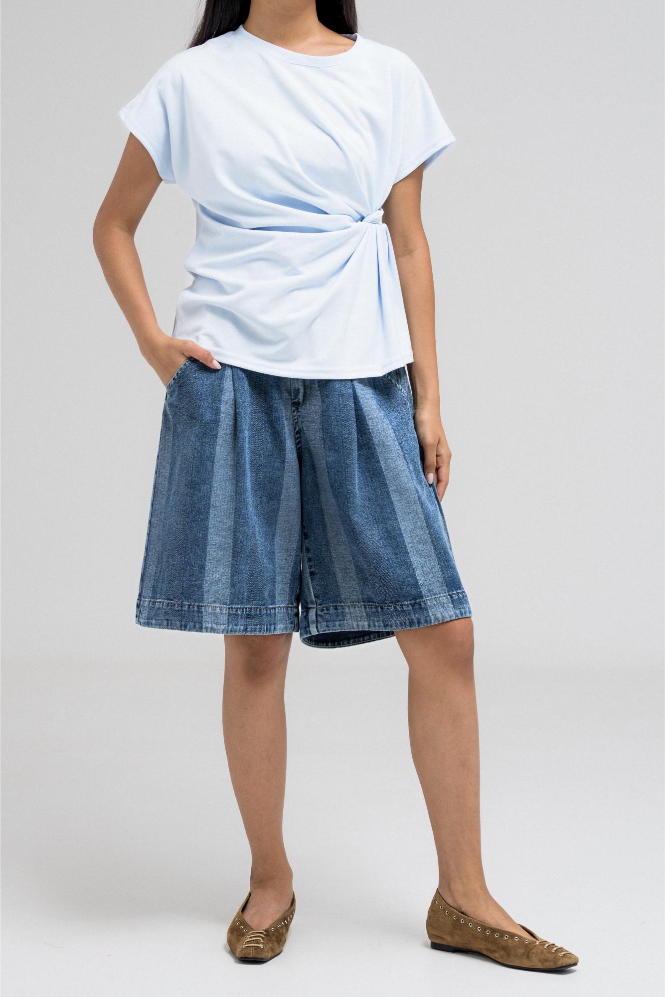 بلوزة بأكمام قصيرة بتصميم عقدة جانبية ناعمة تُضفي لمسةً أنيقةً ملفوفةً. مصنوعة من قماش خفيف الوزن وانسيابي.
