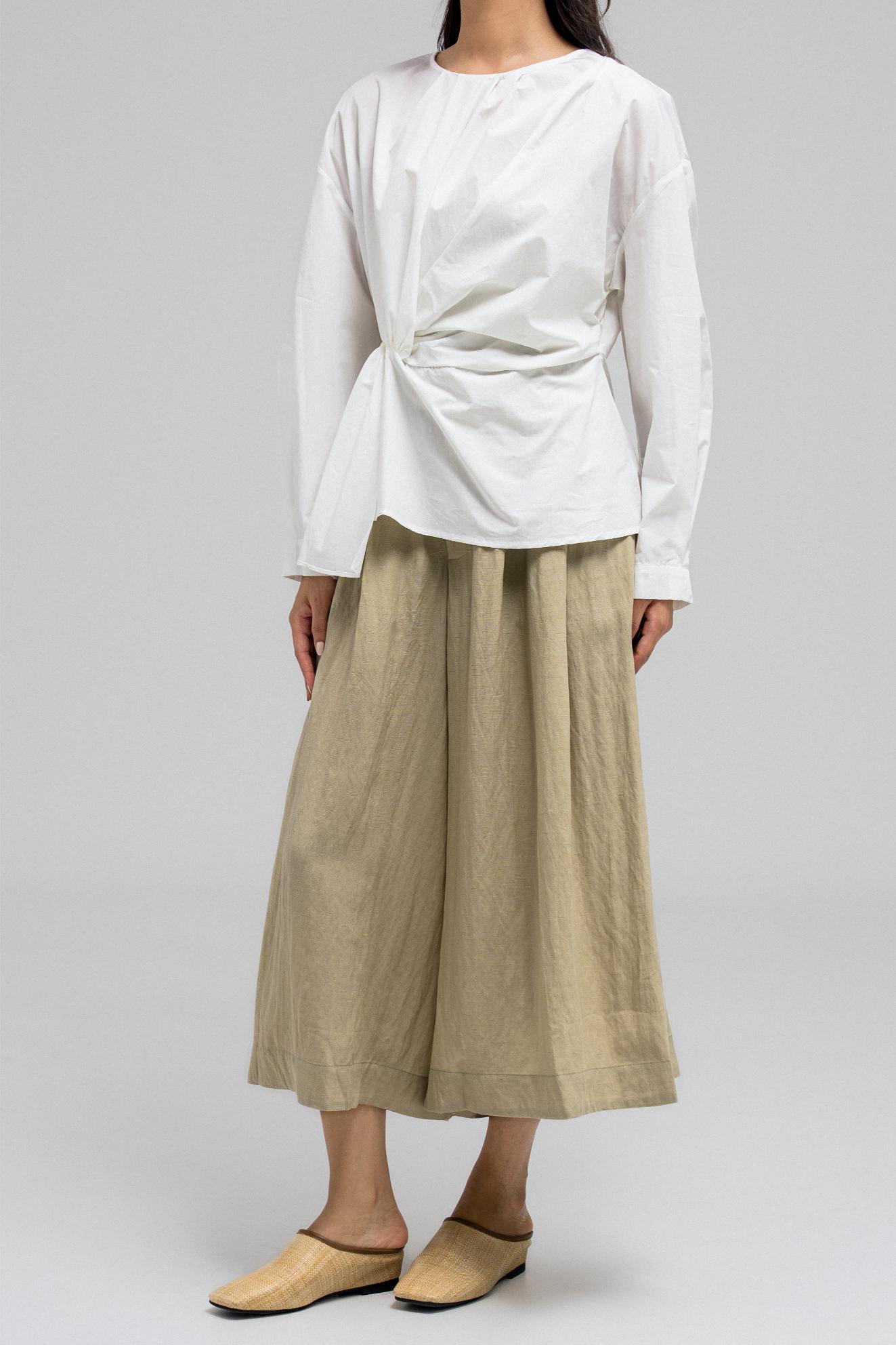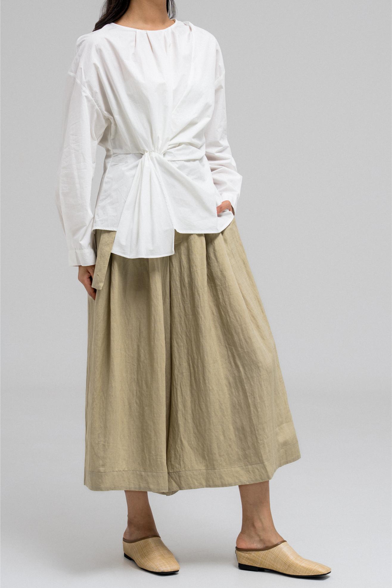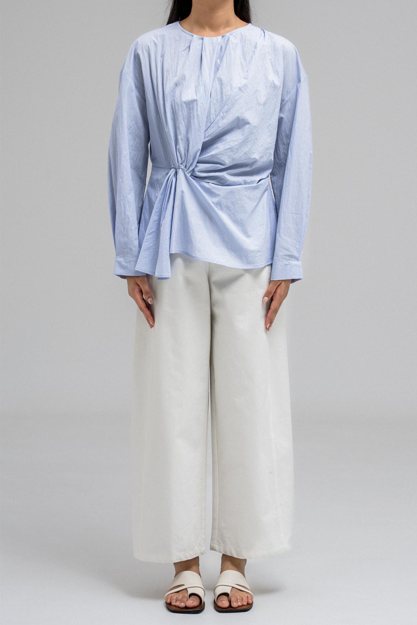 تتميز هذه البلوزة بياقة دائرية ناعمة وقماش خفيف الوزن يسمح بمرور الهواء، مثالية للطقس الدافئ. تفاصيل اللفة البارزة في الأمام تُضفي لمسةً أنيقةً على الخصر، مما يُضفي بُعدًا على التصميم. مزودة بسحاب خلفي لسهولة الارتداء وإطلالة أنيقة.