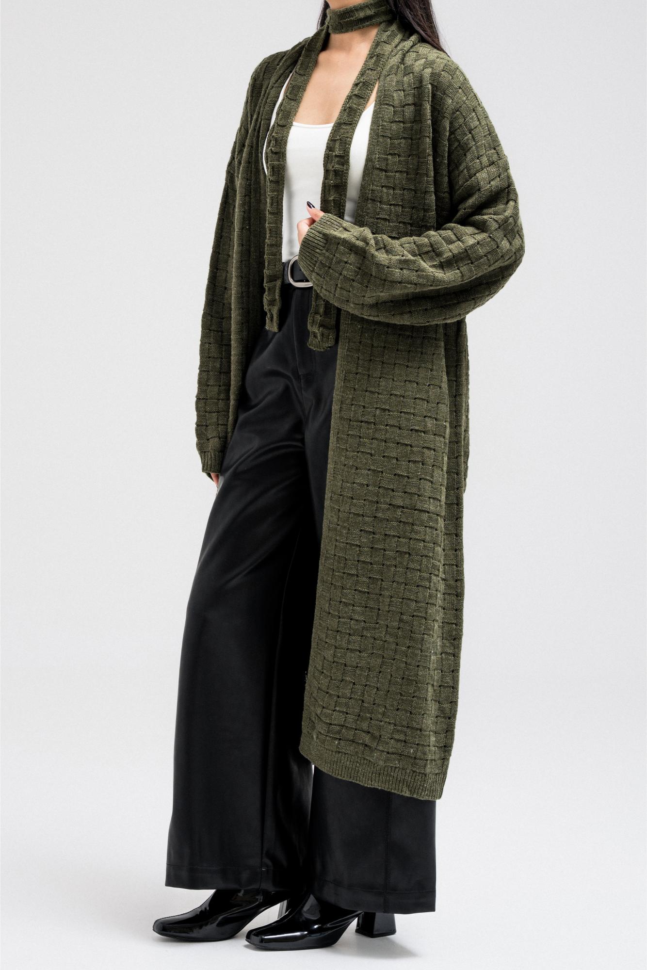 LONG TEXTURED CARDIGAN WITH MATCHING BELT
