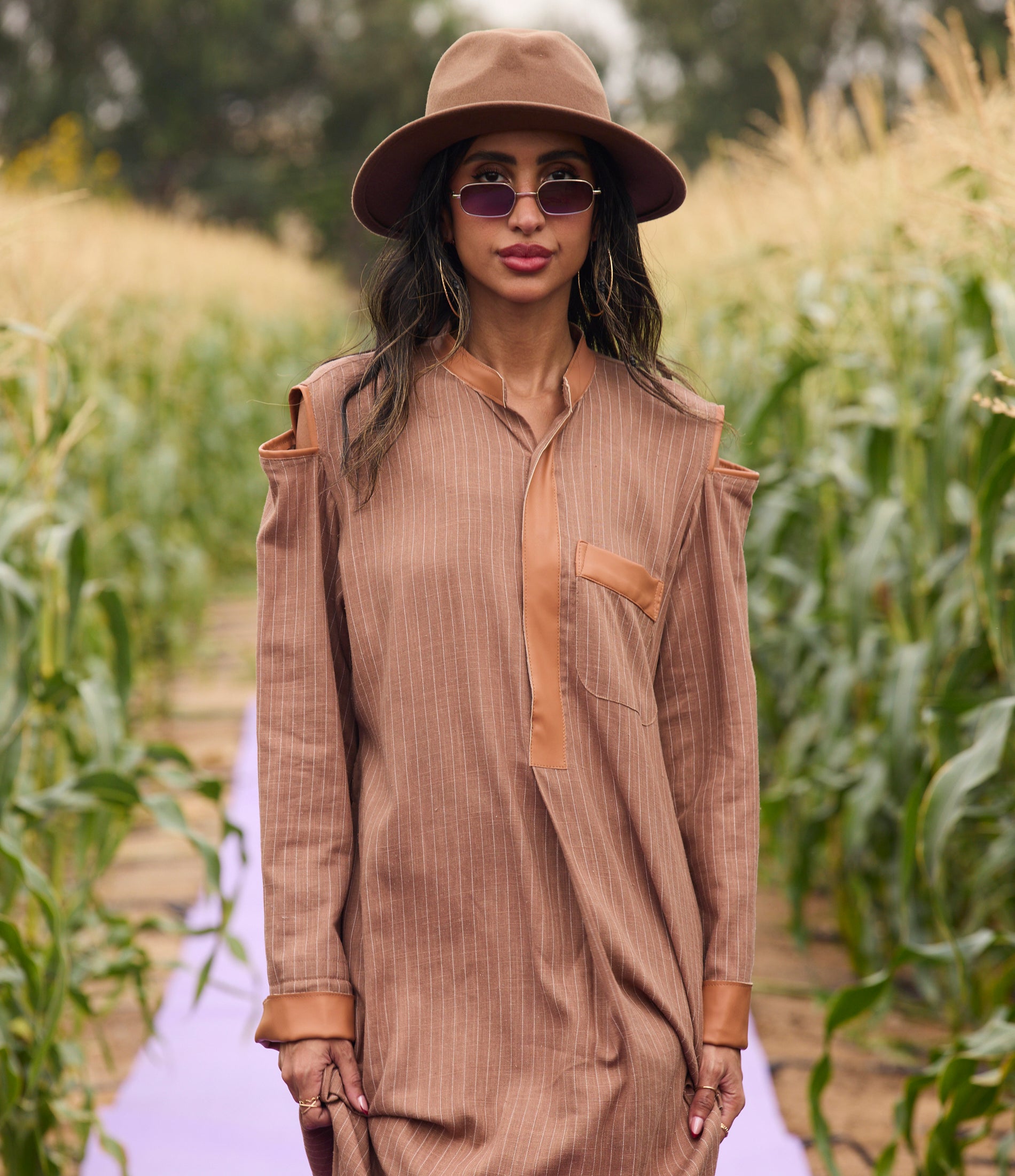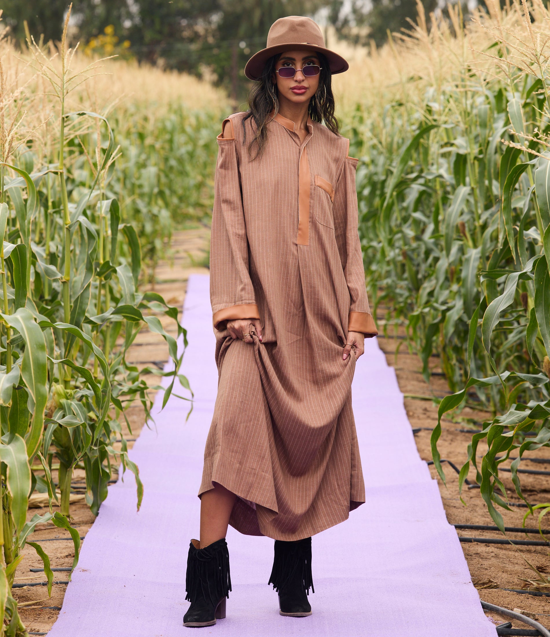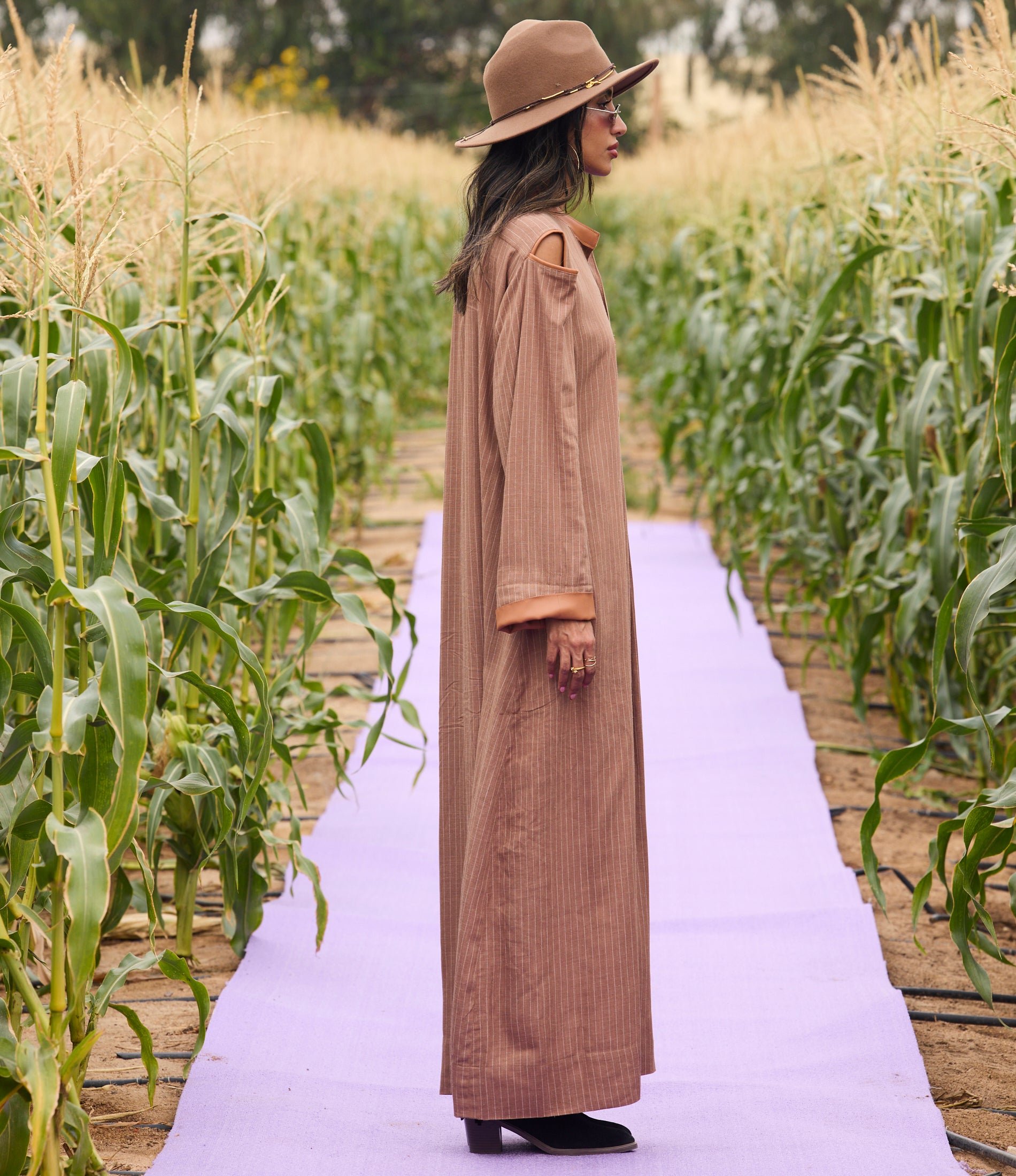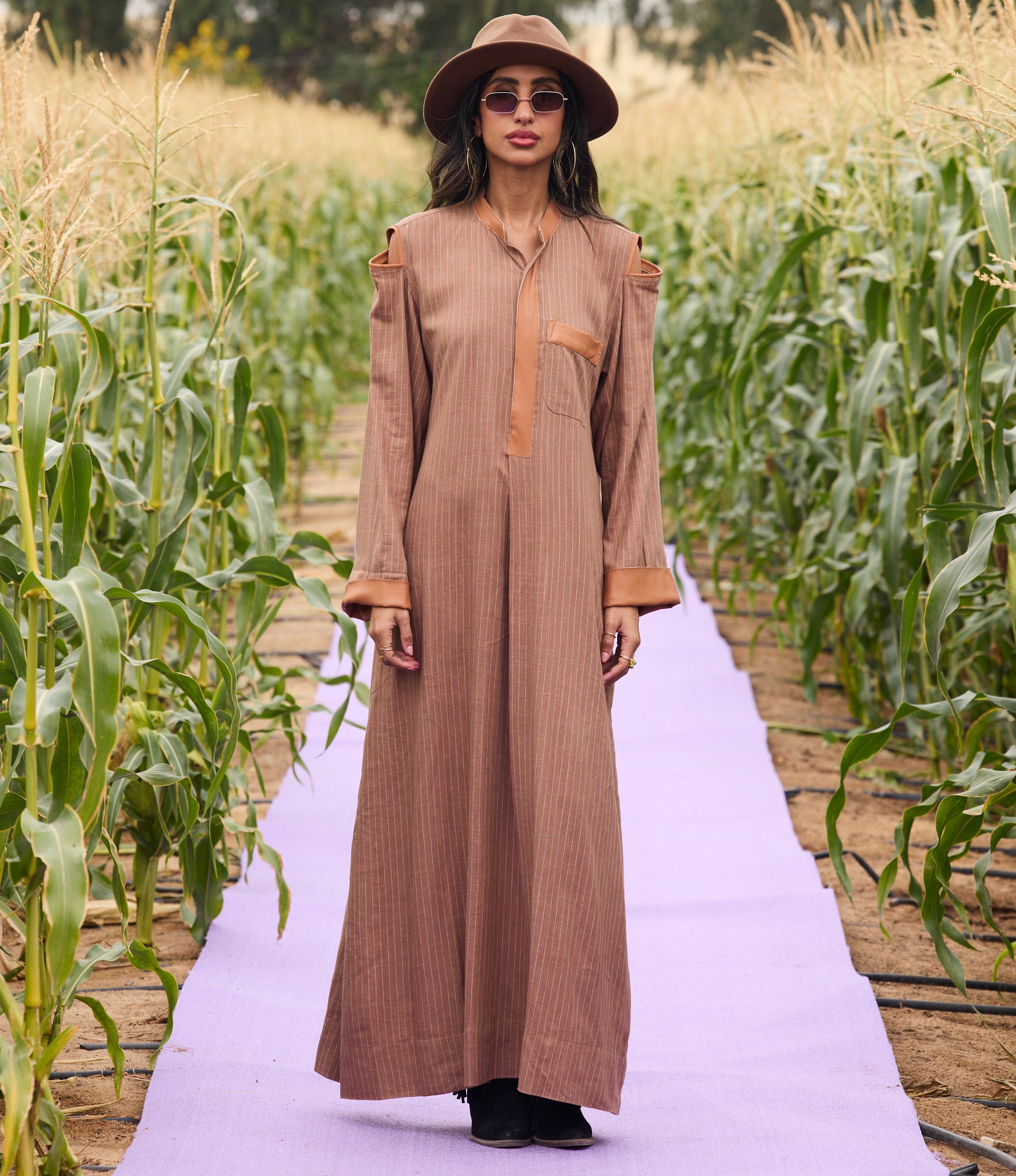 قفطان بإطلالة ديزداشا. كتف مفتوح. جيب رقعة. إغلاق بأزرار.