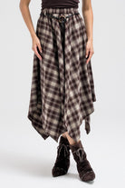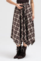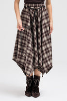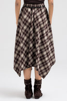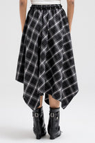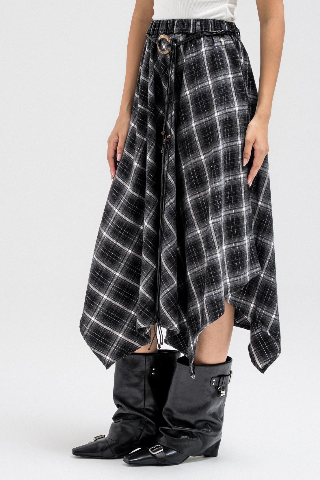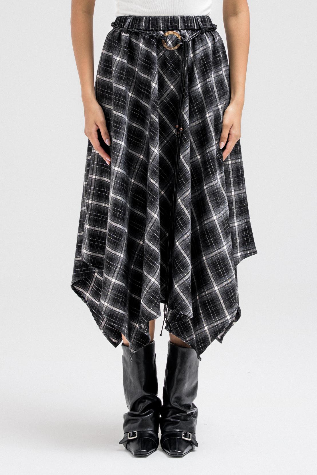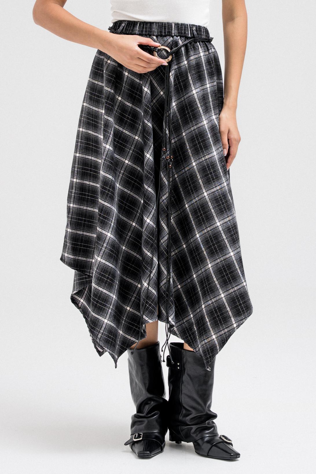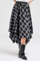 ASYMMETRIC CHECKERED FLOUNCE SKIRT