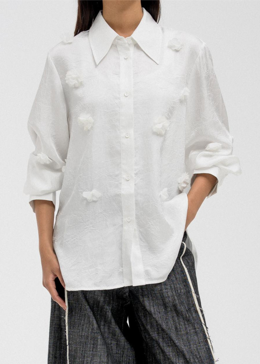 قميص ناعم بأزرار مع تفاصيل زهور ثلاثية الأبعاد