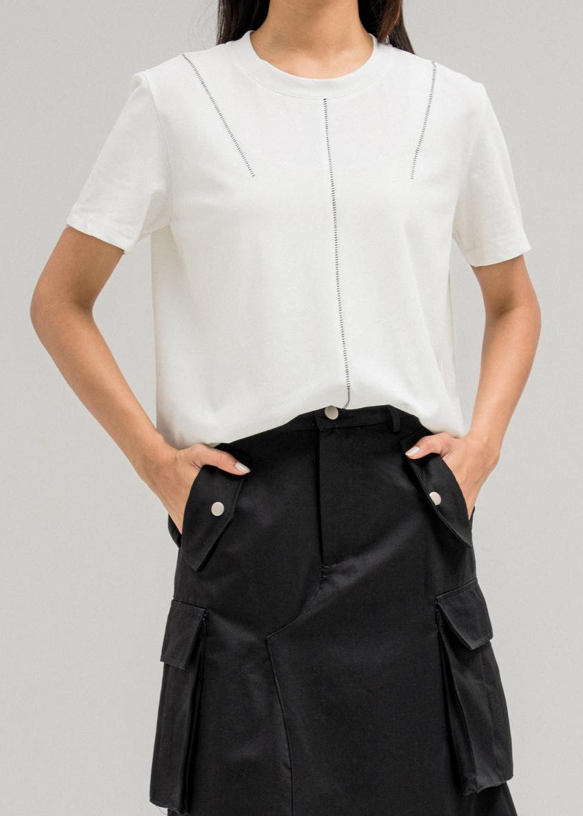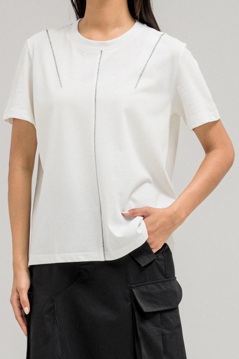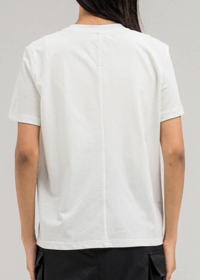 تيشيرت أساسي ناعم وخفيف الوزن، يتميز بياقة دائرية كلاسيكية لراحة وراحة فائقة. يتميز الجزء الأمامي بخياطة دقيقة. مثالي لإطلالات يومية مريحة، يمكن تنسيقه مع الجينز لإطلالة كاجوال أو طيّه داخل التنانير.