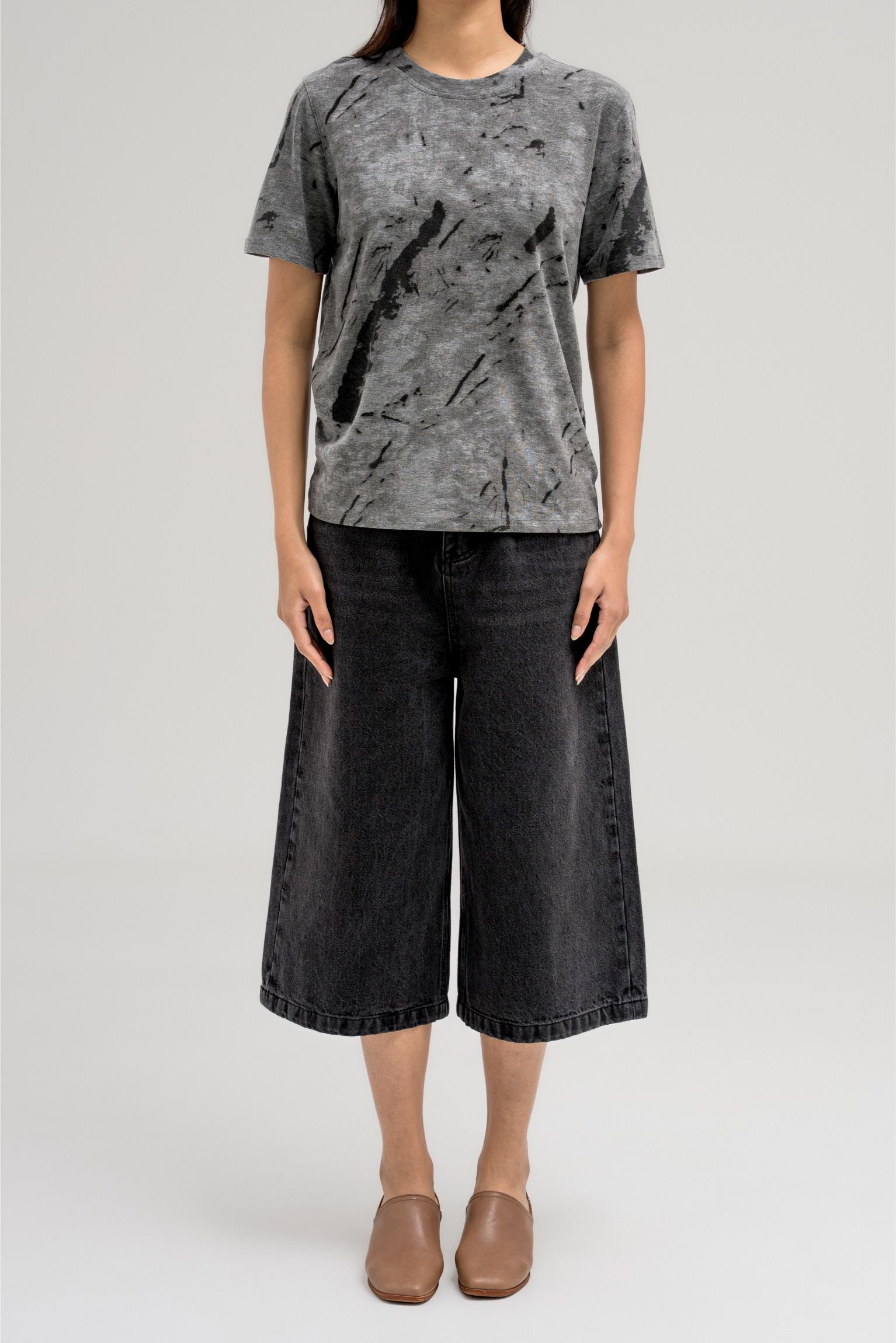 تي شيرت رمادي مزين ببقع