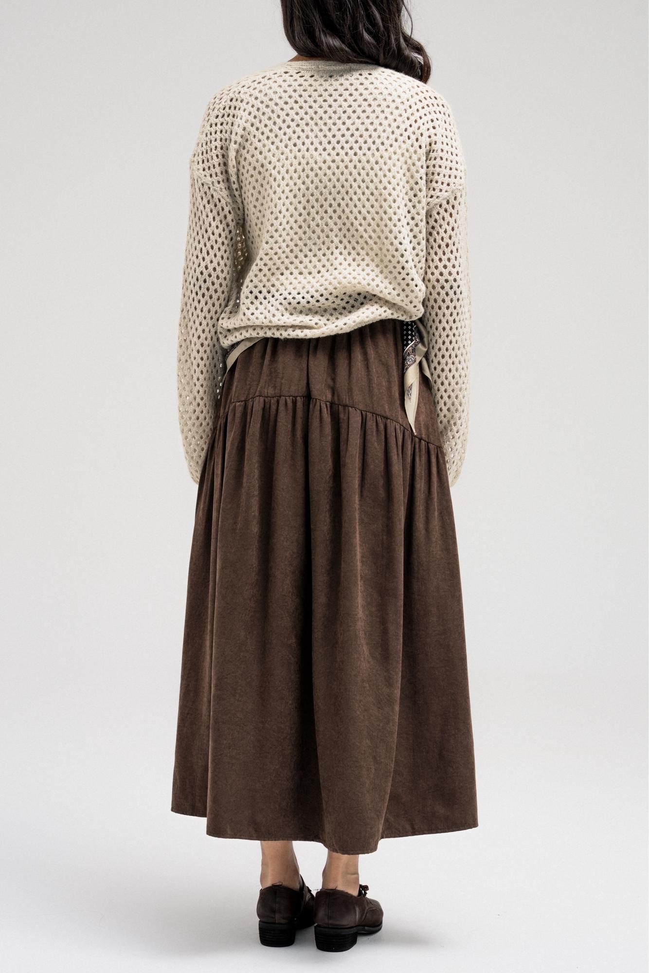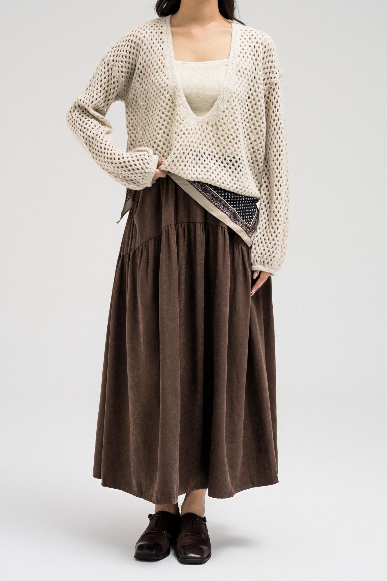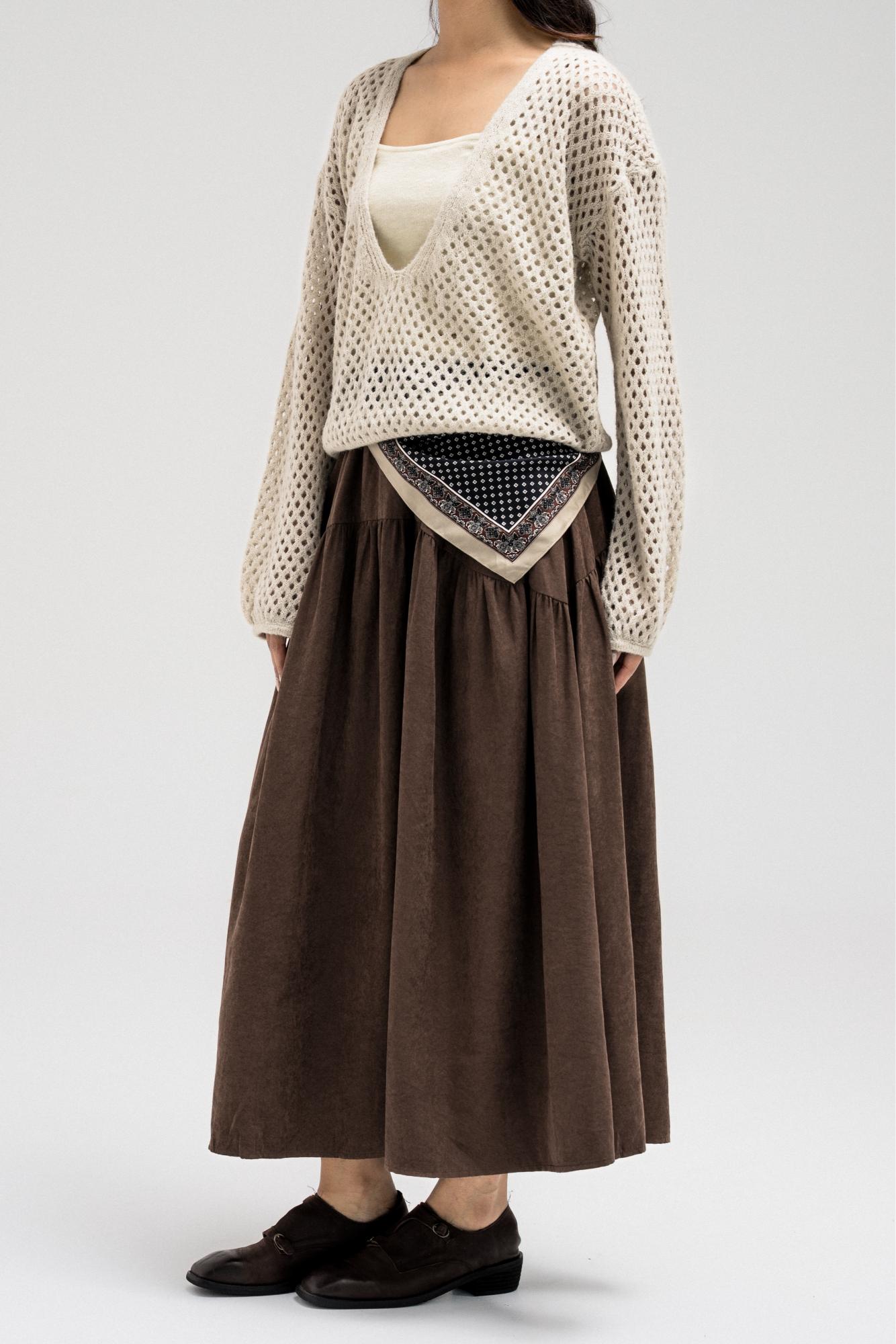 بلوزة محبوكة خفيفة الوزن، مصممة بفتحة رقبة على شكل حرف V منخفضة ونسيج شفاف مفتوح. تأتي مع بلوزة داخلية محبوكة مطابقة لارتدائها فوق بعضها. قطعة متعددة الاستخدامات تجمع بين الراحة العملية والإطلالة الأنيقة والخفيفة.