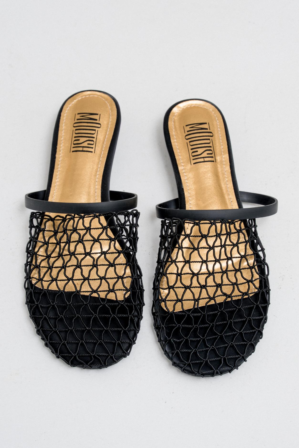 Flats feature a modern open mesh net design that wraps the foot with a stylish, breathable texture.