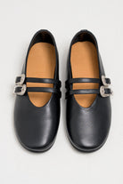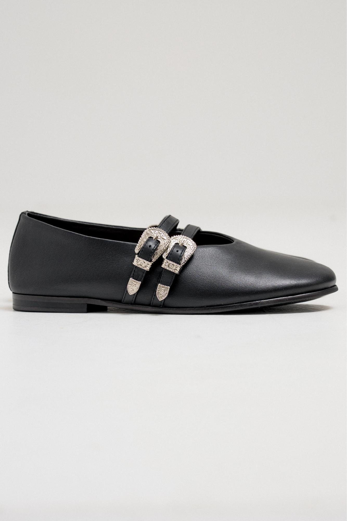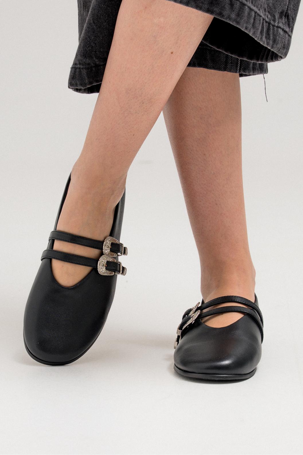 DOUBLE BUCKLE SLIP-ON FLATS These stylish flats feature a sleek double-buckle design that adds a bold yet minimal touch to the classic slip-on silhouette. Easy to wear and effortless to style, they slip on comfortably while offering a secure feel.