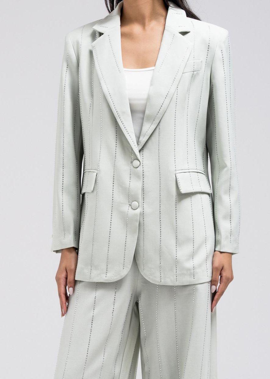 STRIPE RHINESTONE TAILORED BLAZER