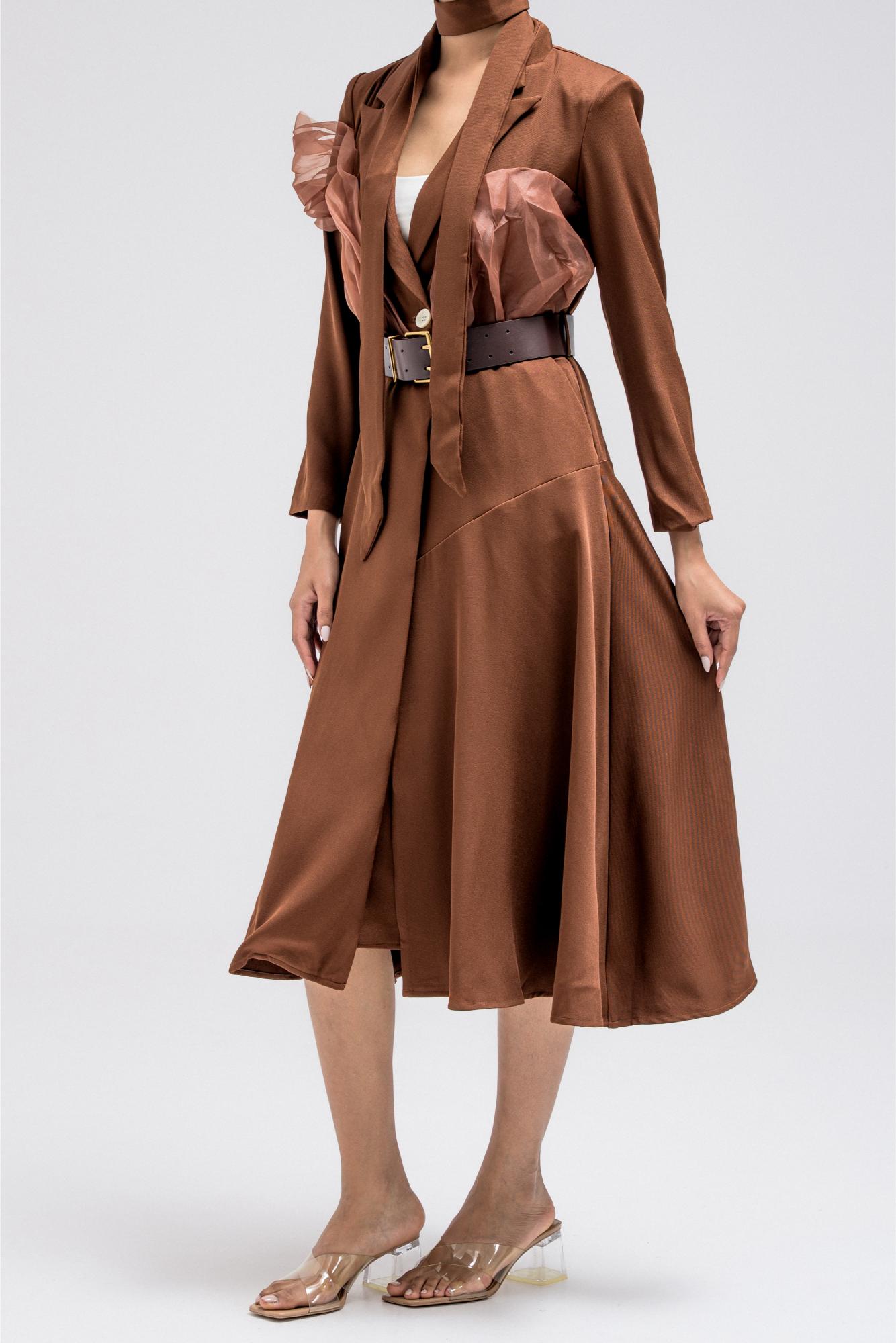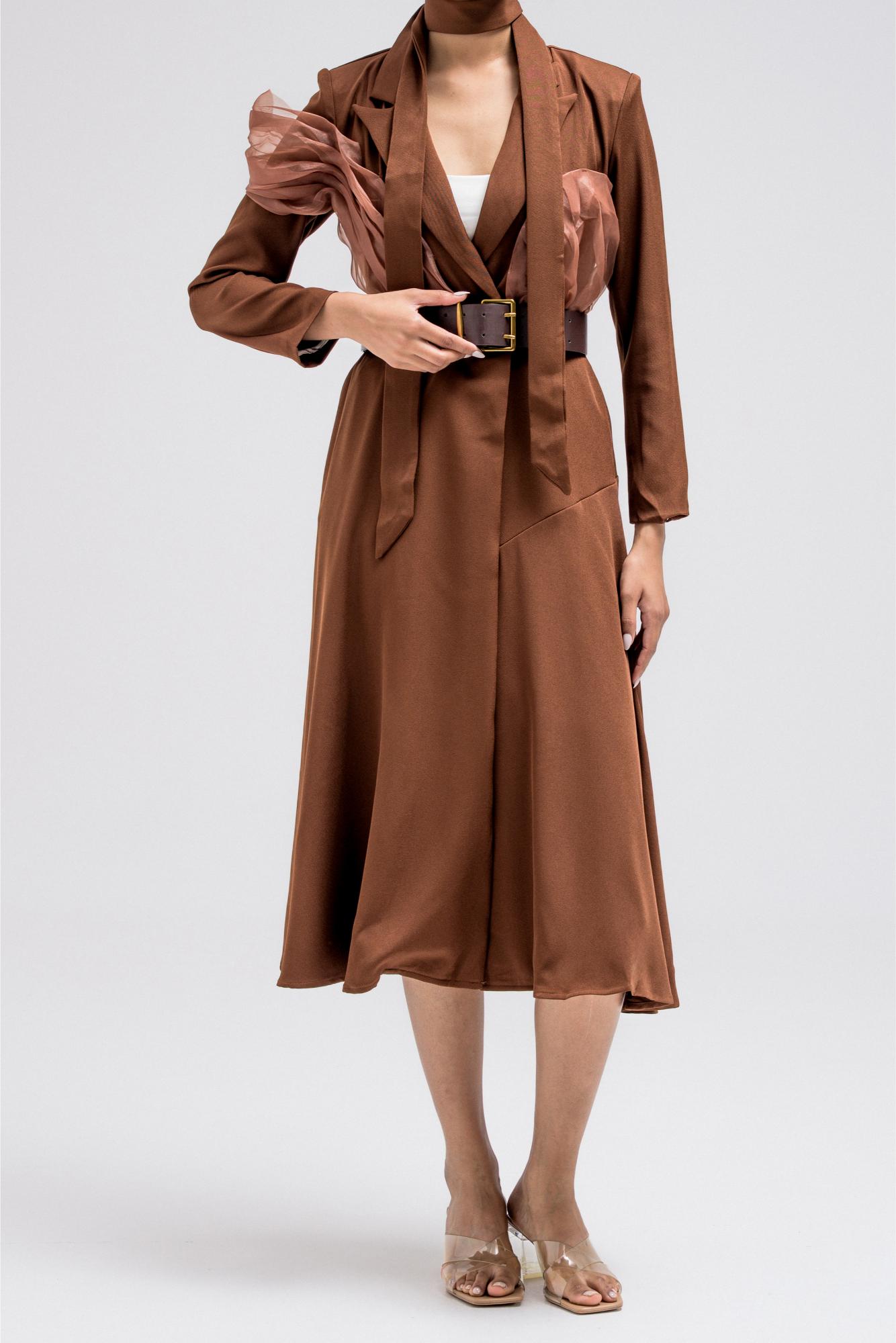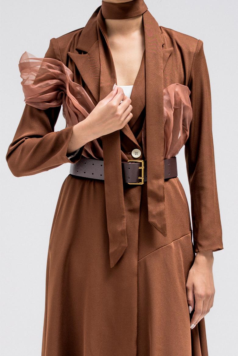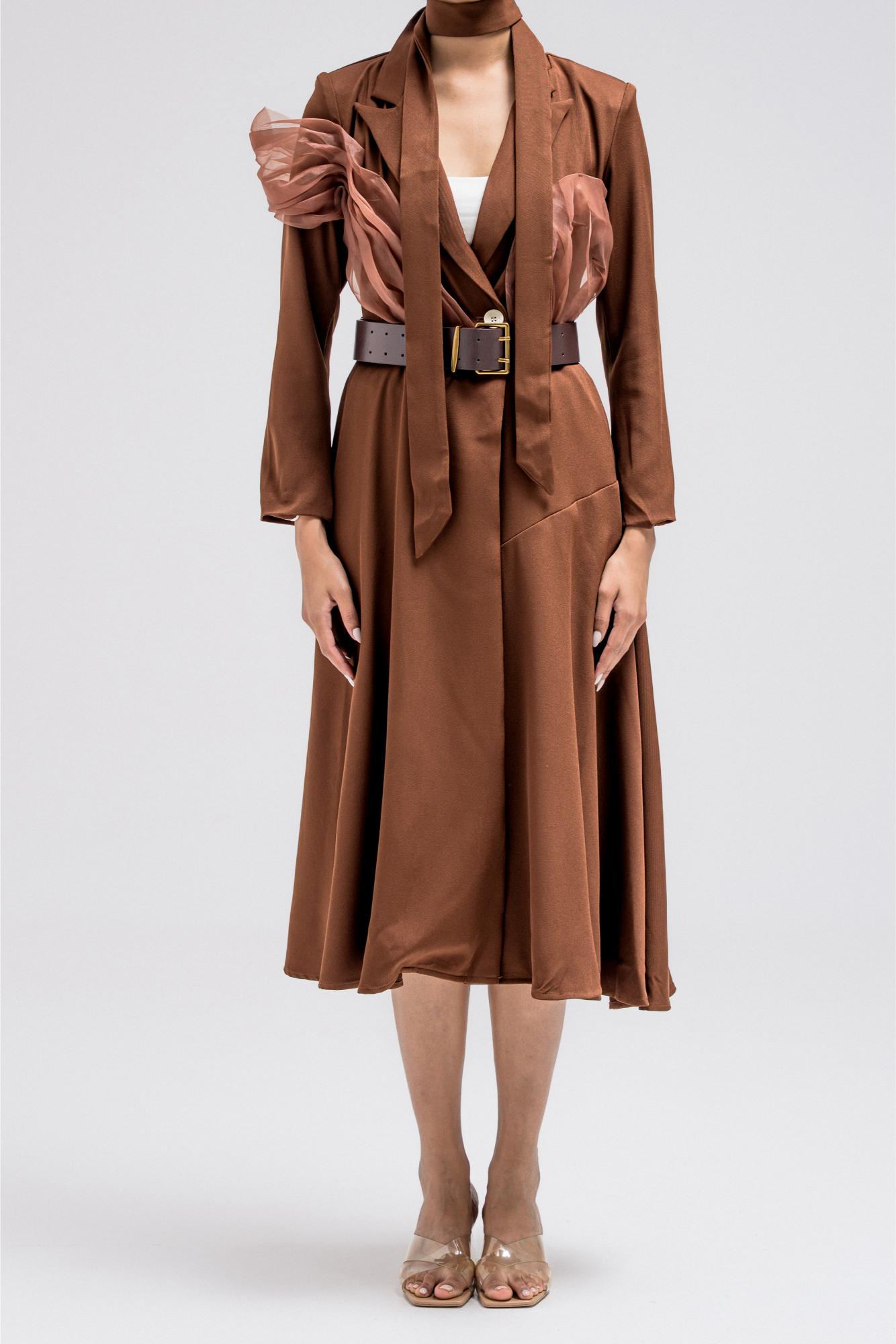 BUTTON-DOWN LONG DRESS COAT WITH BELT