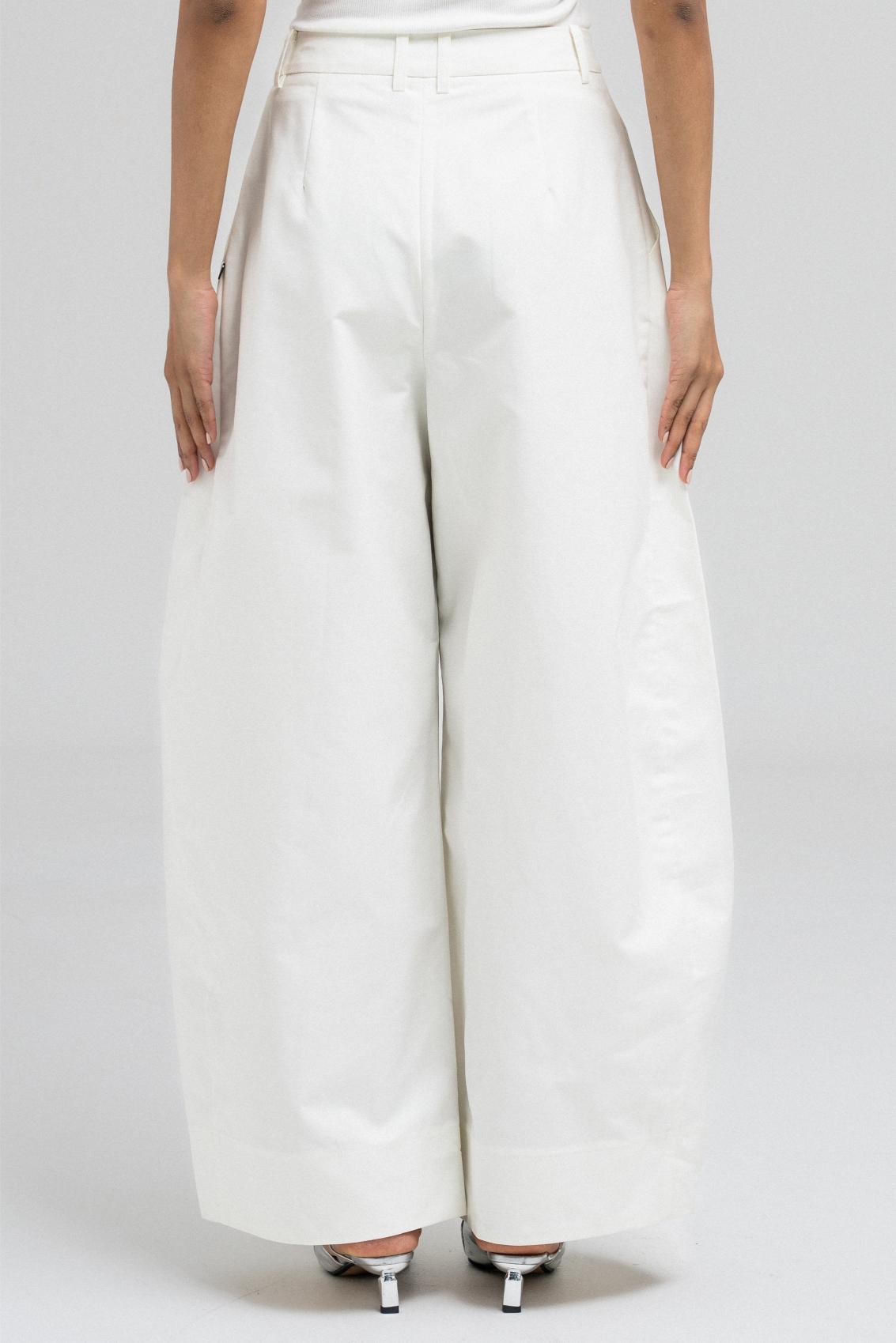 Barrel-style pants featuring a hidden front metal clasp closure, a zipper and side pockets for functionality. Perfect to pair with the matching structured vest for a minimal look.