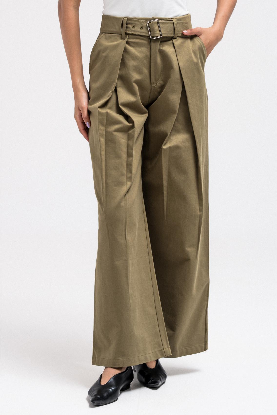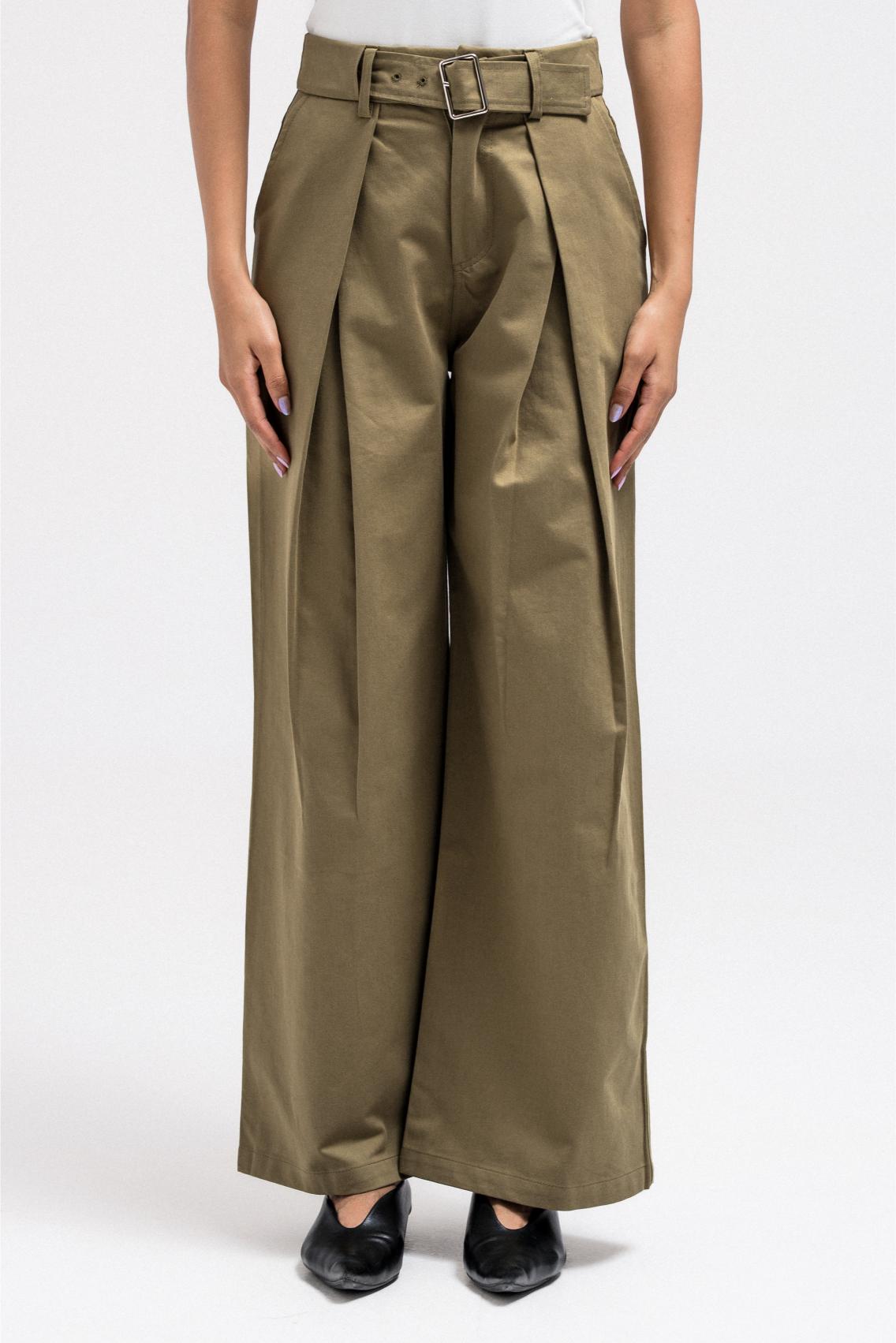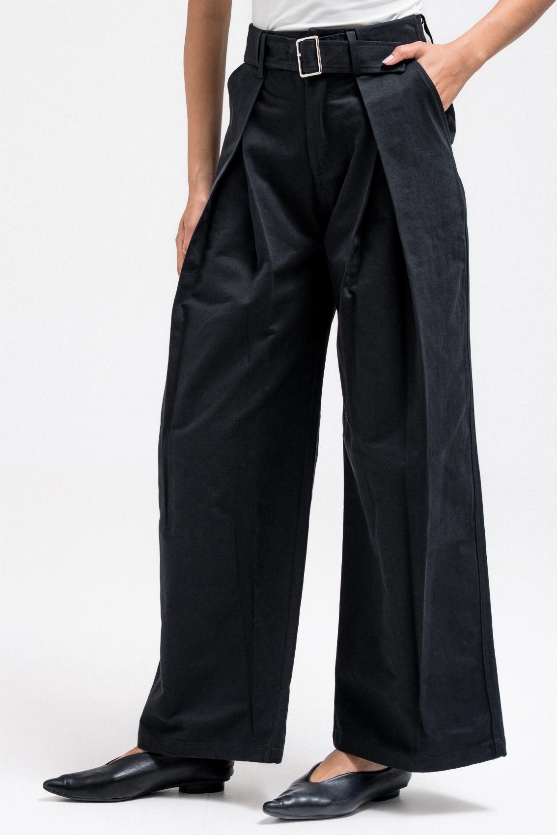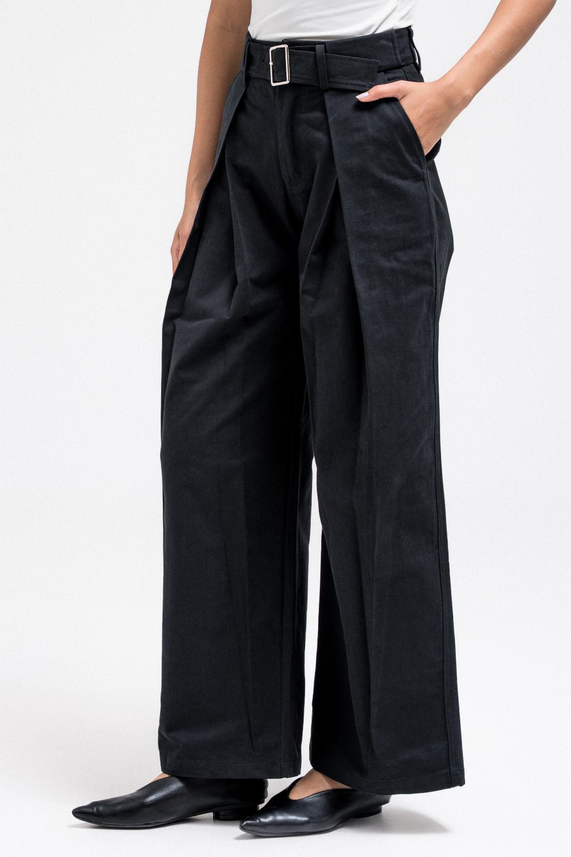 TAILORED BUCKLE-BELT WIDE-LEG PANTS