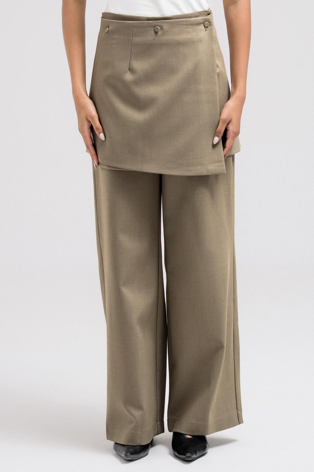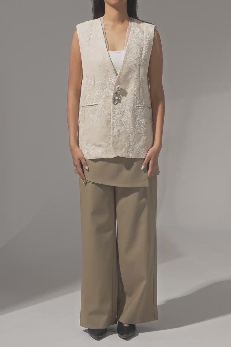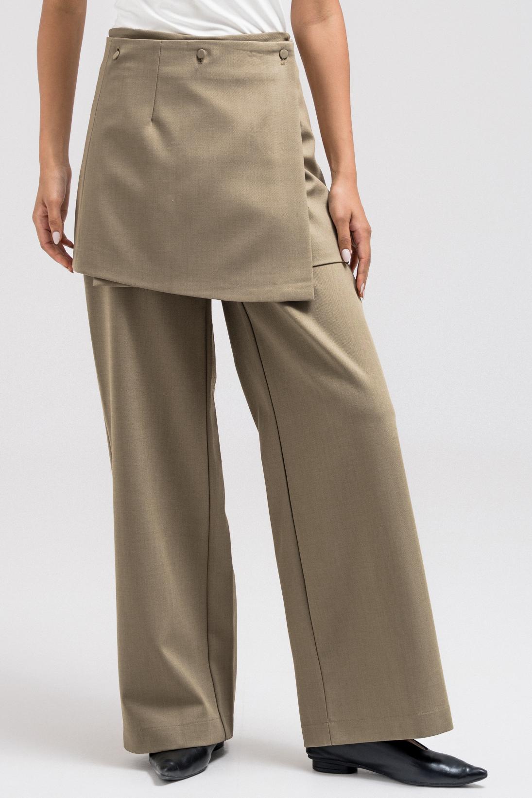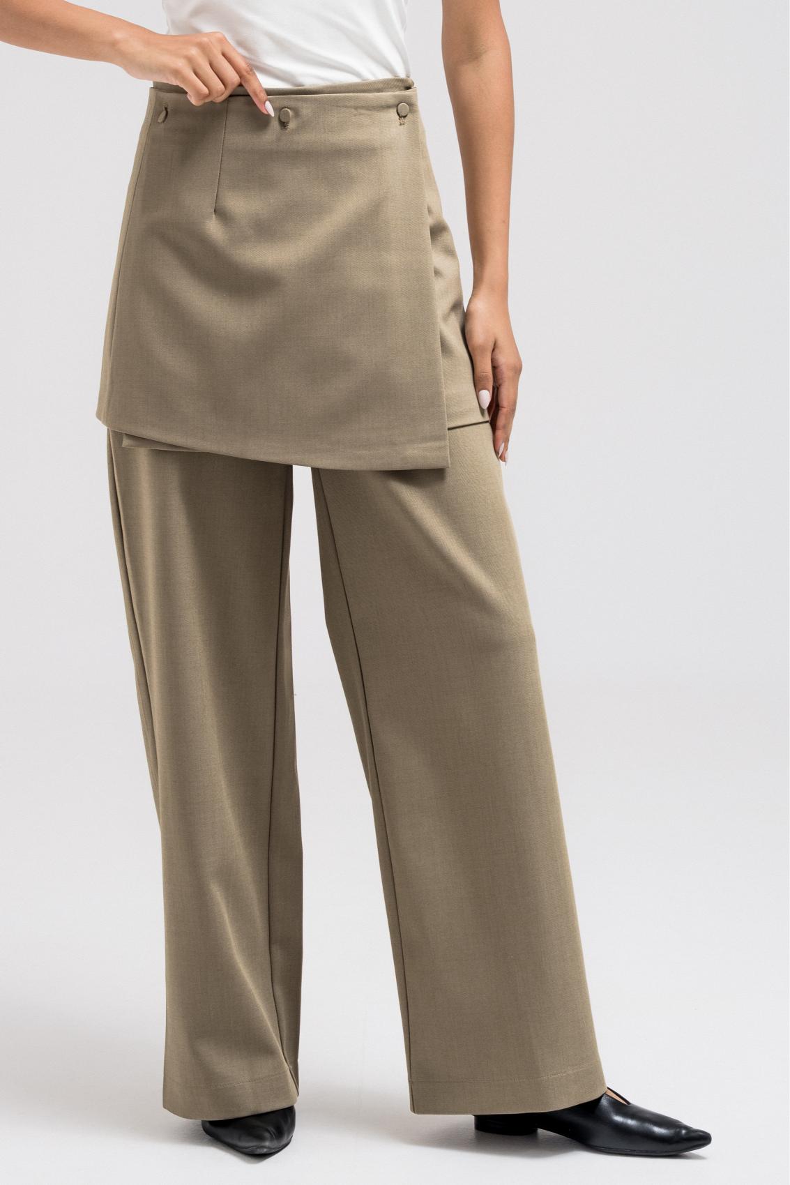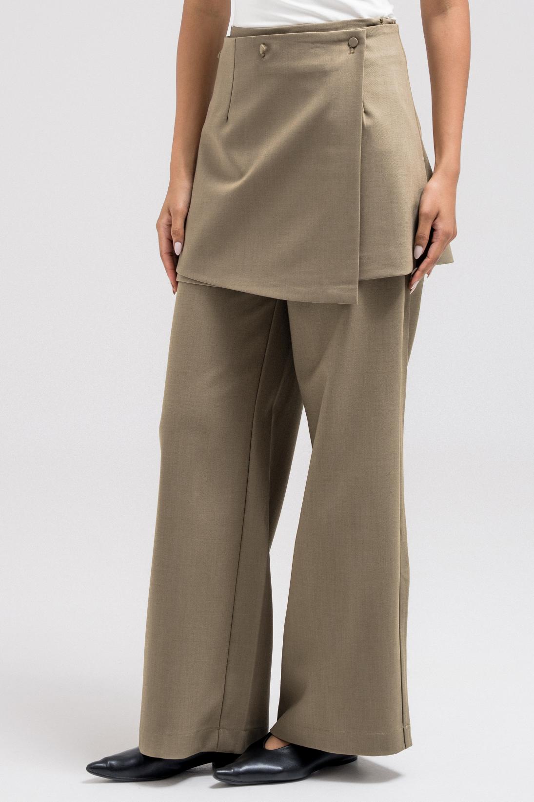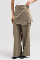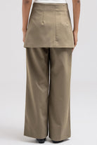 These tailored pants feature a clean, straight-leg silhouette elevated with a removable wrap skirt layer for versatile styling. The wrap attaches at the back with discreet button hoops, allowing you to wear the pants on their own for a minimal look or layered for added structure and dimension.