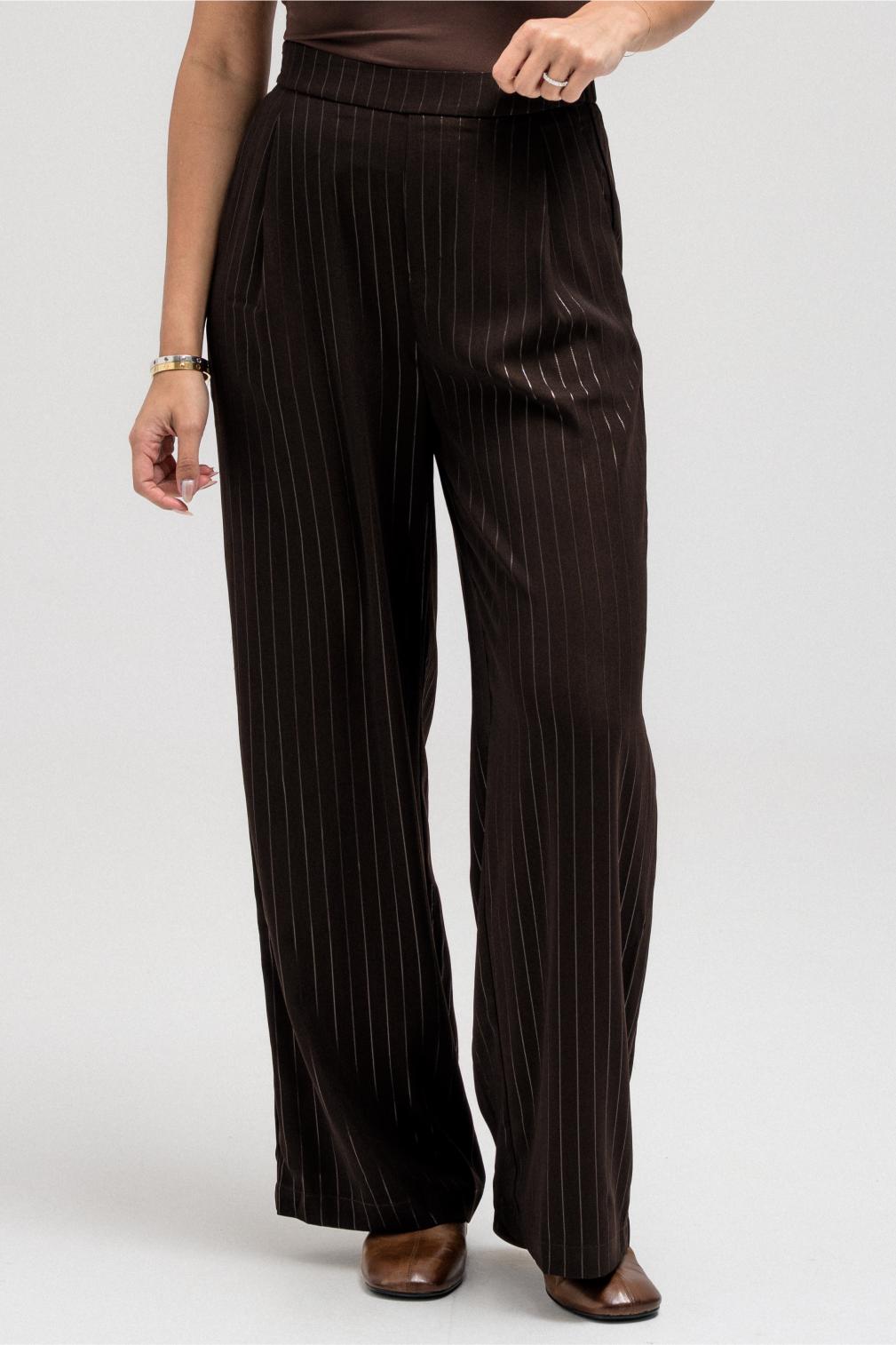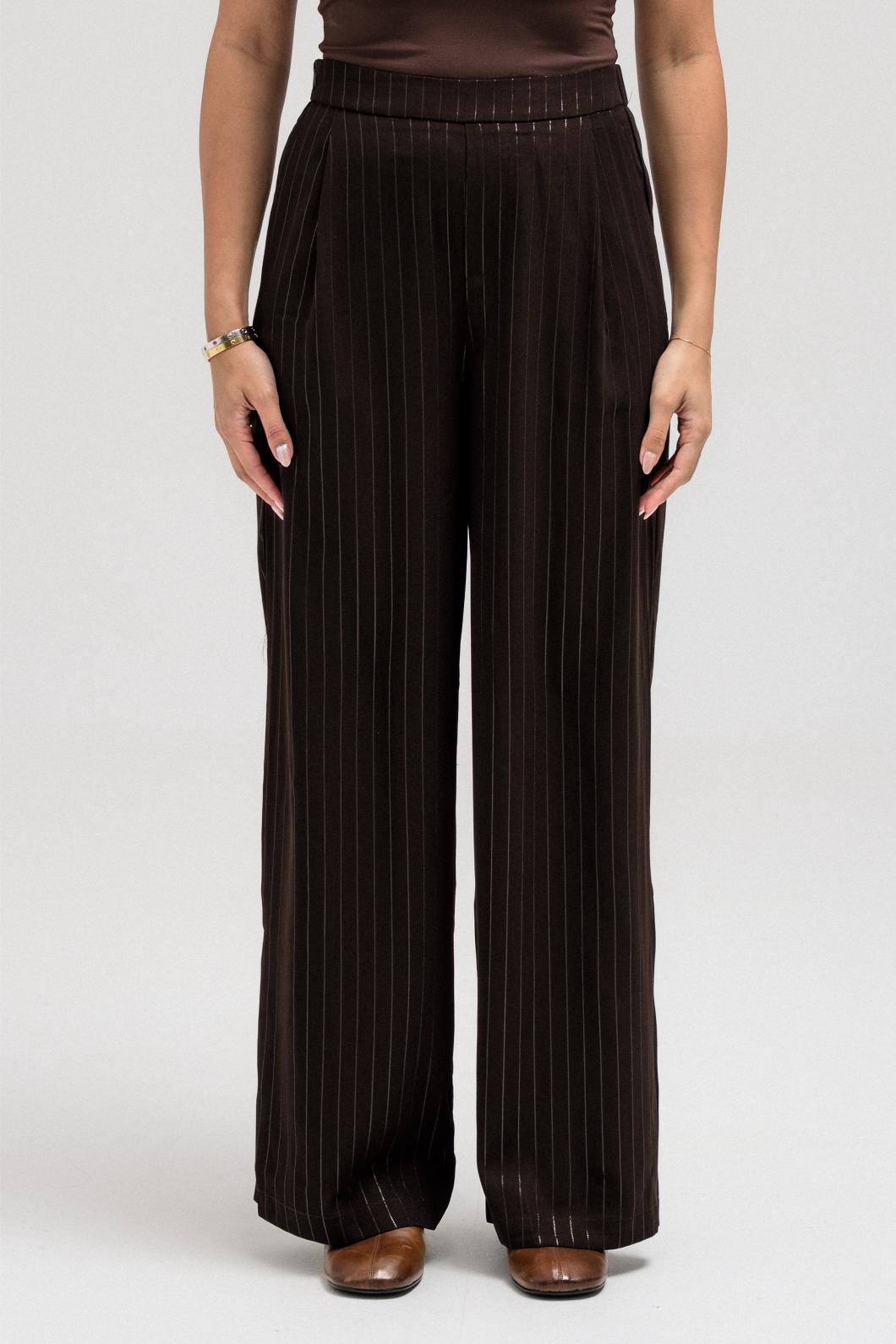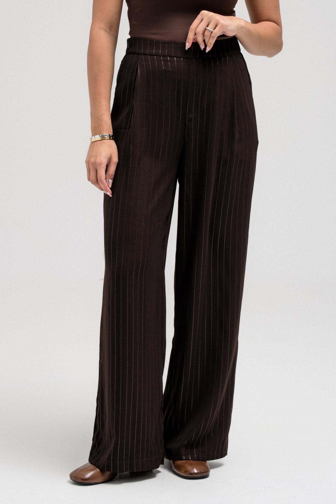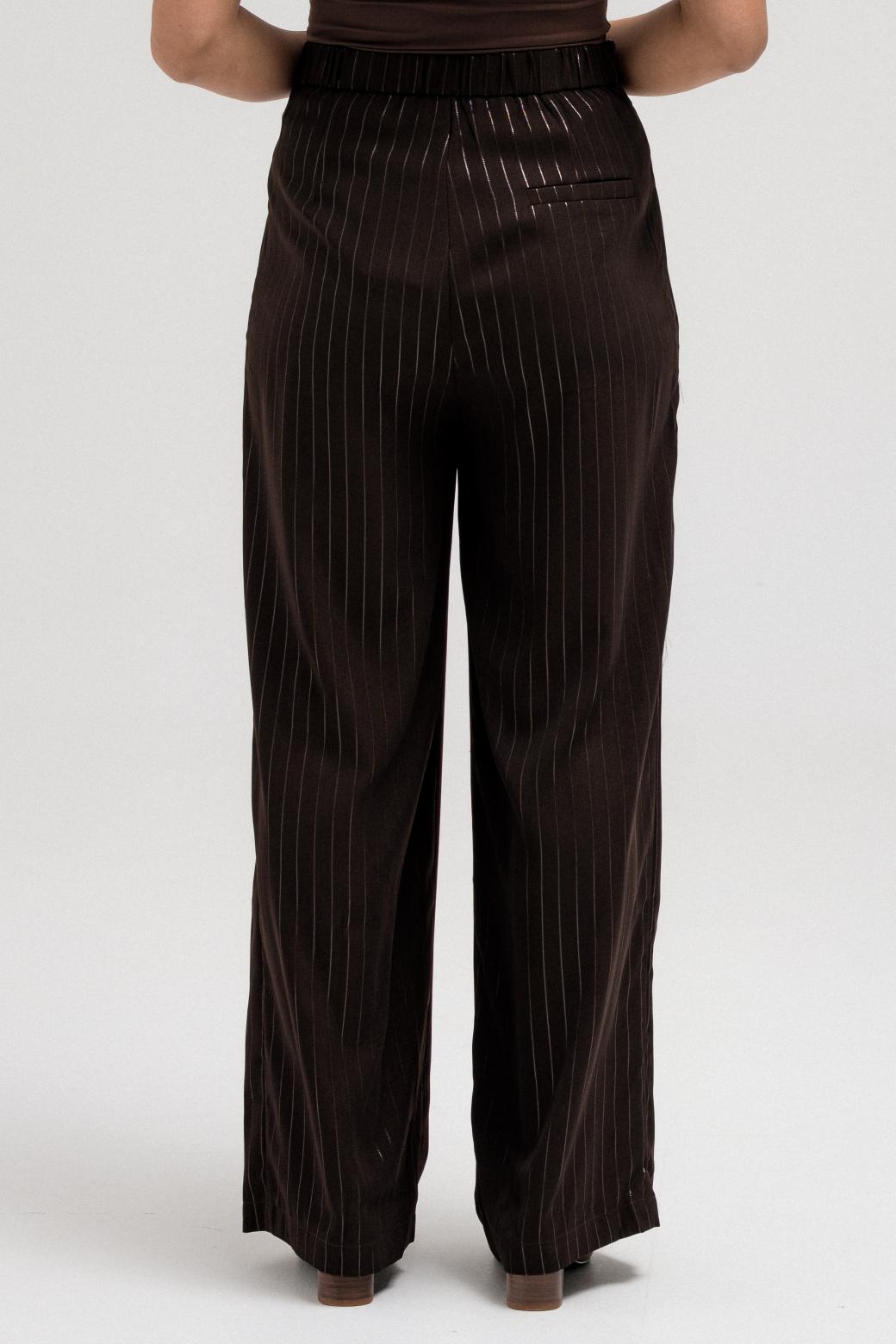 These striped pants are designed with comfort and style in mind. Featuring an elastic waistband at the back for an easy fit, a side zipper closure, and functional side pockets, they balance structure with wearability. The relaxed silhouette complements the cropped jacket perfectly, making them ideal to wear together for a complete, cohesive set.