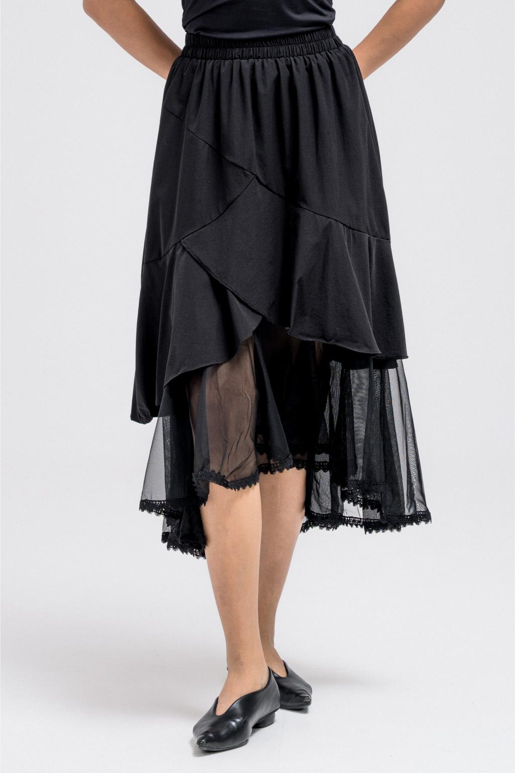 SHEER PANEL FLOWY SKIRT