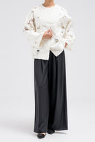 Long-sleeved jacket. Mix fabric of semi-sheer mesh panels. Front button-click closure.