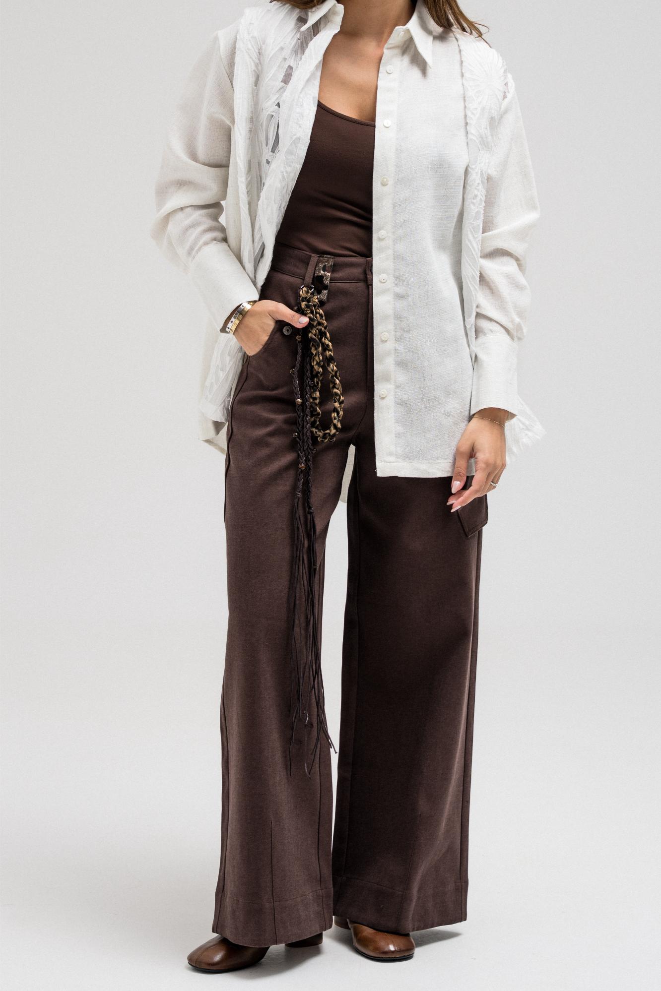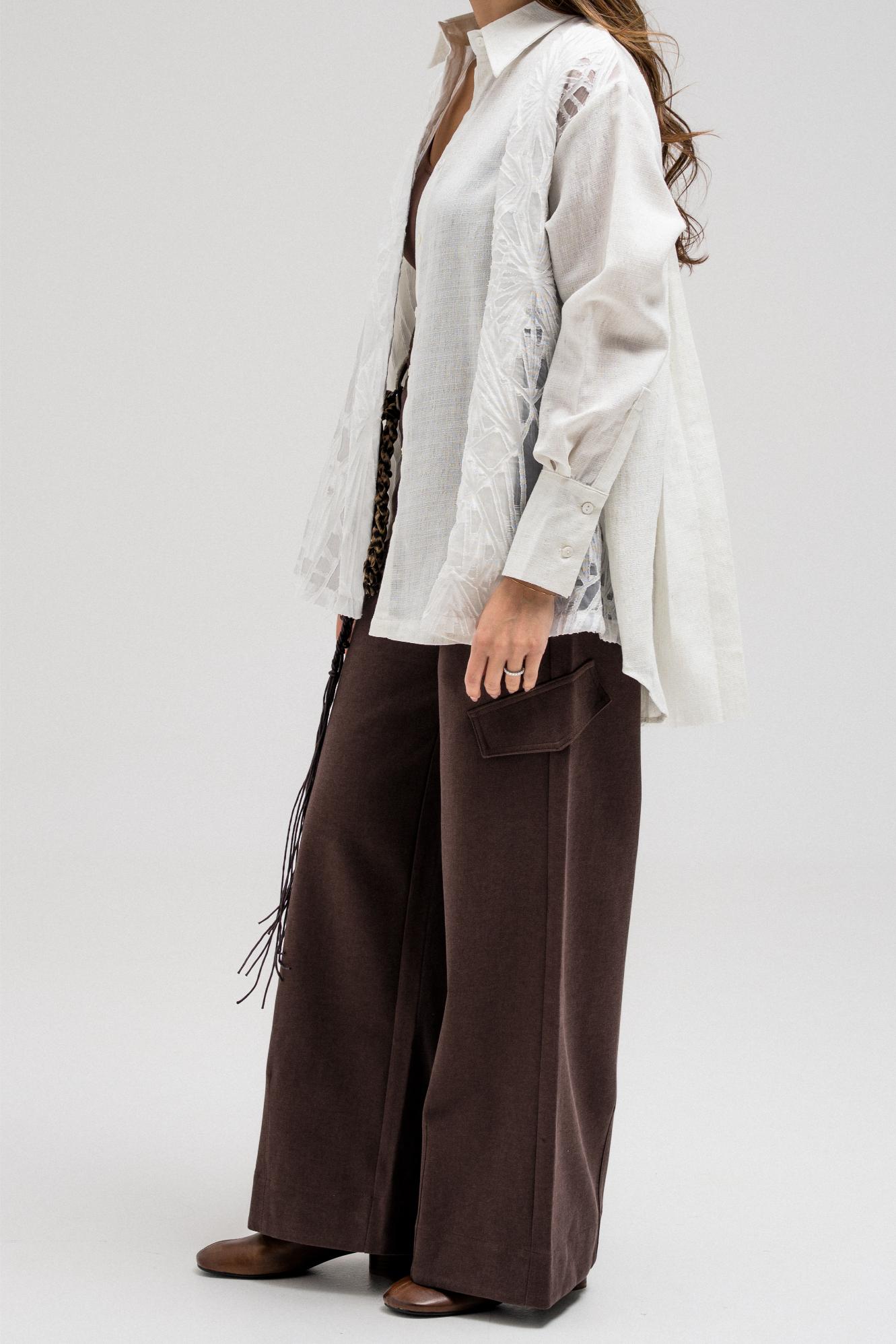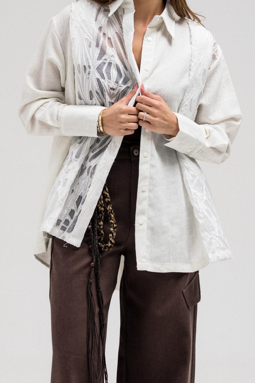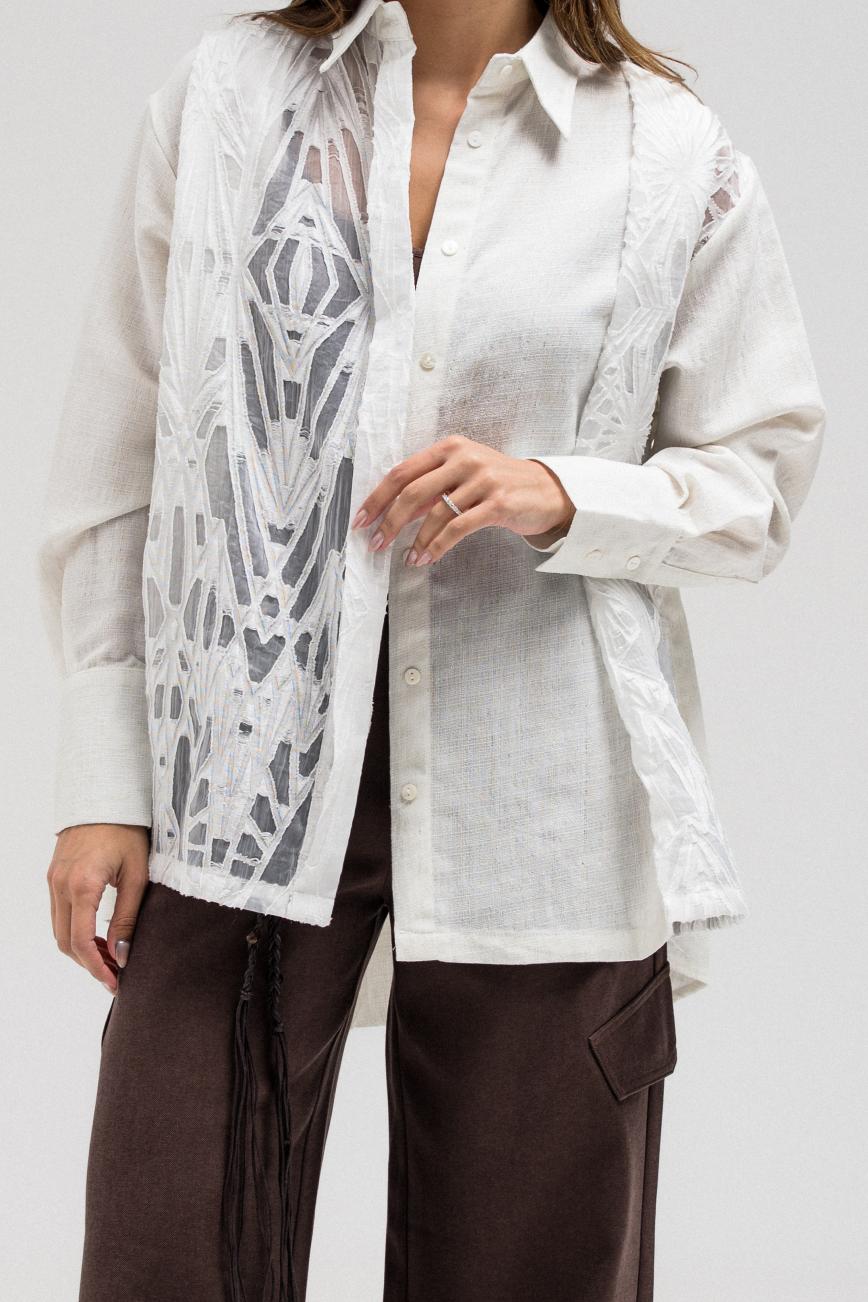 SEMI-SHEER EMBROIDERED SHIRT WITH PLEATED BACK