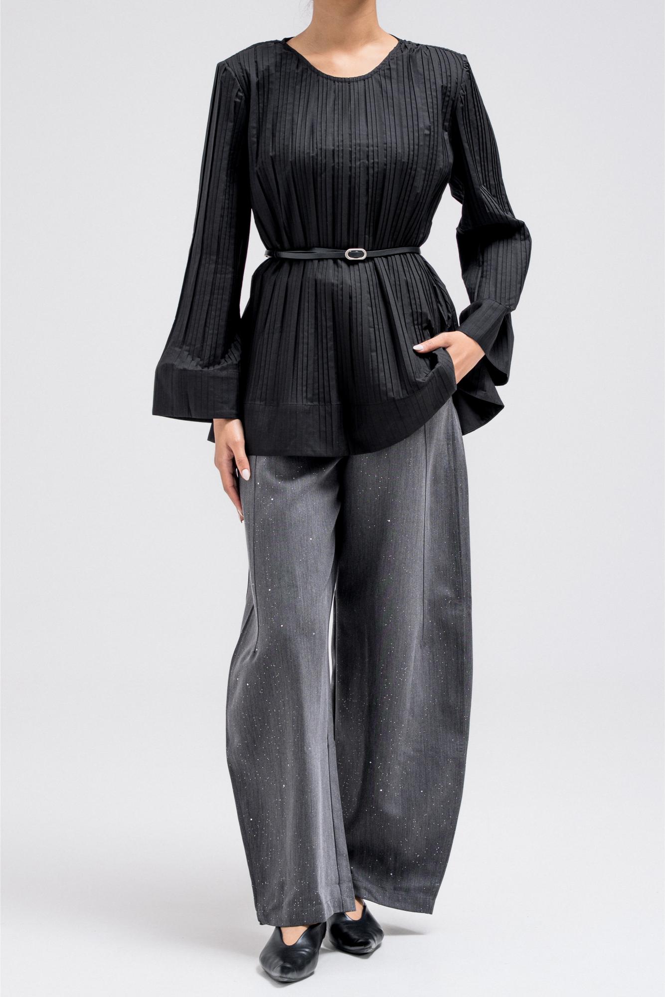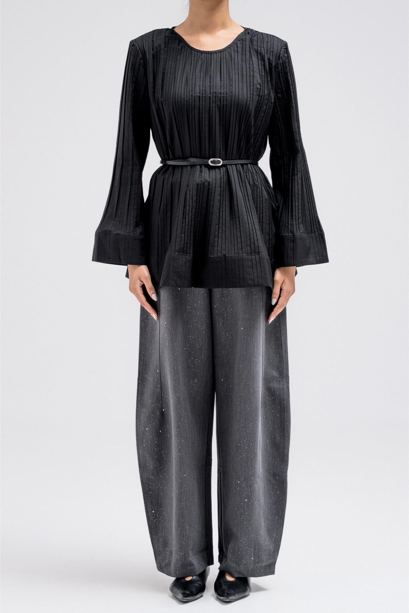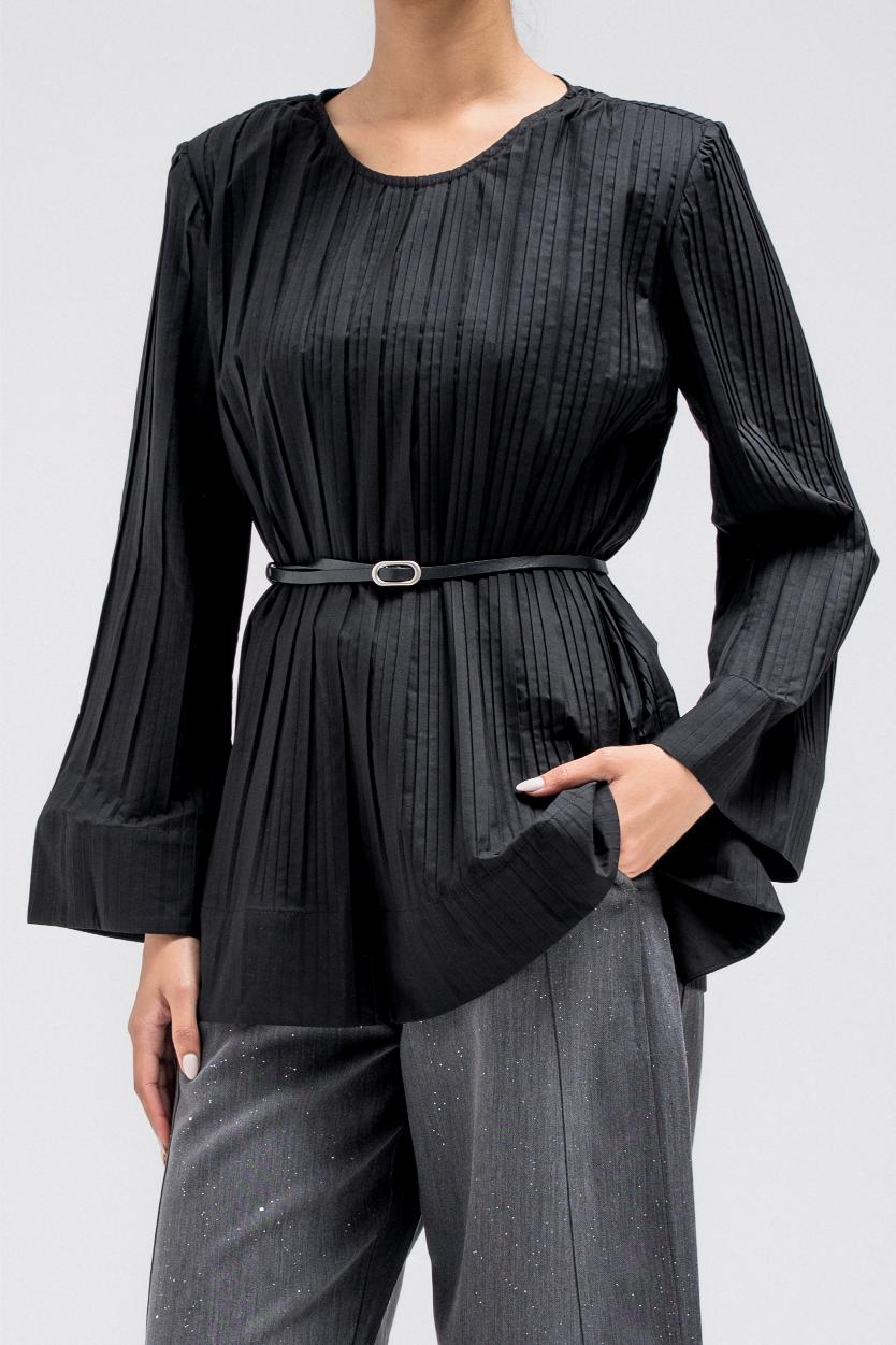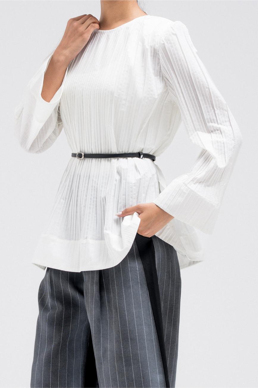 FLOWY PLEATED TOP WITH LEATHER BELT