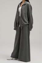 Crafted from a soft, comfortable material, this jacket combines sporty style with everyday ease. It features a front zipper closure, zipped side pockets, and contrasting white line detailing along the sleeves for a sleek finish. Designed with elastic cuffs and hem for a secure fit, it pairs perfectly with its matching pants for a complete coordinated look.