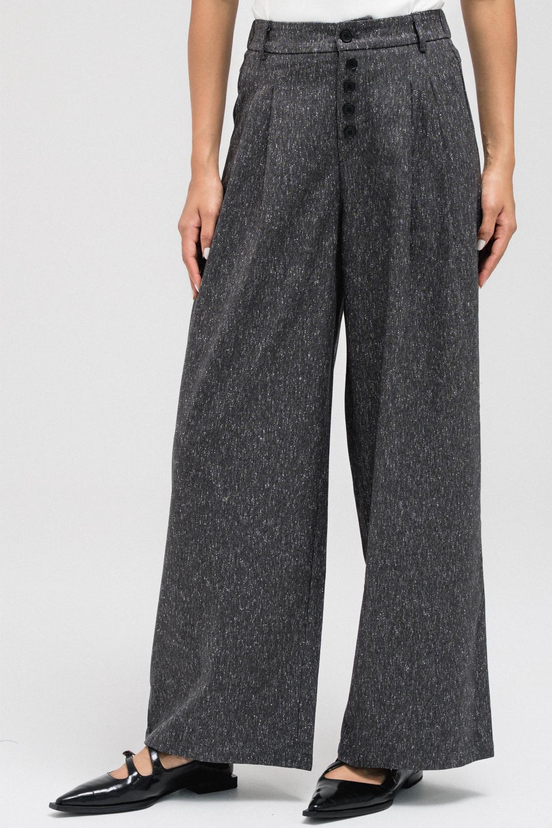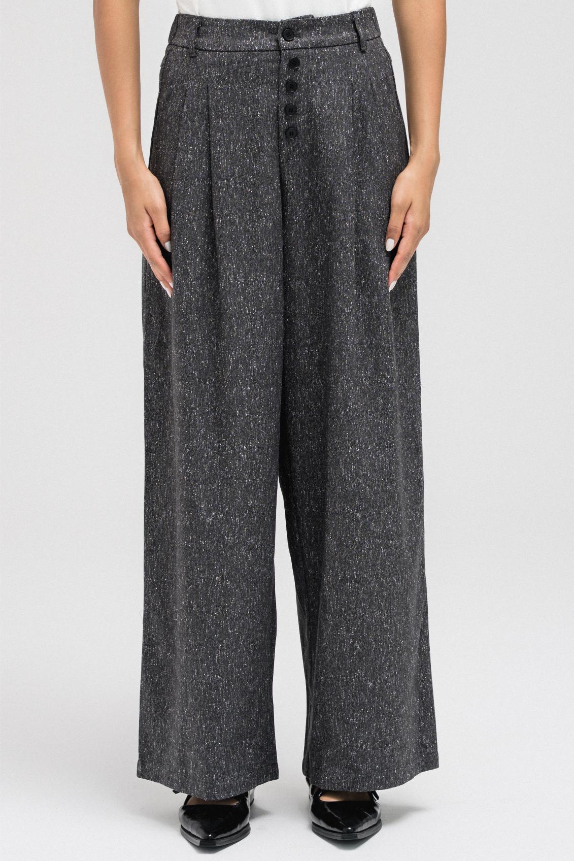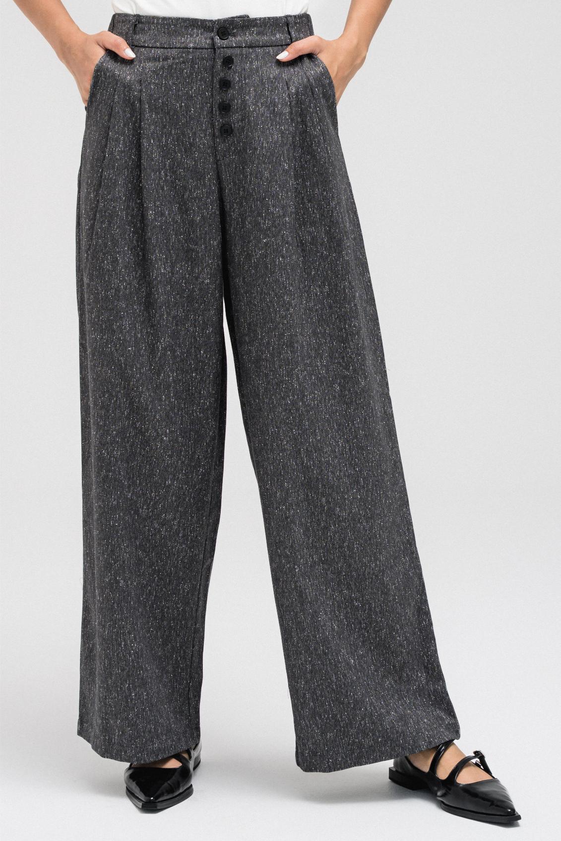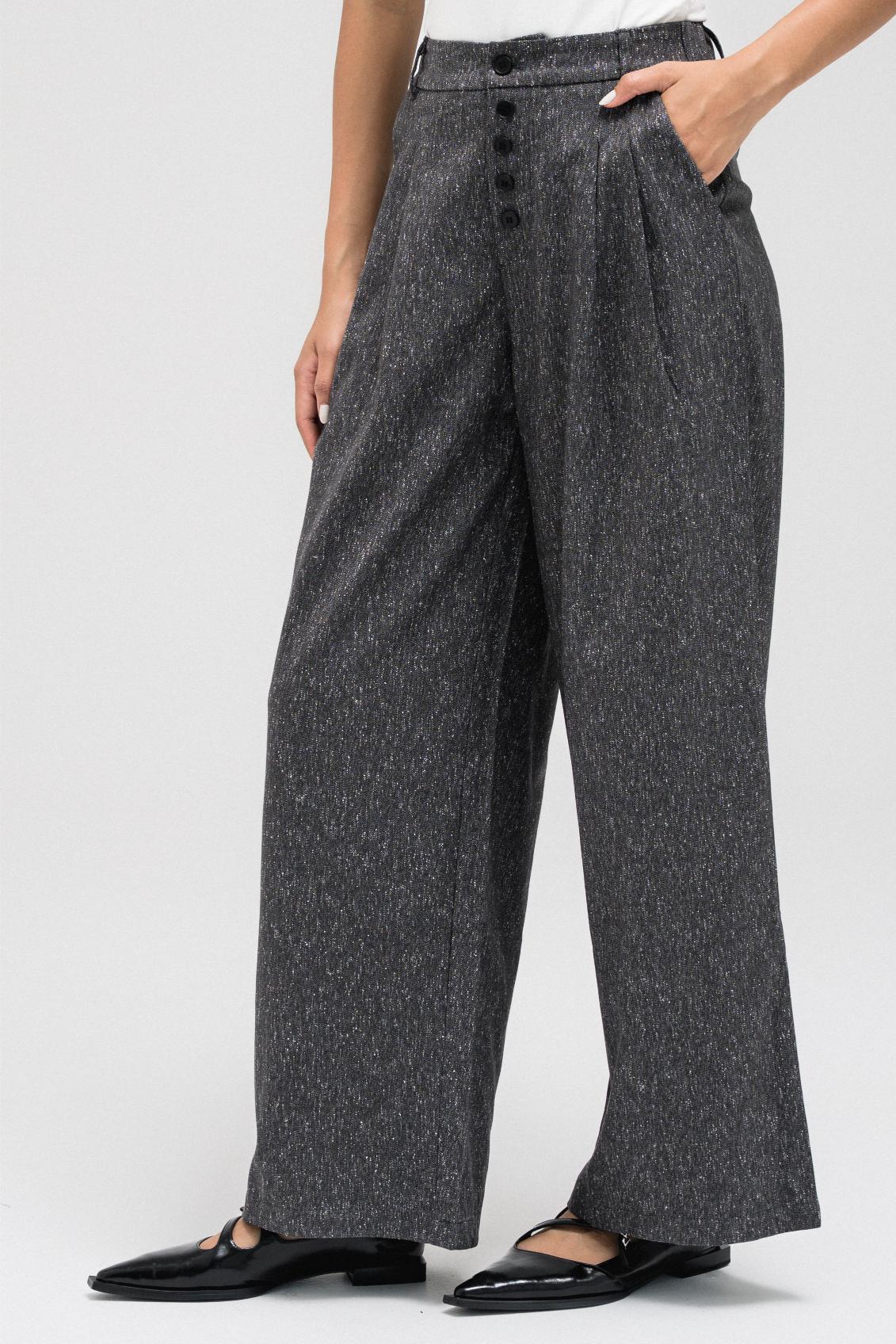 TEXTURED STRAIGHT PANTS WITH BUTTON DETAIL