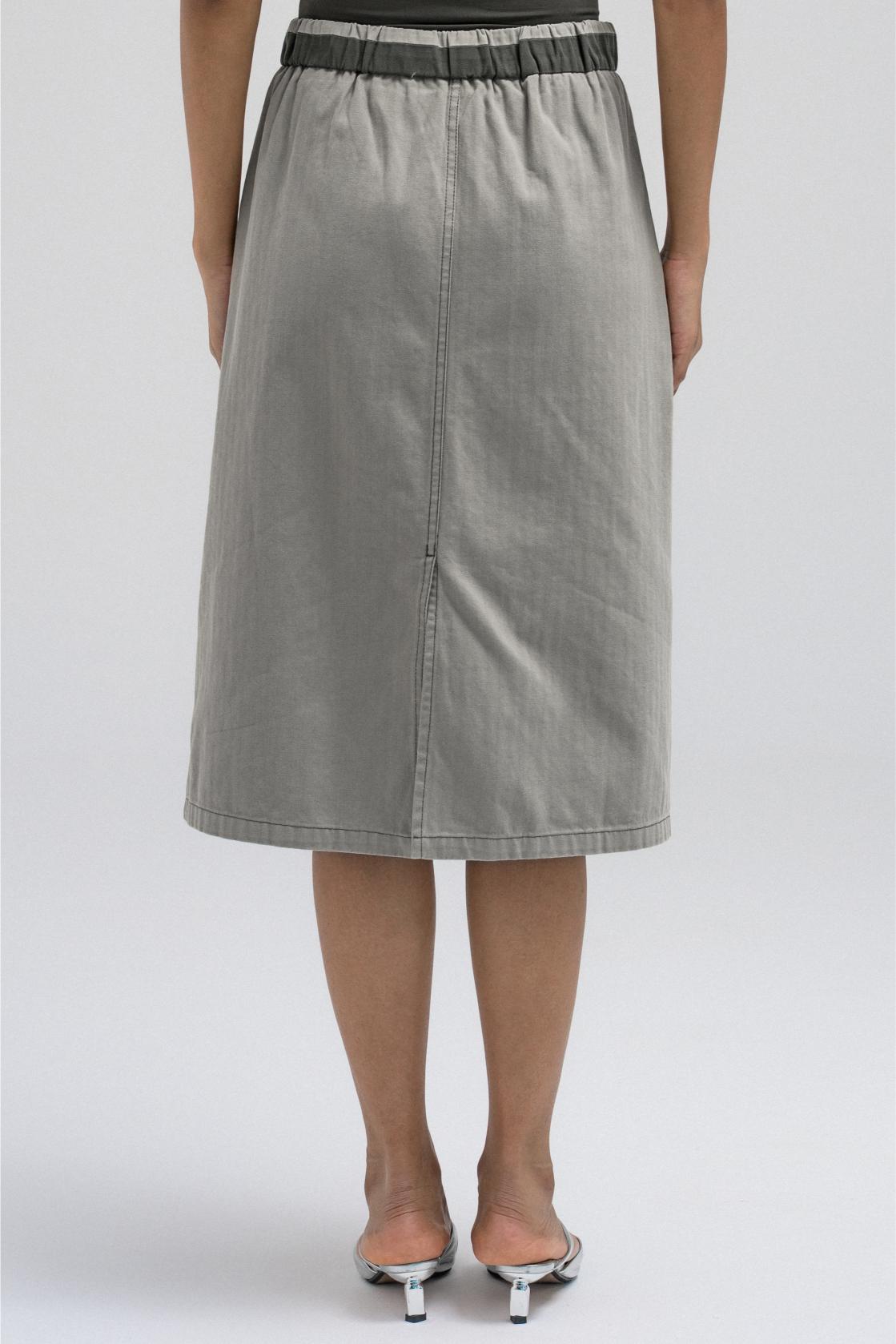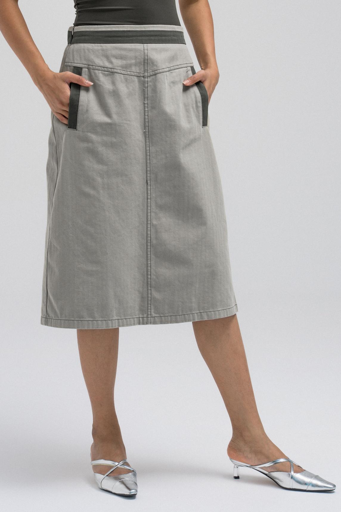 Denim skirt designed with side pockets and a comfortable mid-length with a back slit for easy movements. Finished with a side zip closure for a clean look. Perfect to style with the matching denim jacket for a coordinated outfit.