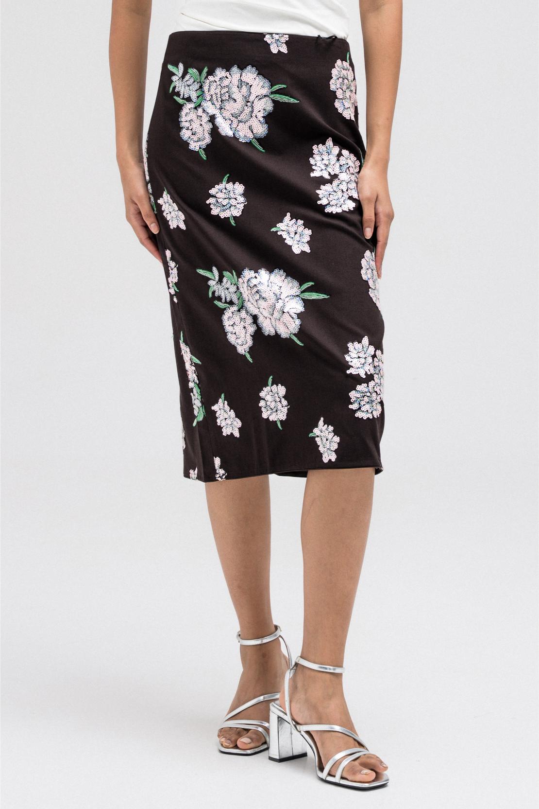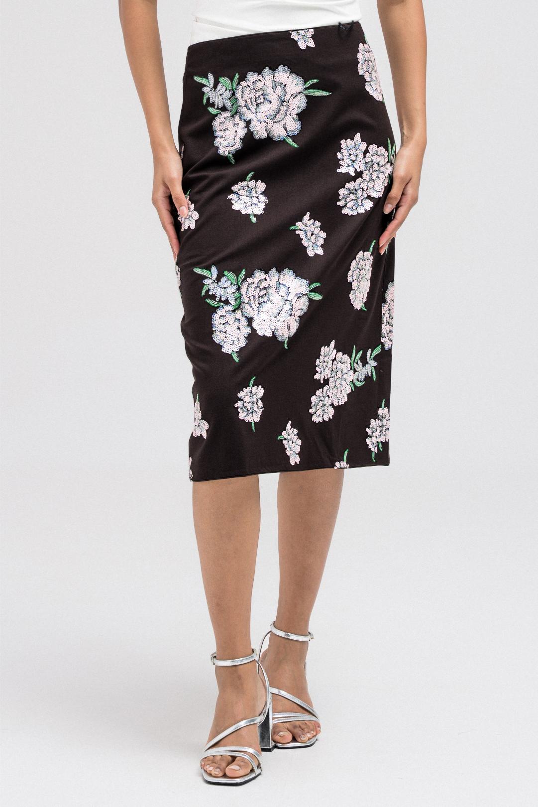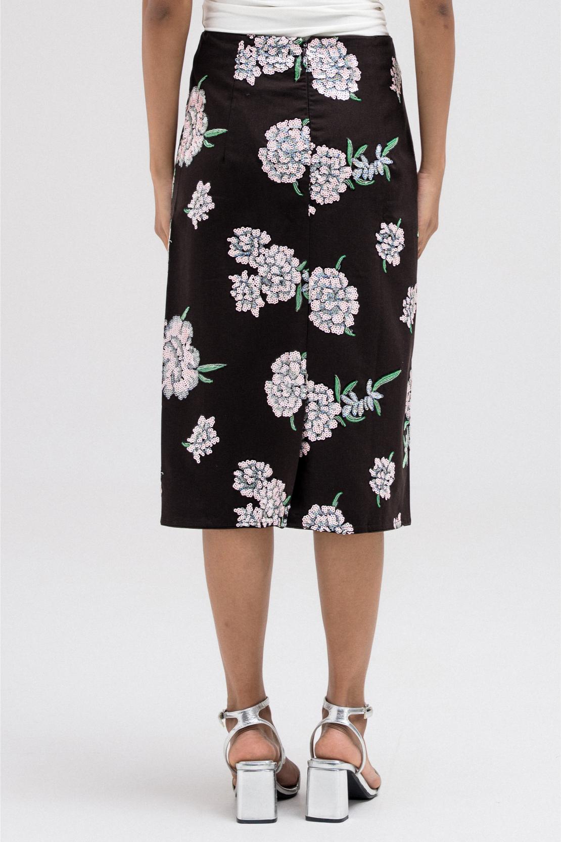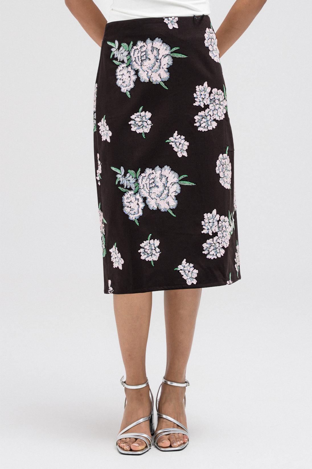 A statement skirt crafted with delicate floral sequin embellishments all over. Designed with a subtle side slit for ease of movement, this skirt balances sparkle with wearability, making it perfect for styling up or down.