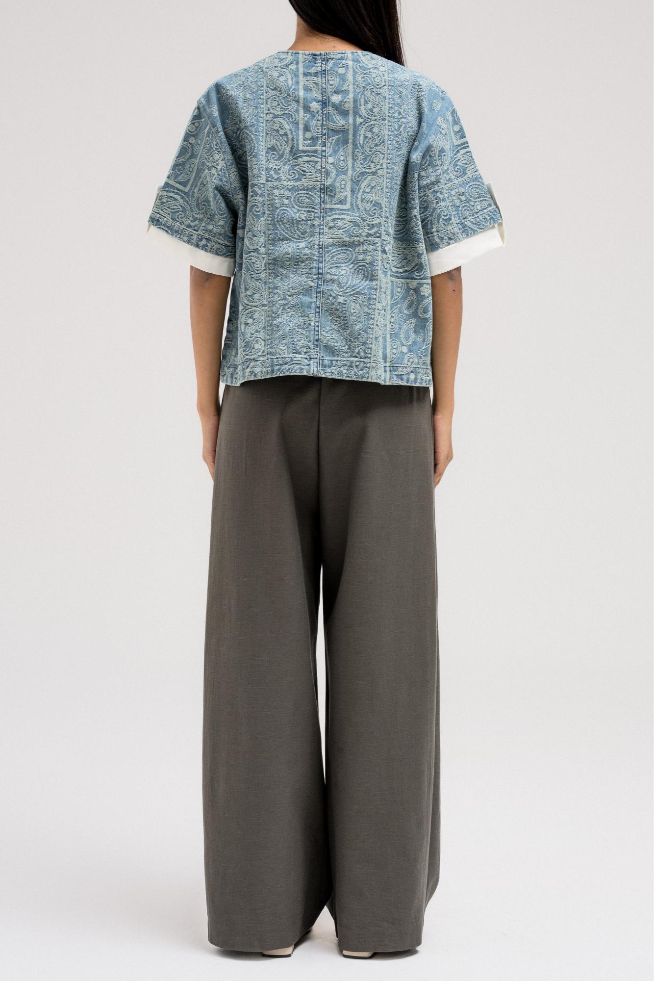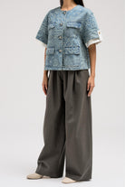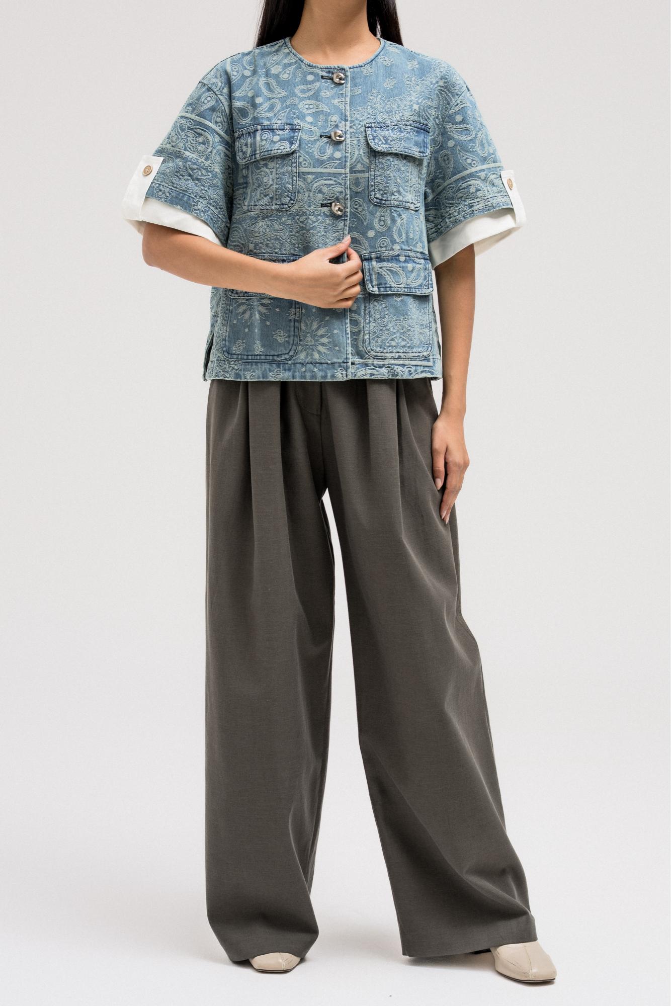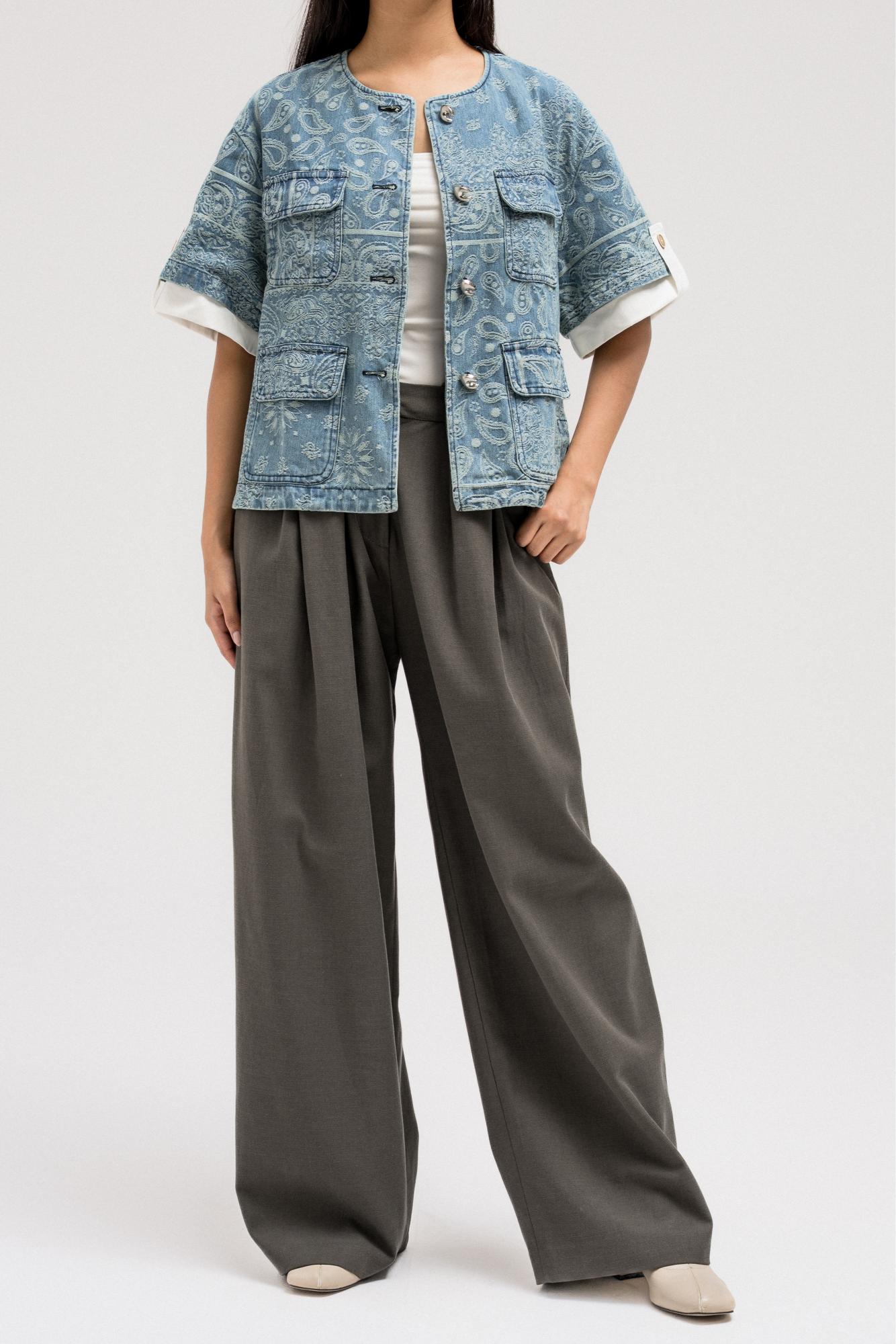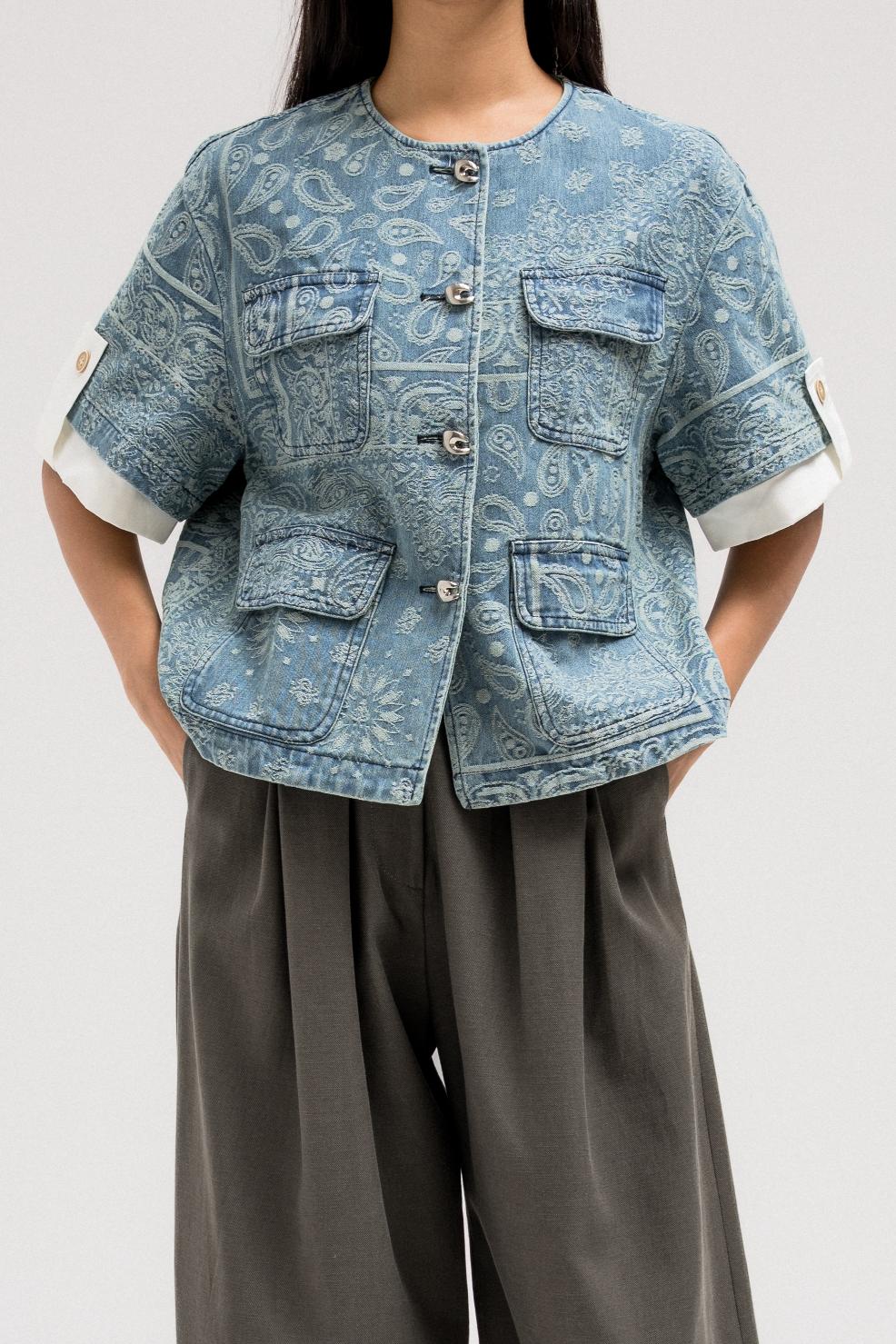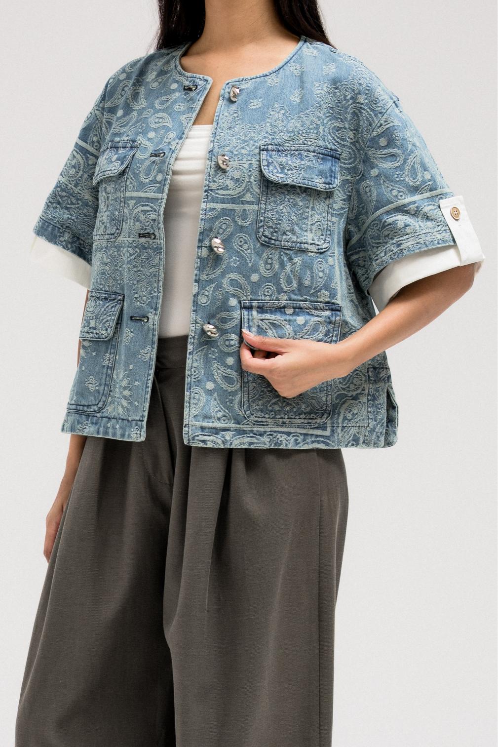 DENIM JACKET WITH SHORT SLEEVES & PATTERN DETAIL